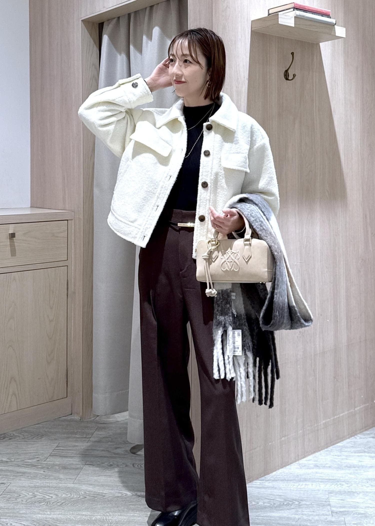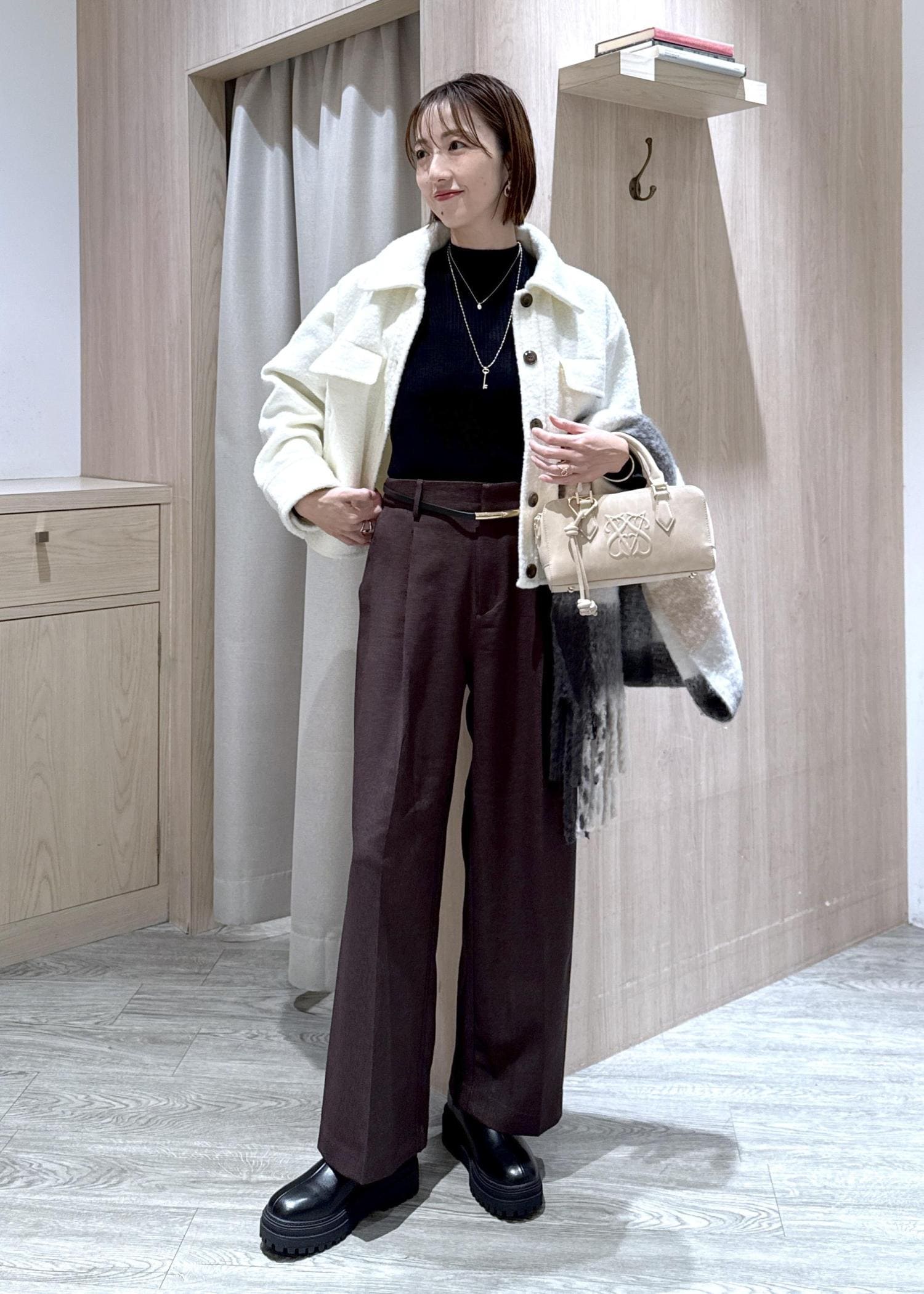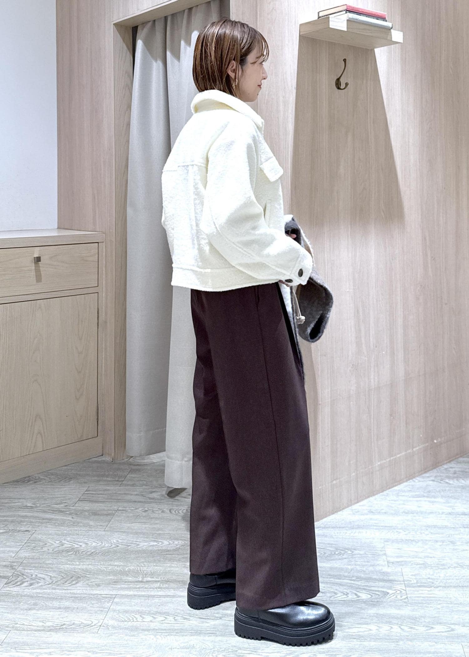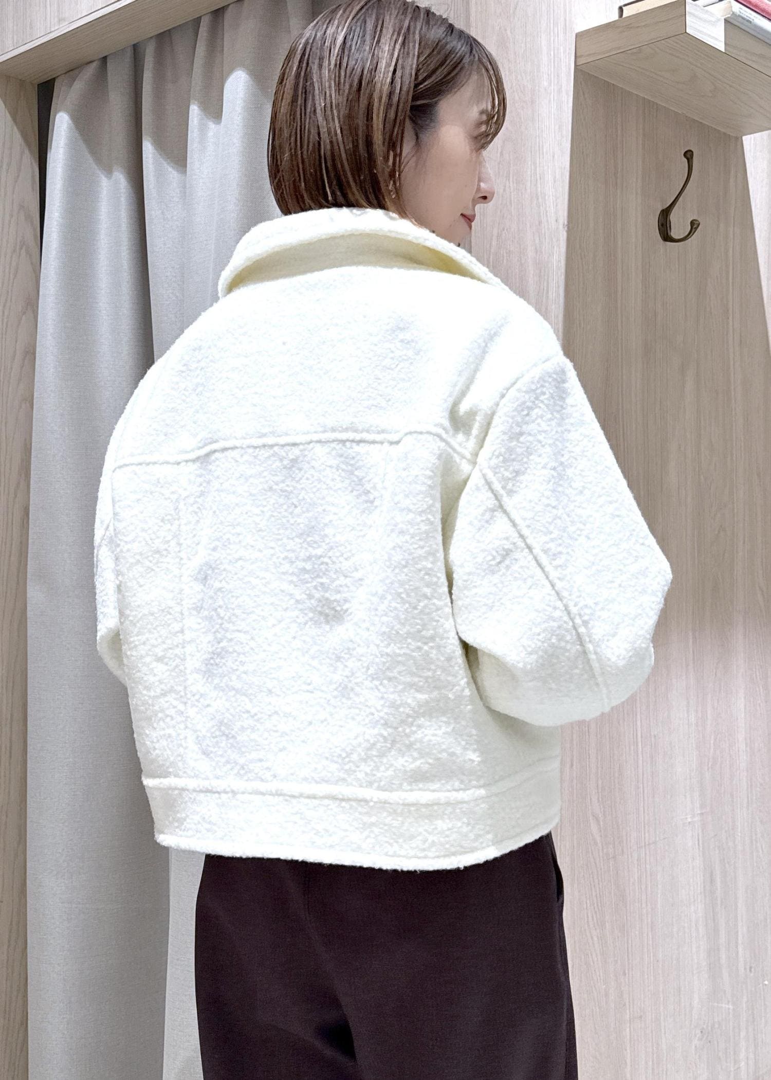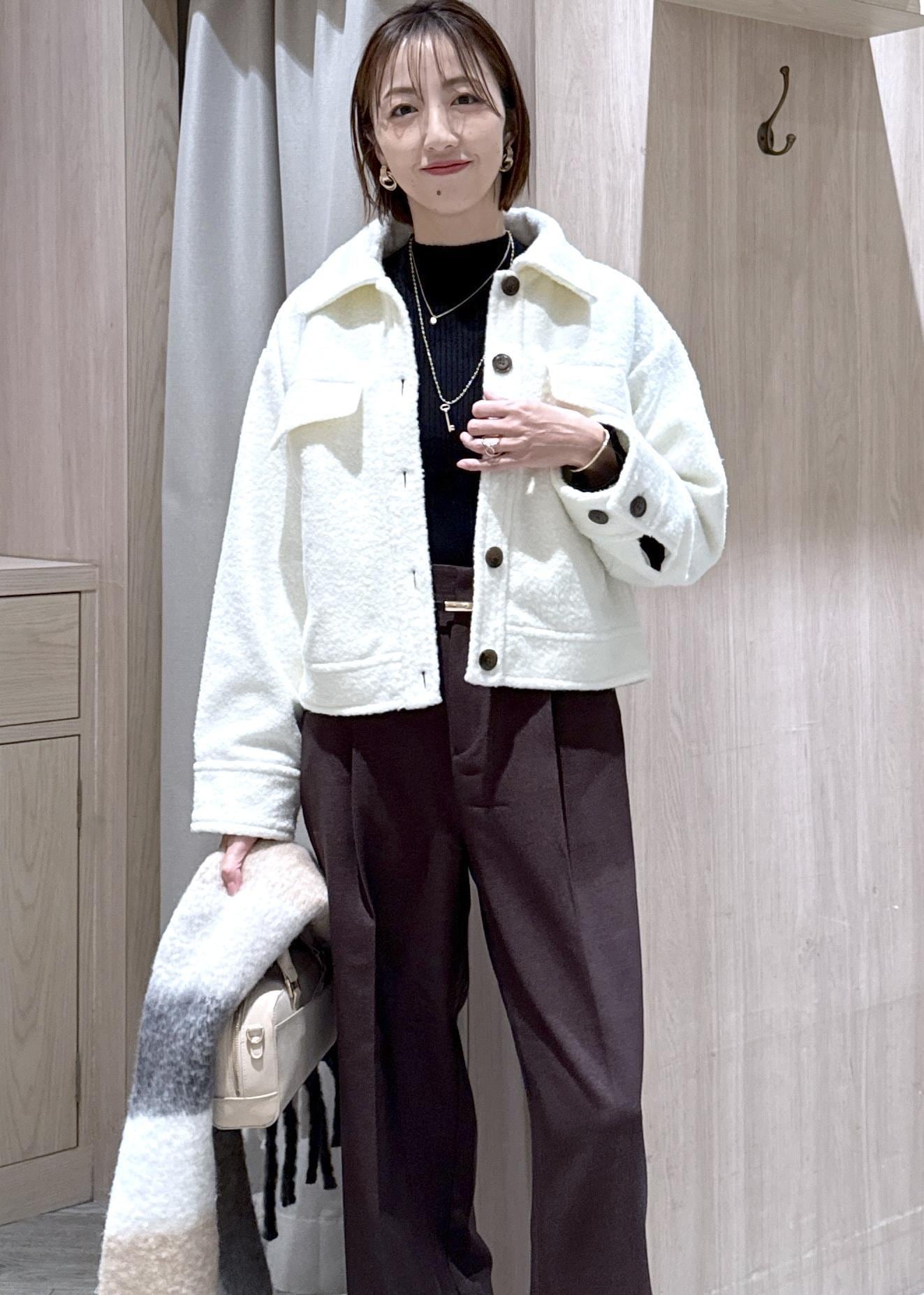 ふわふわとした素材感ですが、オーバーすぎないサイズなのでキレイめからカジュアルまで幅広くスタイリングできます! -