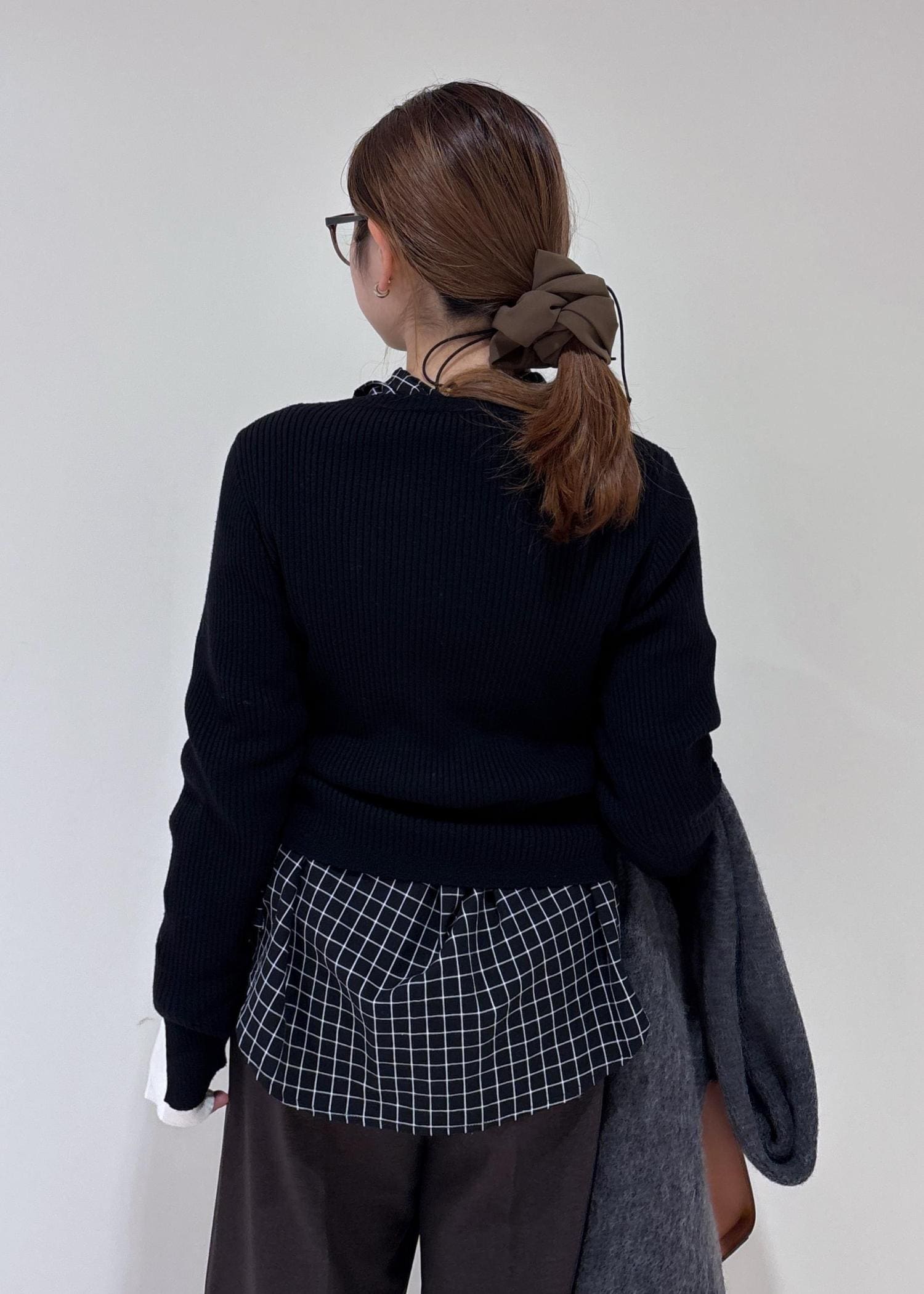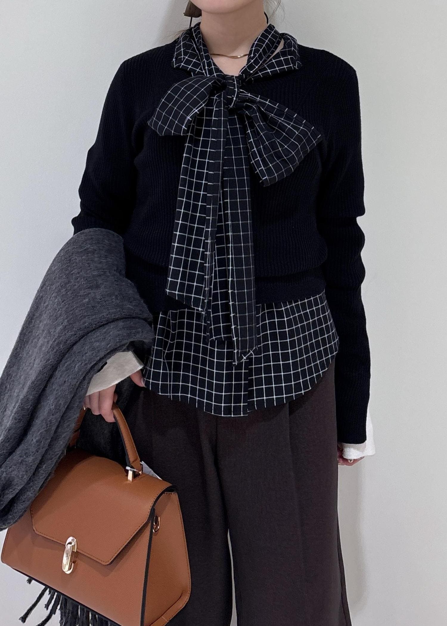 VISチェック&デニムアソートボウタイリボン付きスタンドカラーシャツブラック系 / F¥6,589レビュー身長150センチ、ヒップかからない丈感。