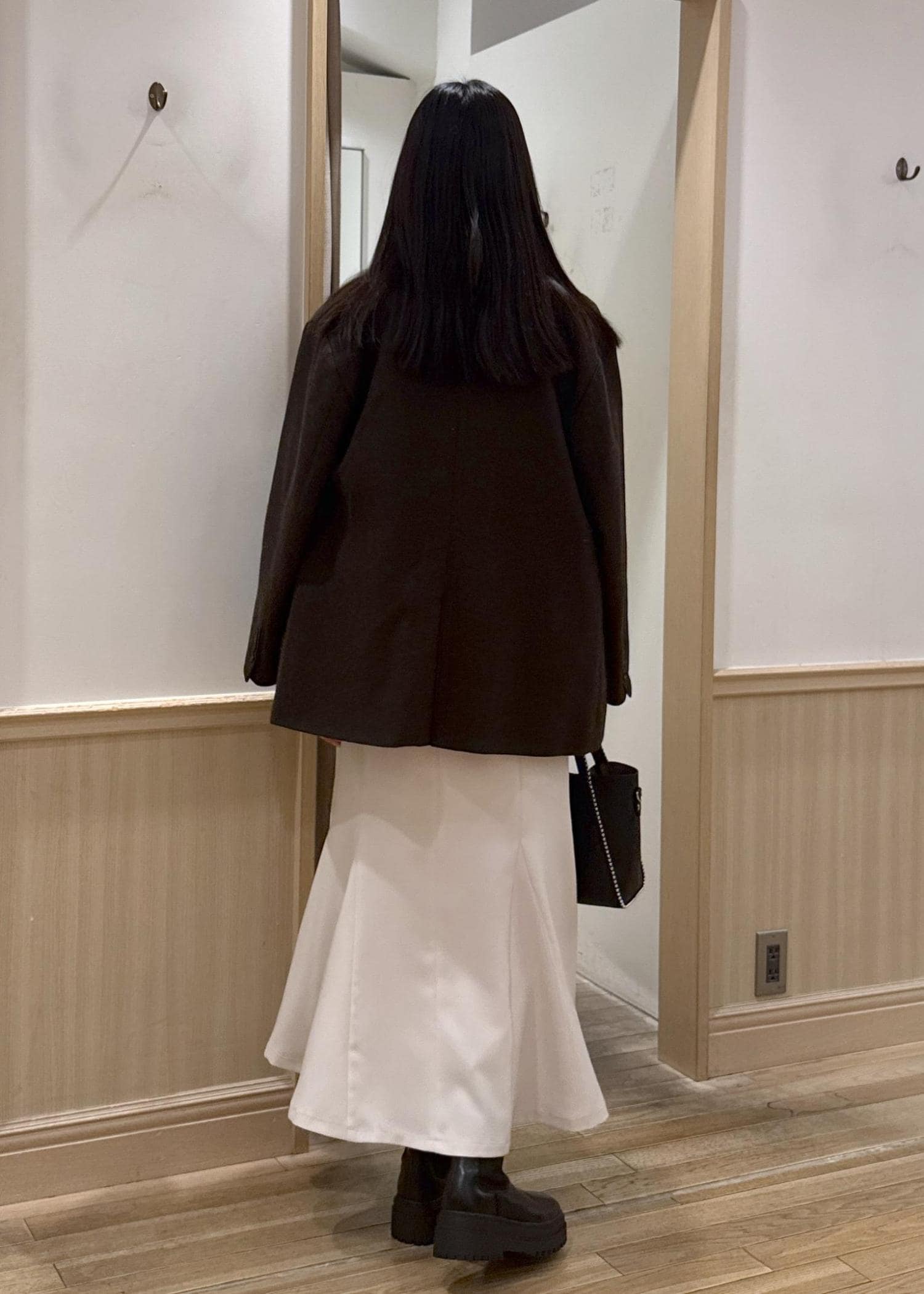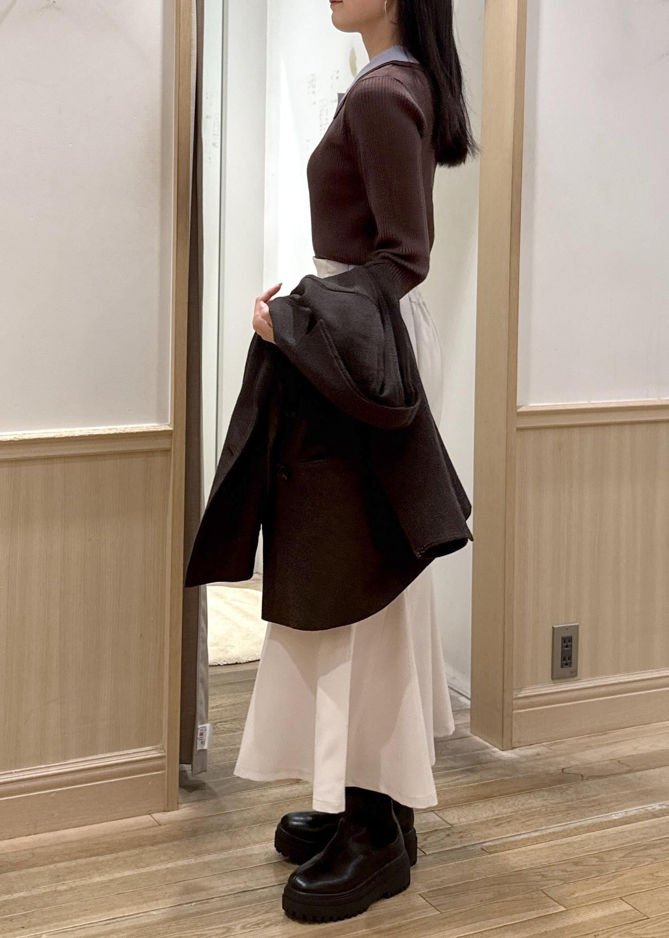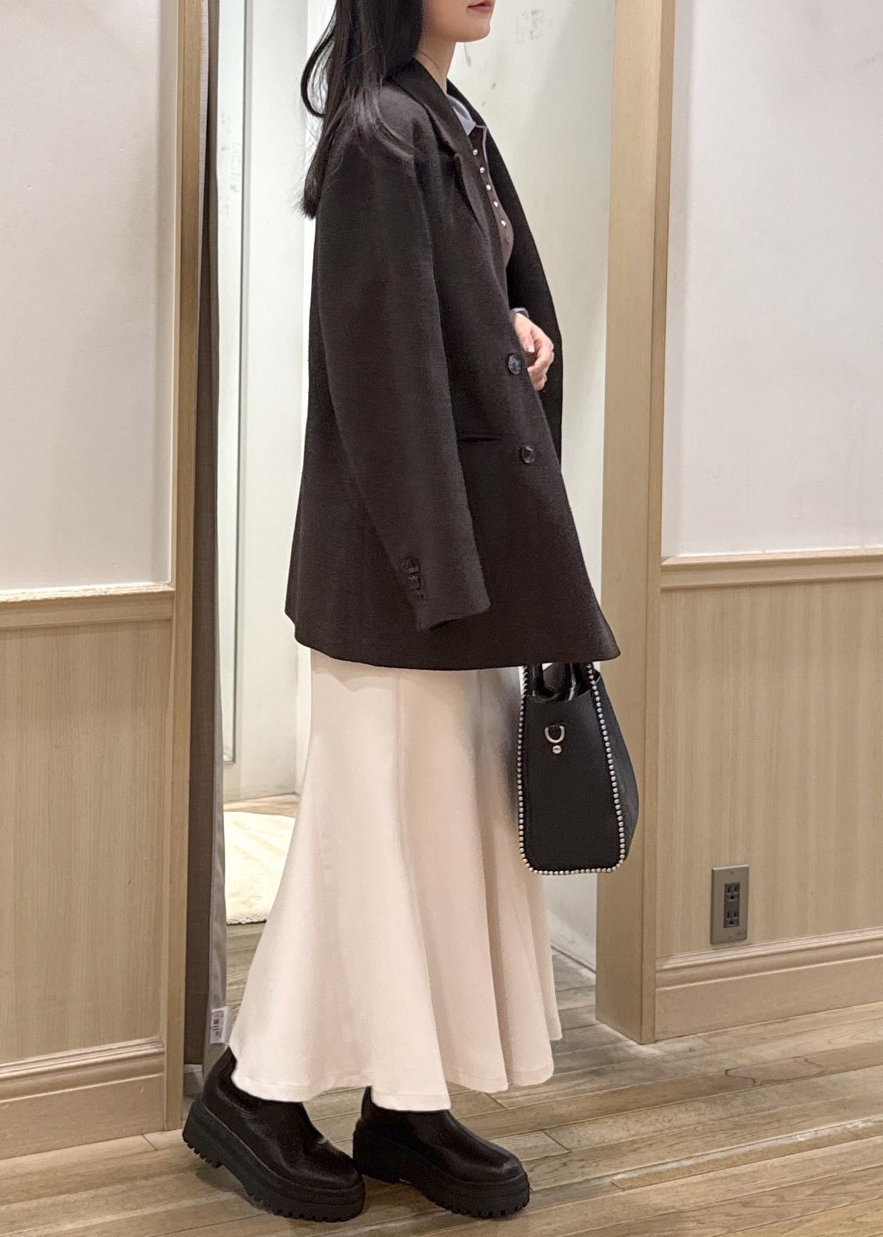 中に厚手のニットを合わせられるくらいのゆとりがあります!