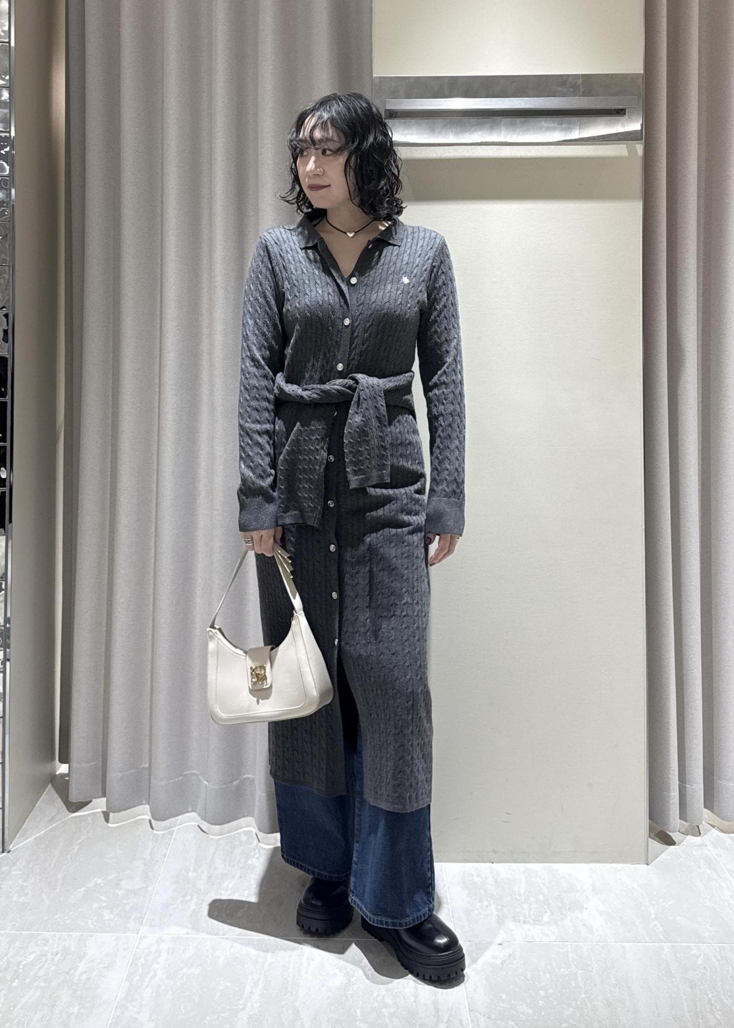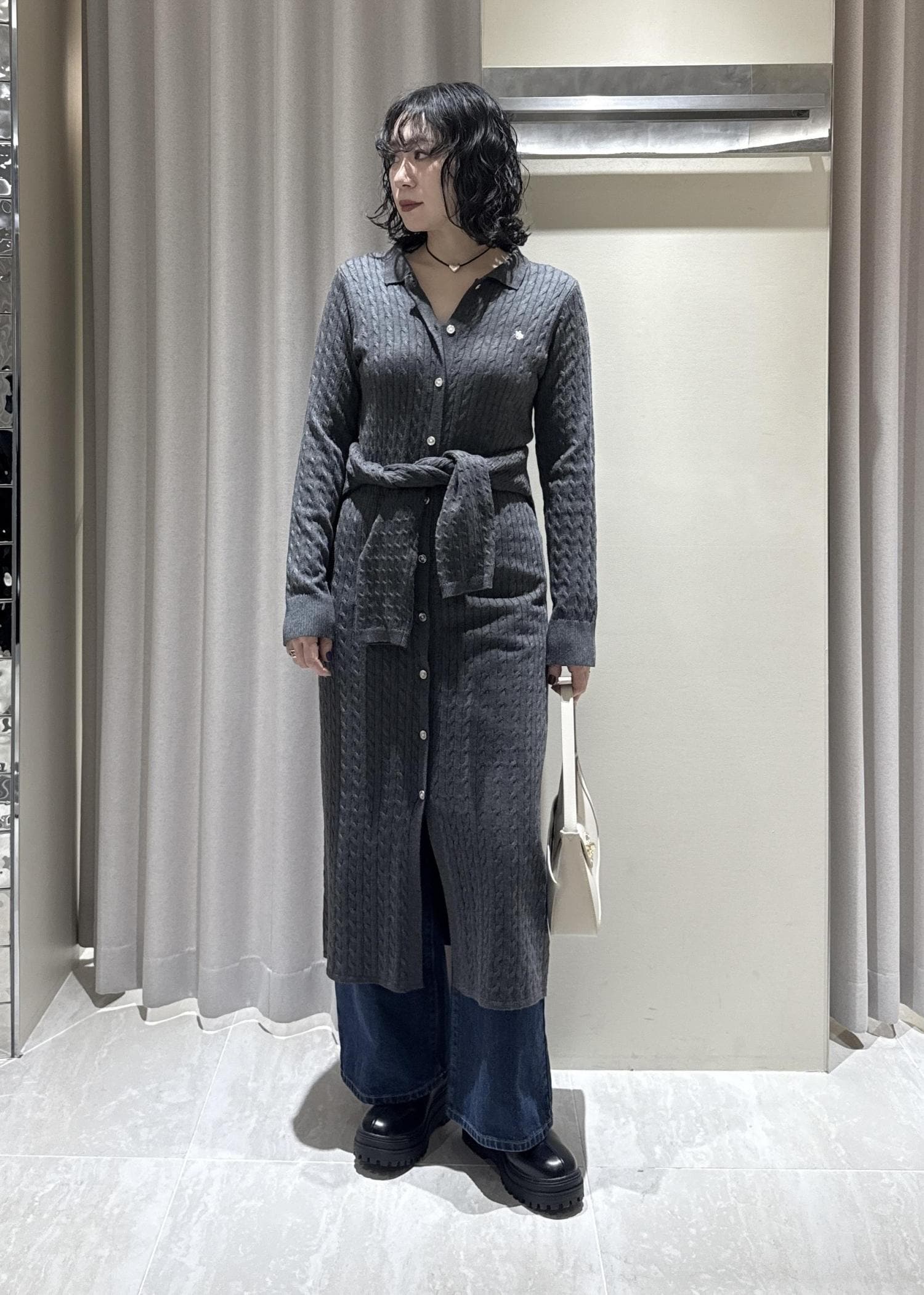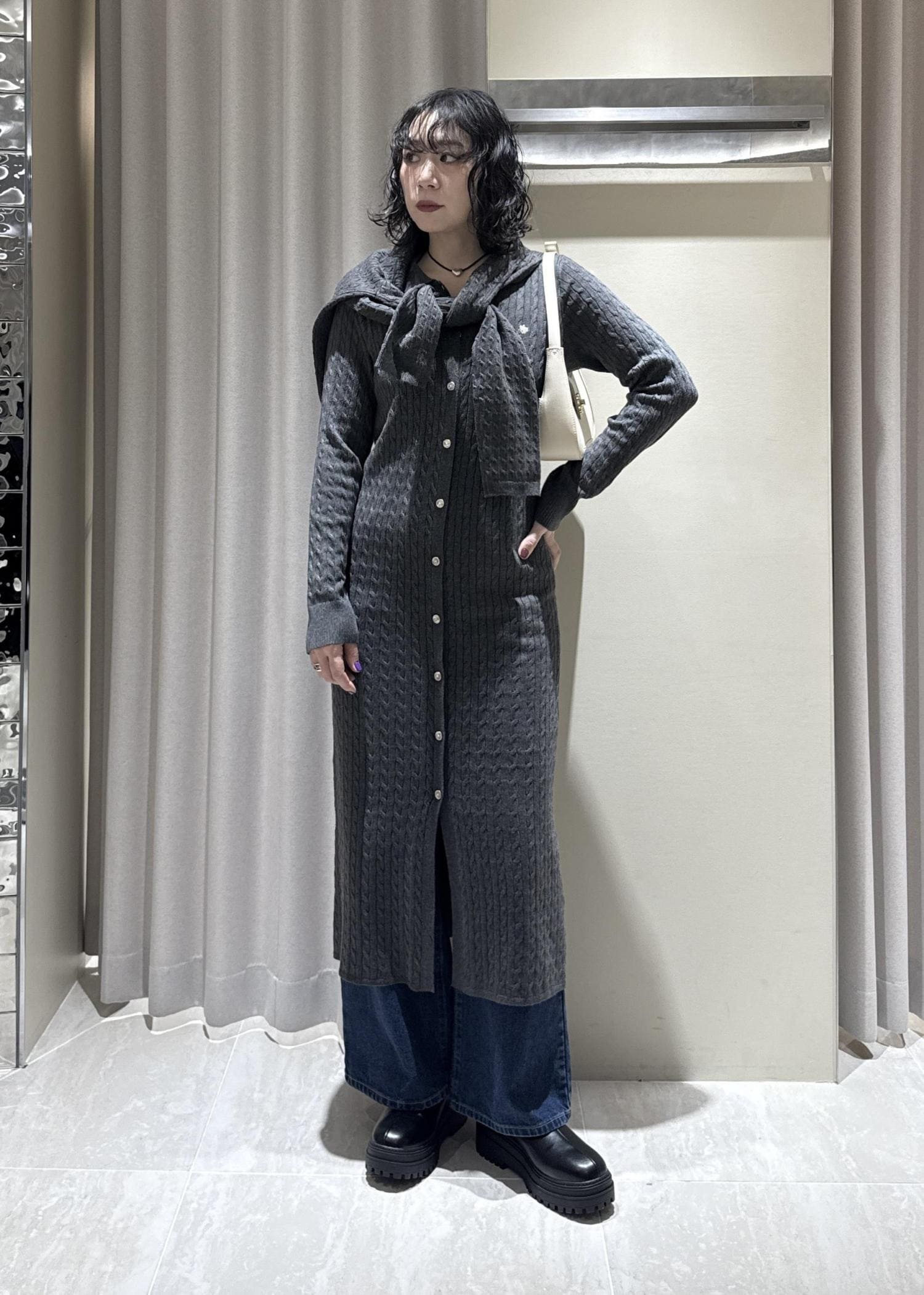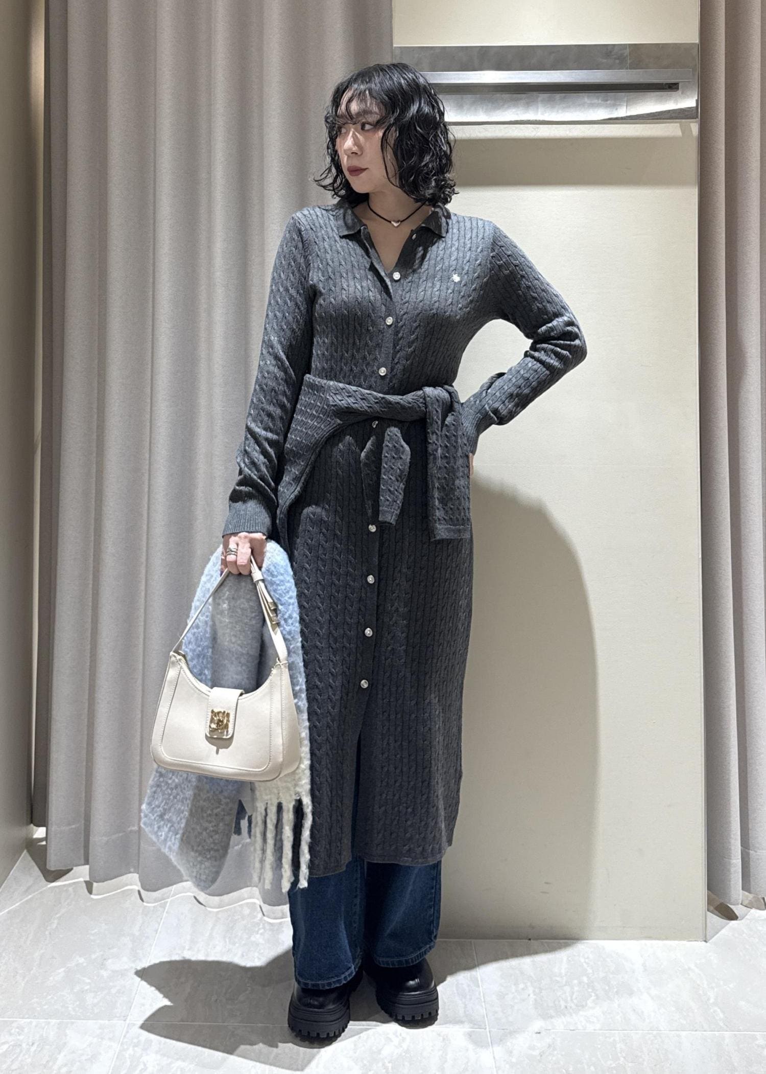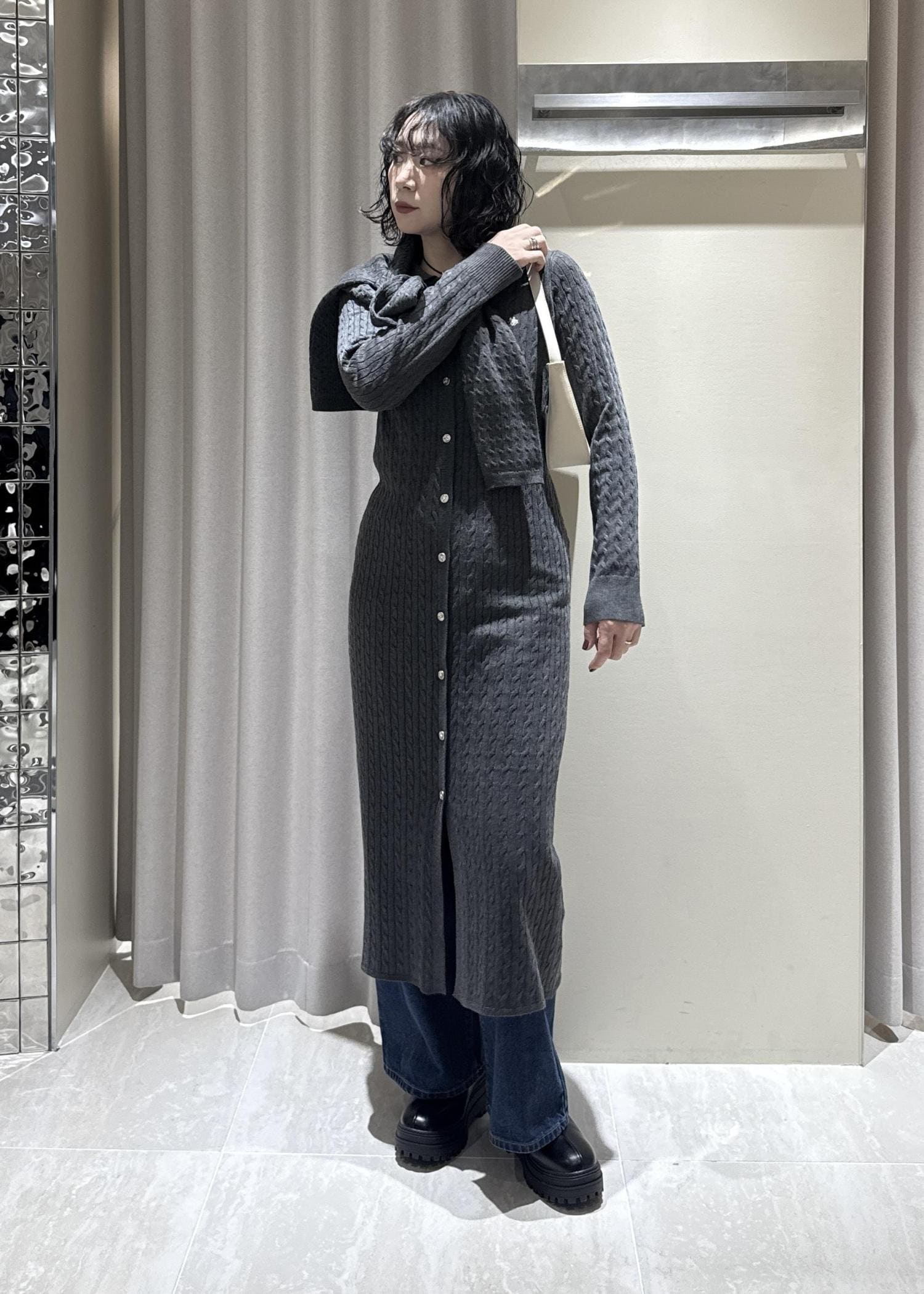 POLO別注ニットワンピースのレイヤードコーデです。