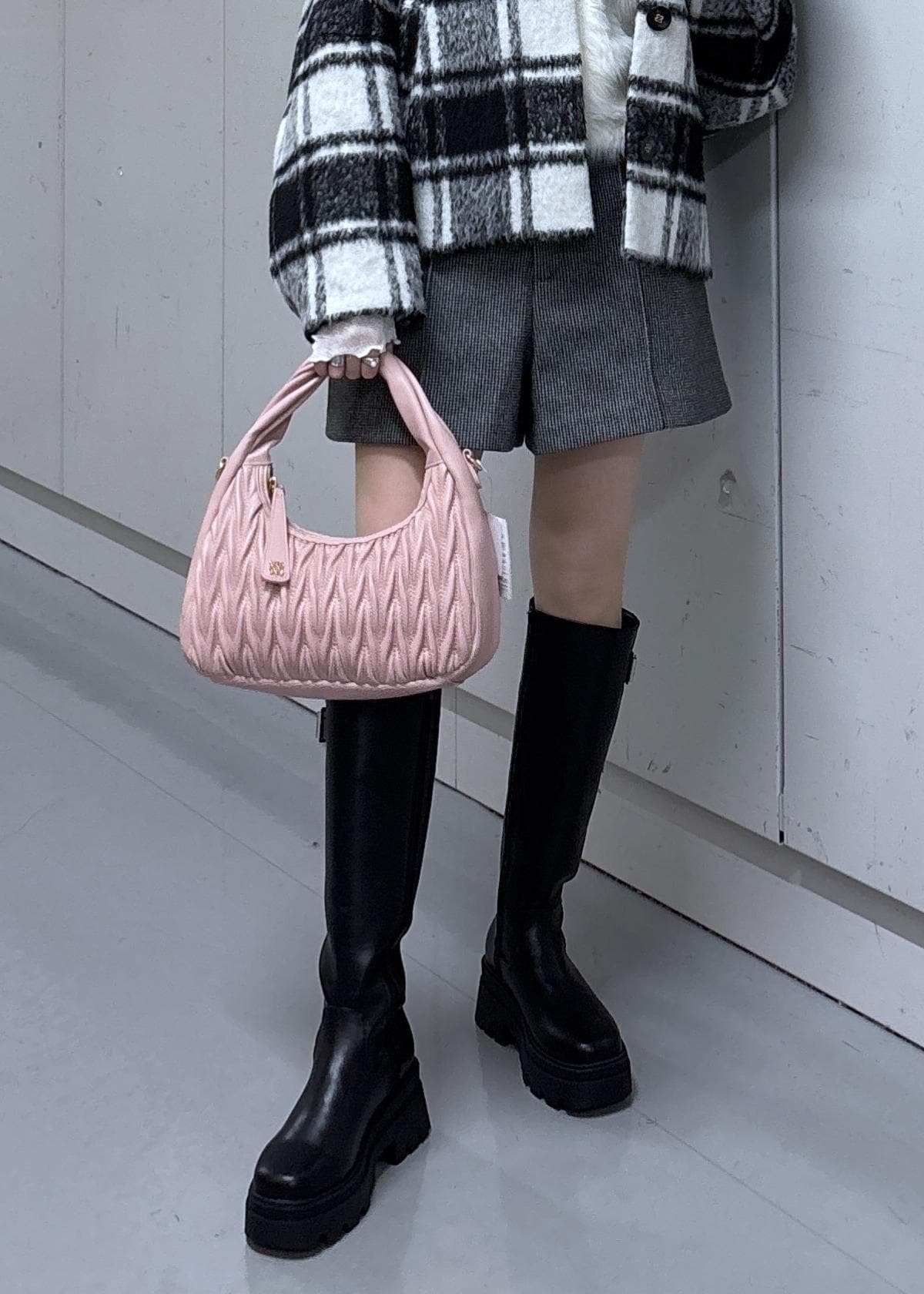 VIS【2WAY】ねじりハンドルキルティングバッグピンク系 / F¥7,909レビュー背面にポケットがあり。
