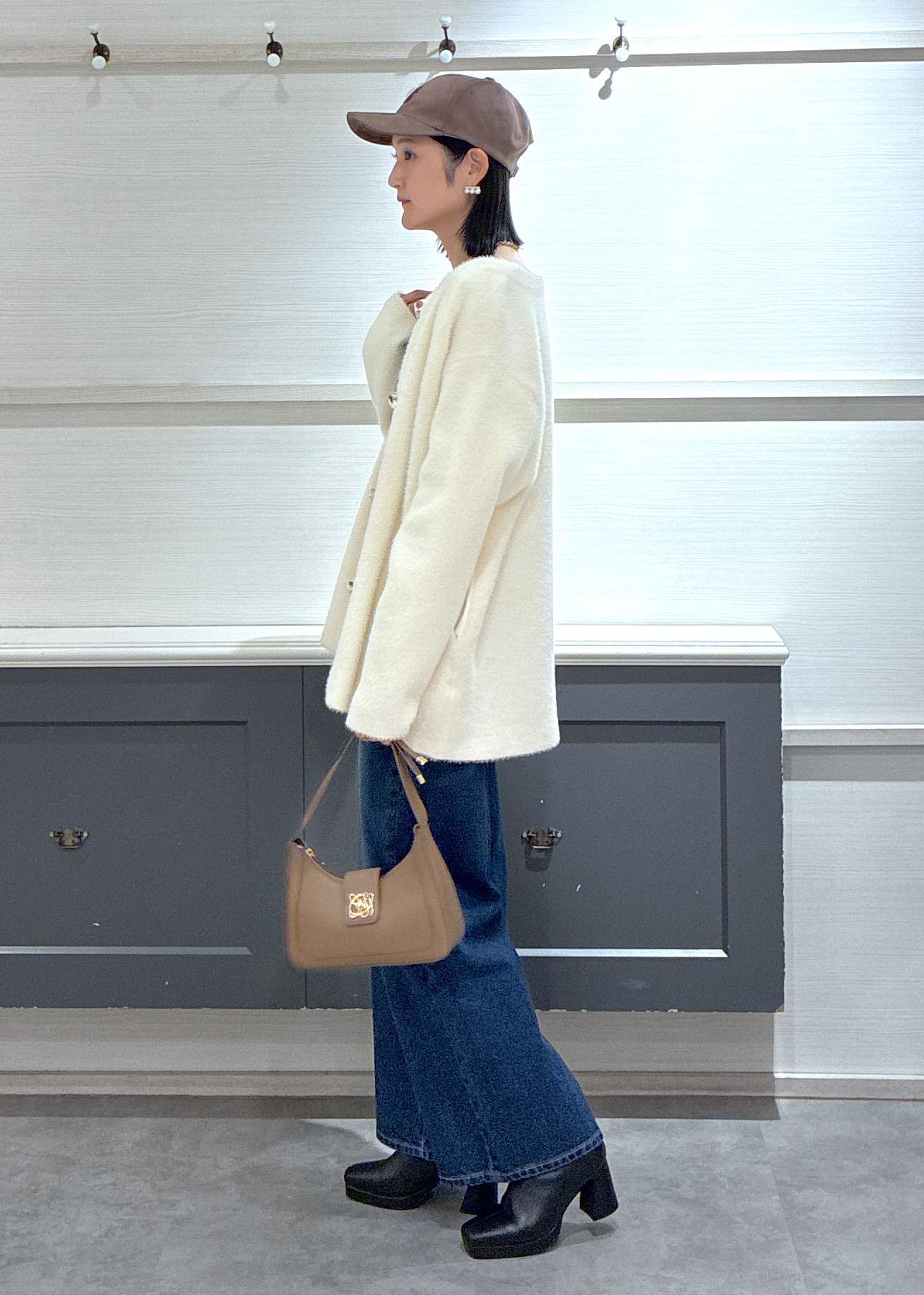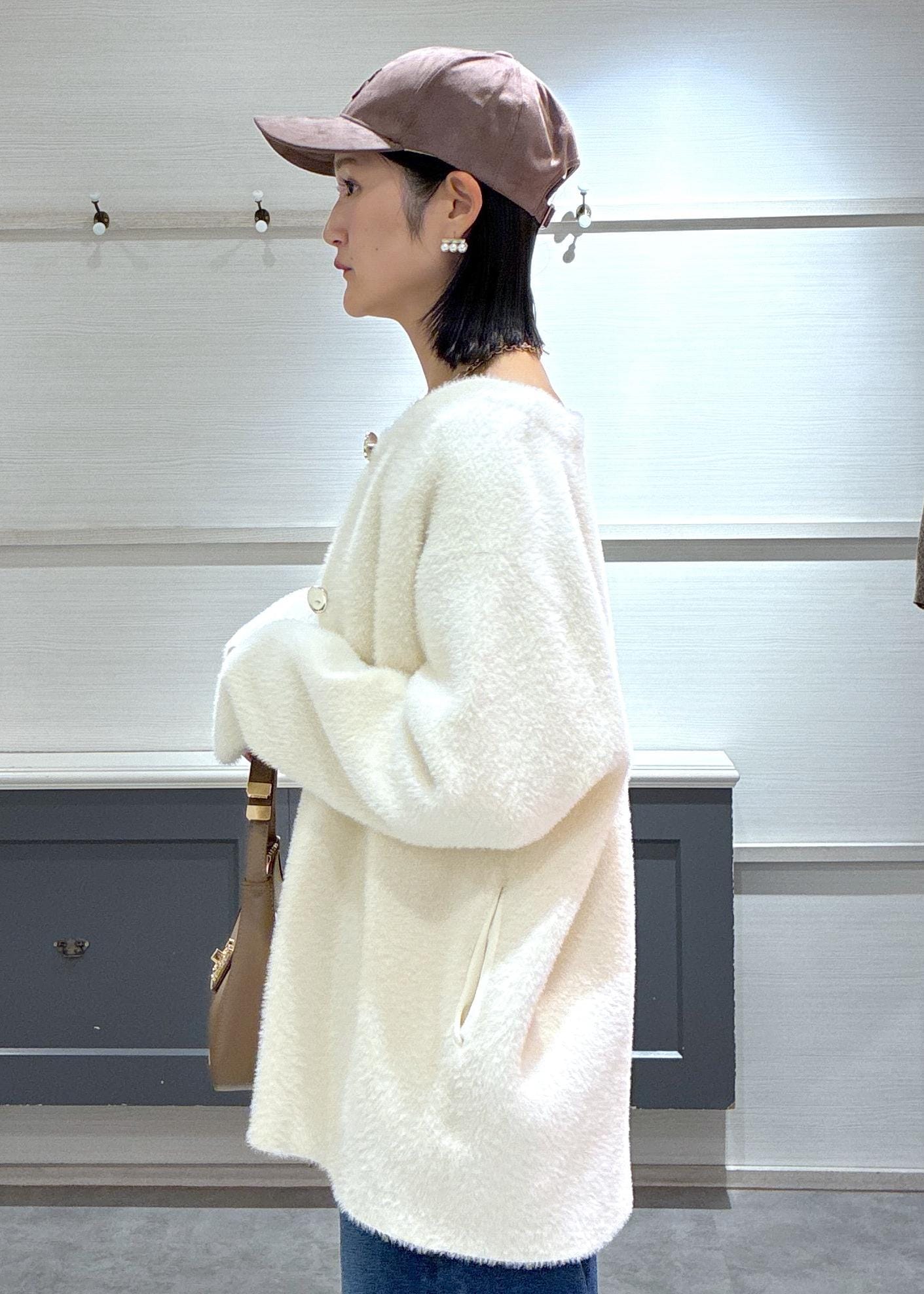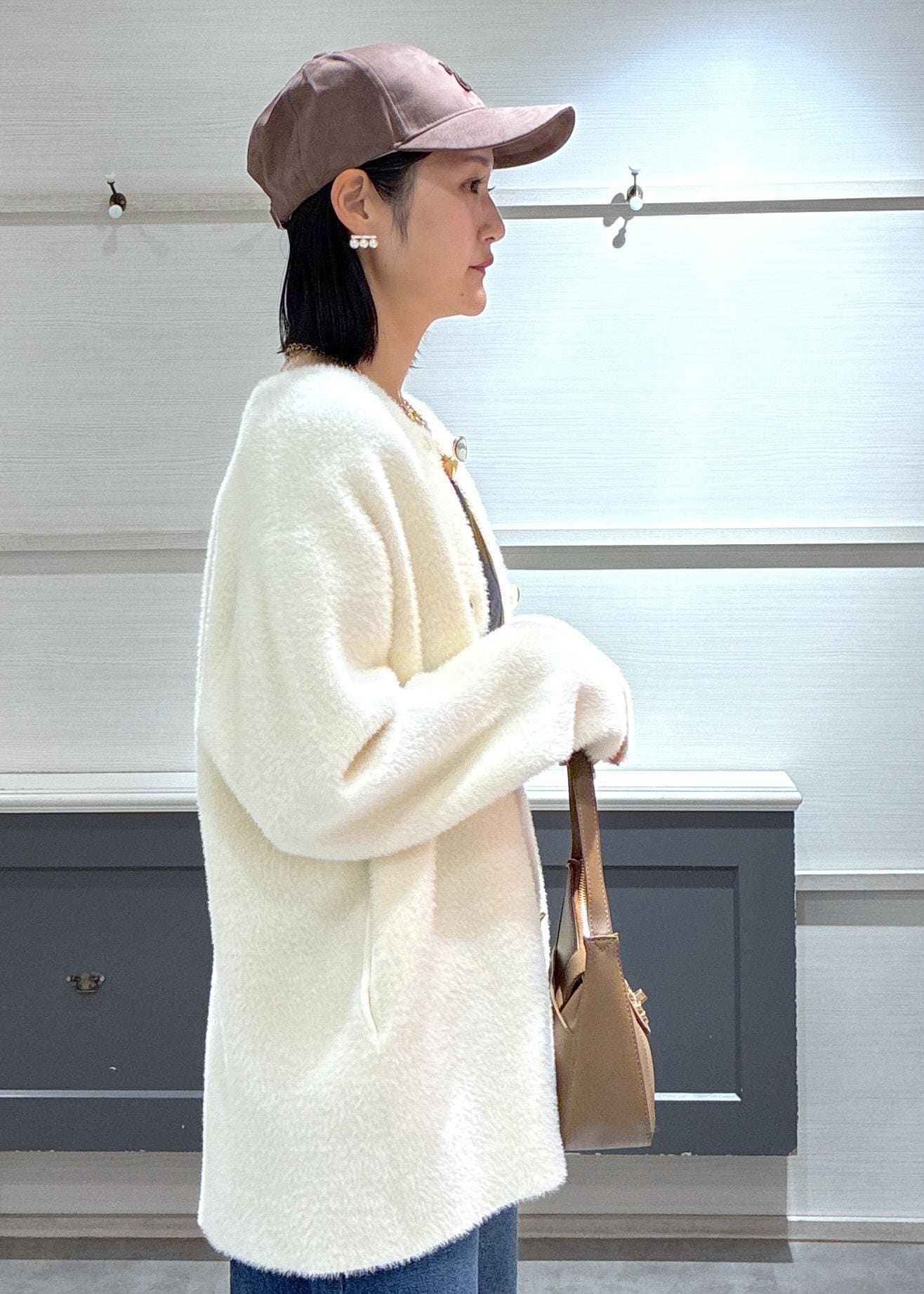 VIS接結メタルボタンミニフェザーニットコートオフホワイト / F¥9,999レビュー骨格ストレートで肩周りが気になる体型ですが、二の腕をカバーしてくれる形なので嬉しいです♡