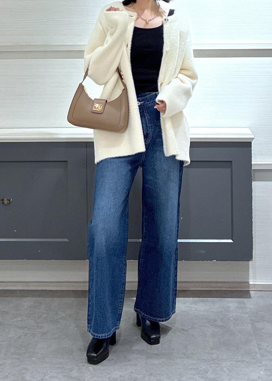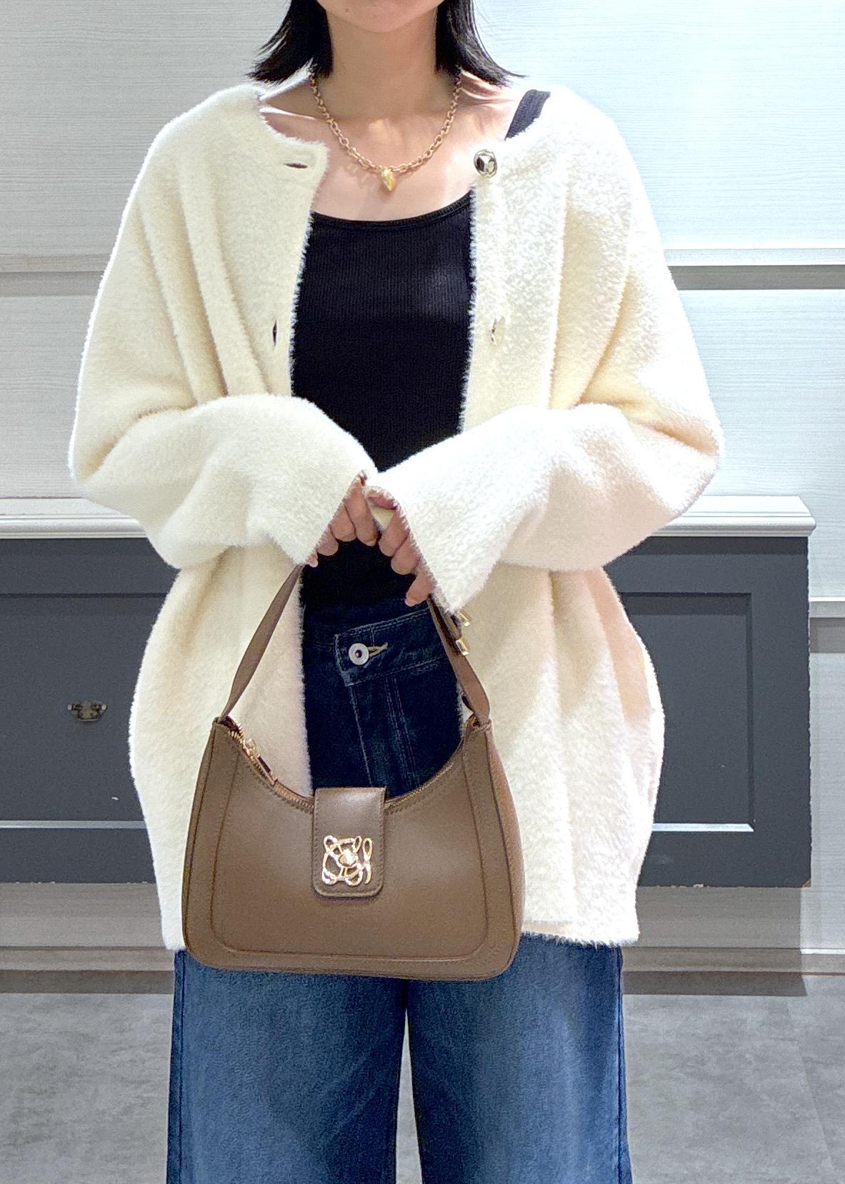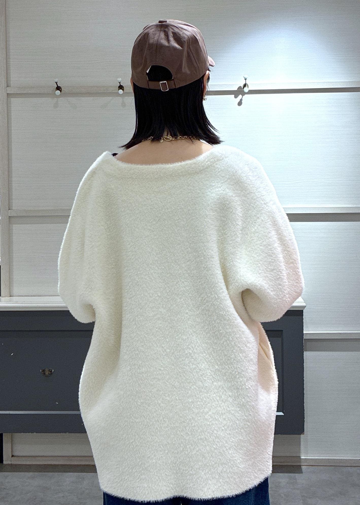 VIS接結メタルボタンミニフェザーニットコートオフホワイト / F¥9,999レビュー骨格ストレートで肩周りが気になる体型ですが、二の腕をカバーしてくれる形なので嬉しいです♡