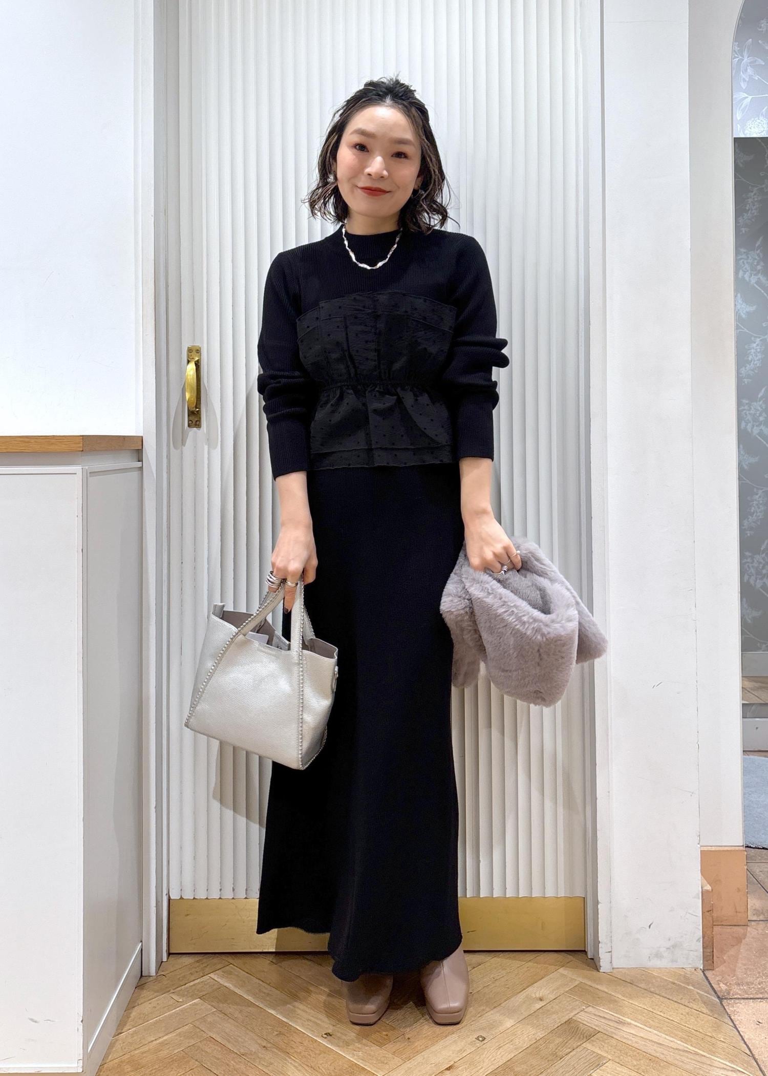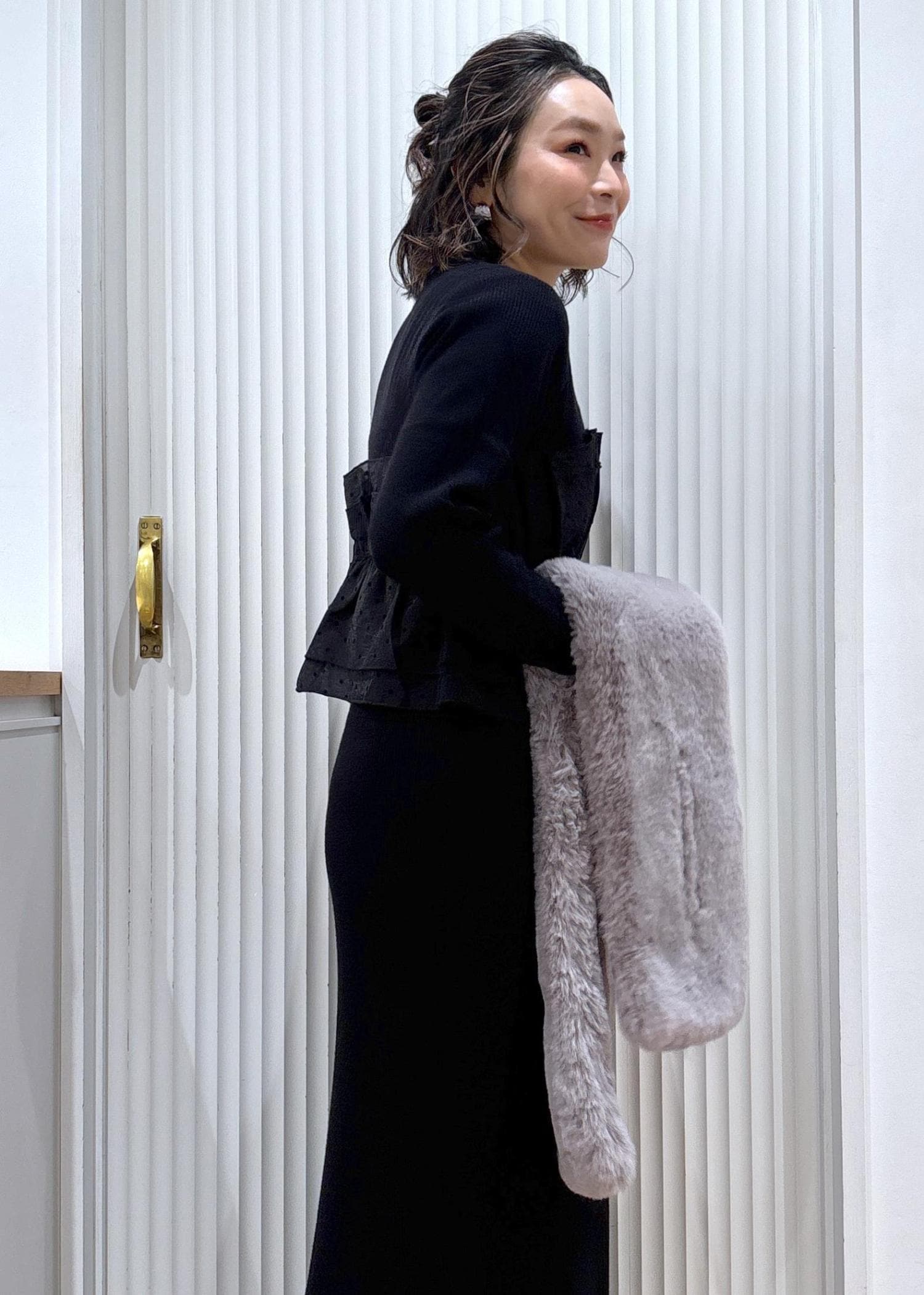 ボリュームのあるファーマフラーはマストで、ワンピース風のセットアップスタイルがお勧め♡