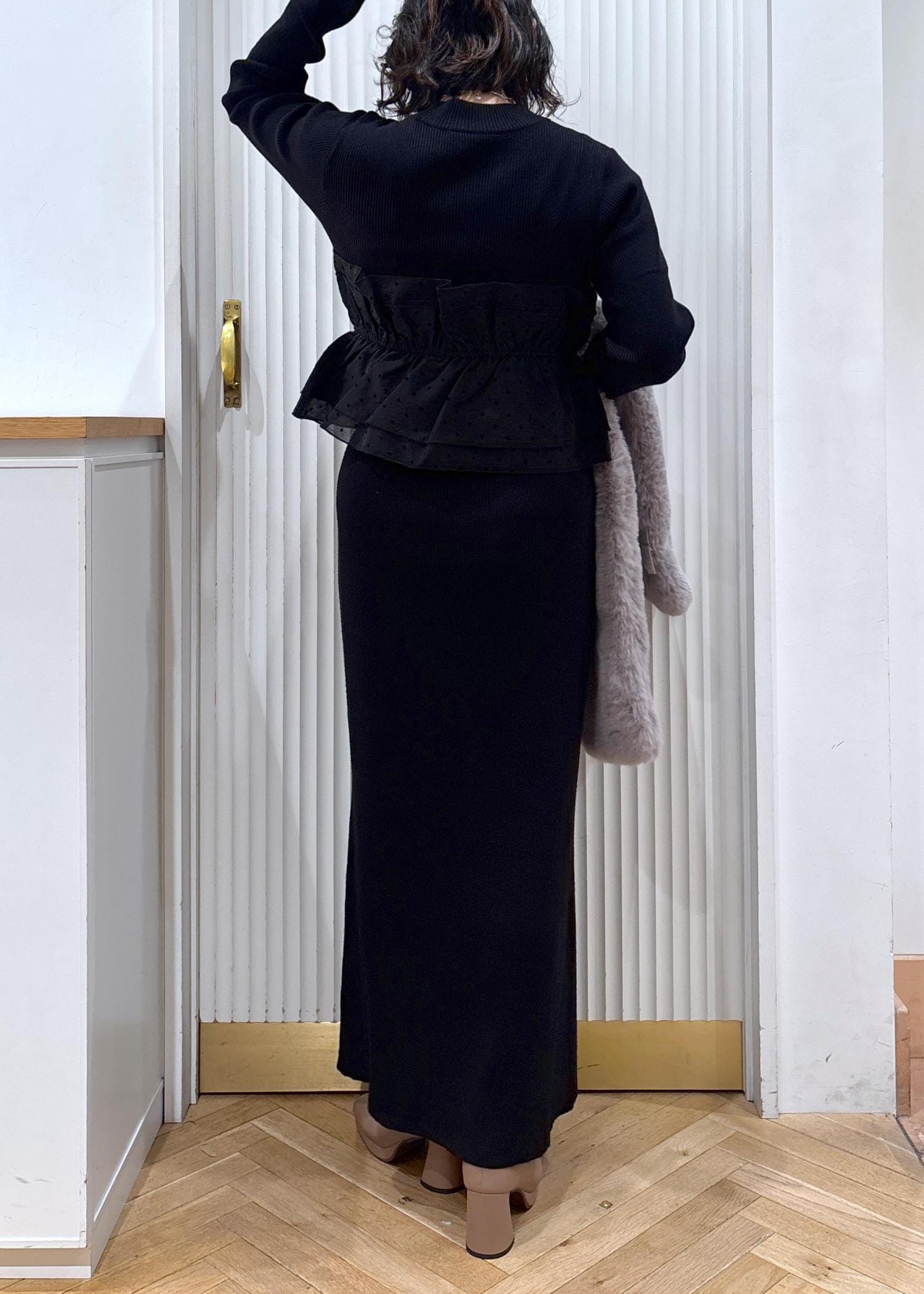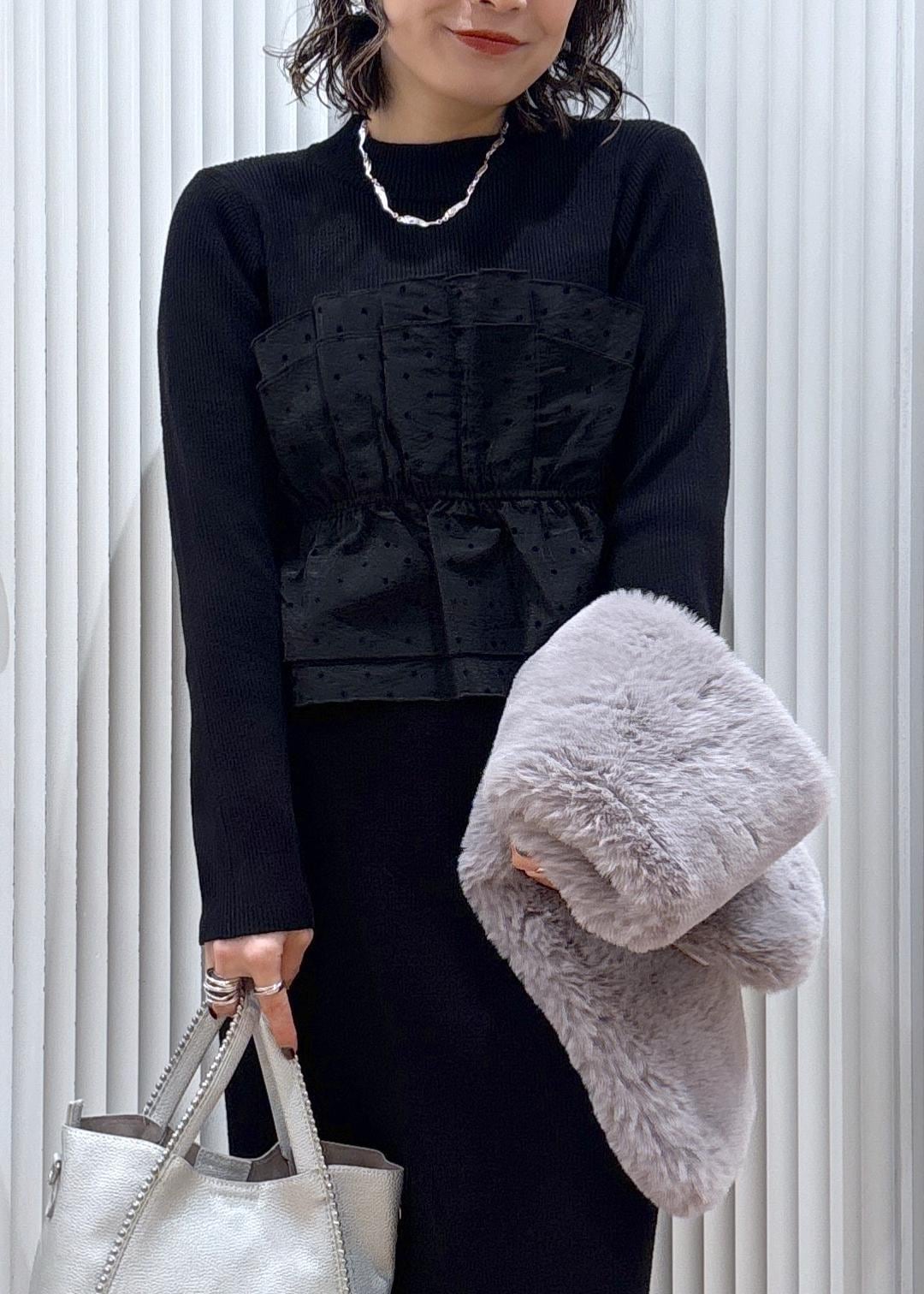 NEW! 予約VISビスチェドッキングニットプルオーバー/セットアップ対応ブラック / F¥5,489レビューリブニット自体の着丈は腰にかかる長さです。ニットのフィット感は強くなく、スッキリはしていますが肩周りしっかりめの私でも不快感無く着用出来ました。身体のラインを拾い過ぎない質感なので1着でもジャケットのインナーとしても幅広く着用可能です。