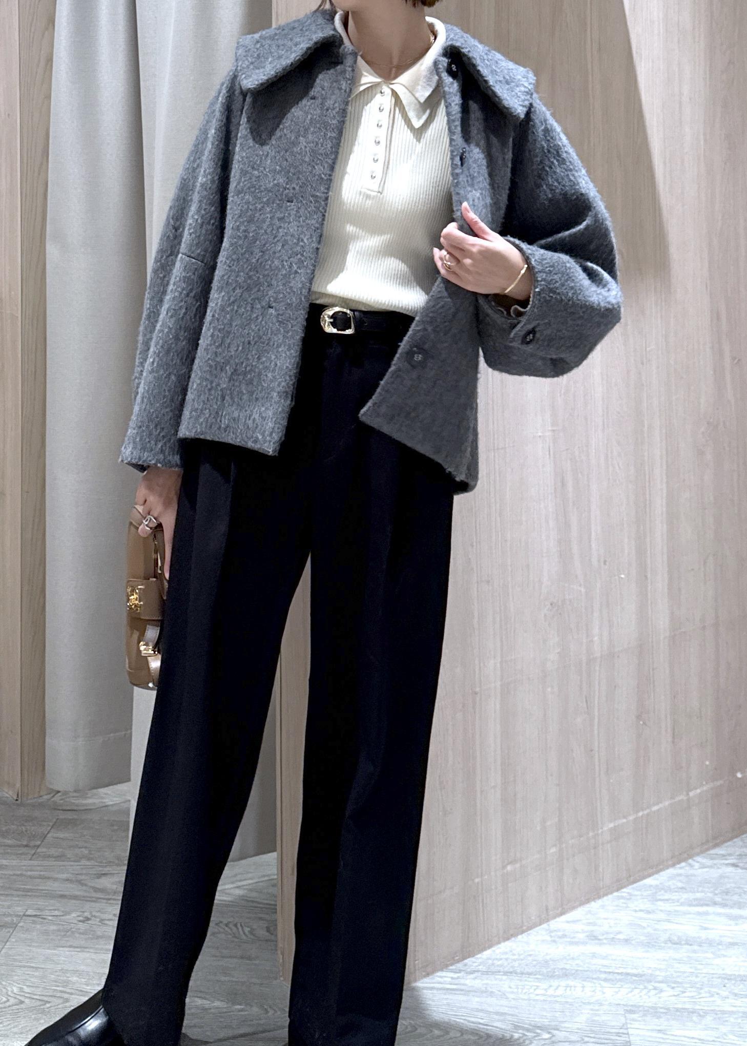 ボトムスの丈感を選ばないので、困ったらコレ!というくらい毎年人気のコートです!
