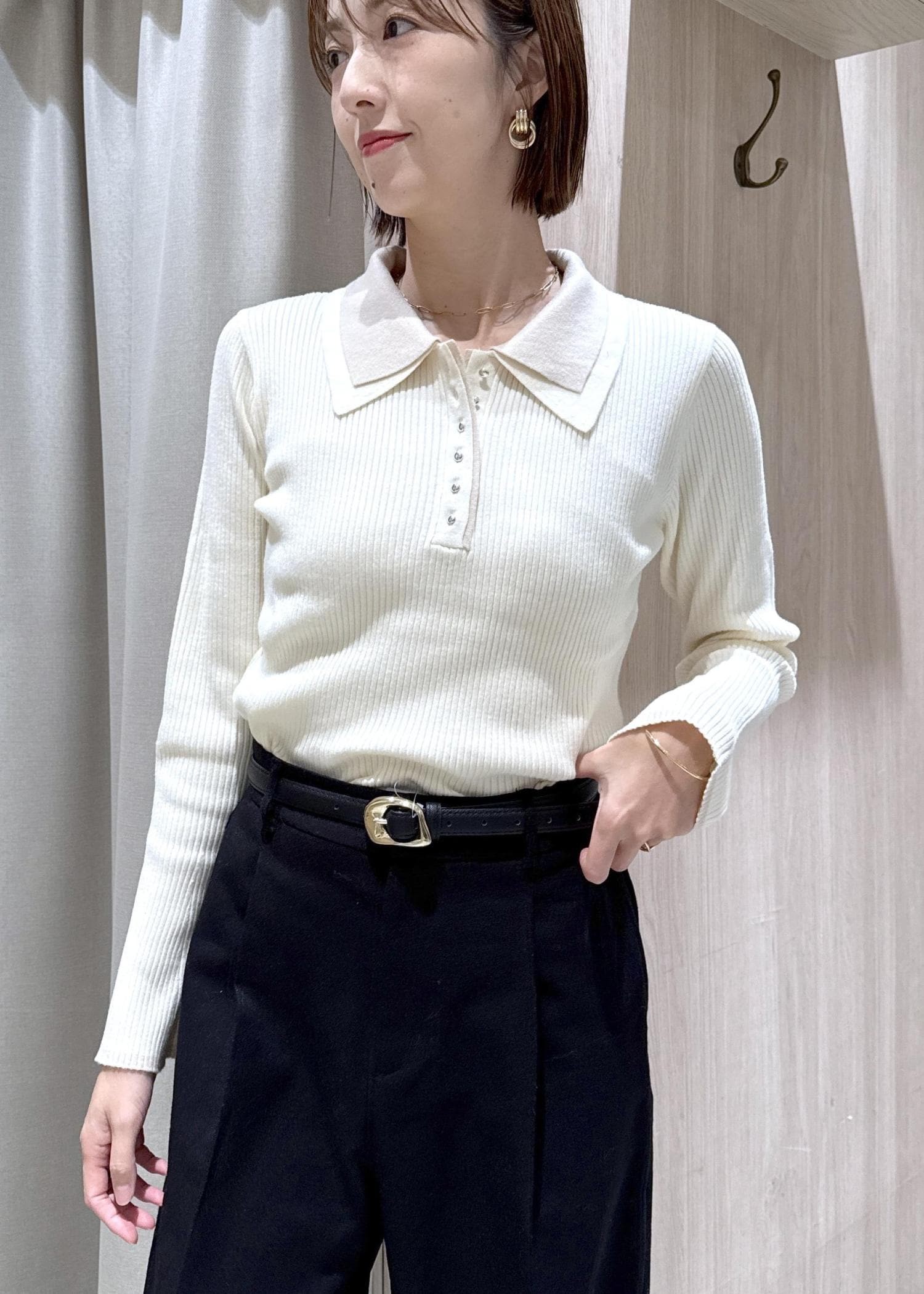 予約VISダブルカラーポロニットトップスオフホワイト / F¥5,929レビュー身長166センチでお尻掛かる長さでした。