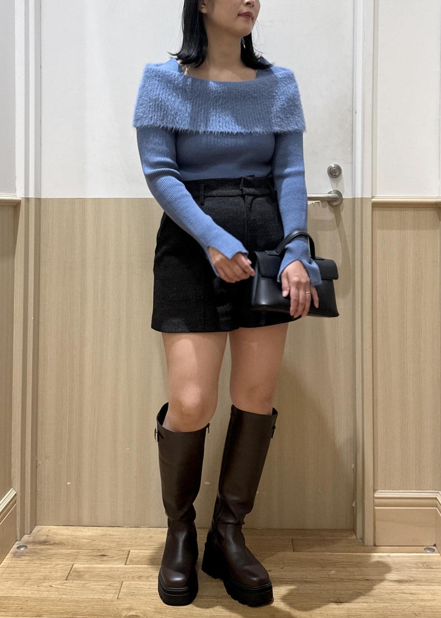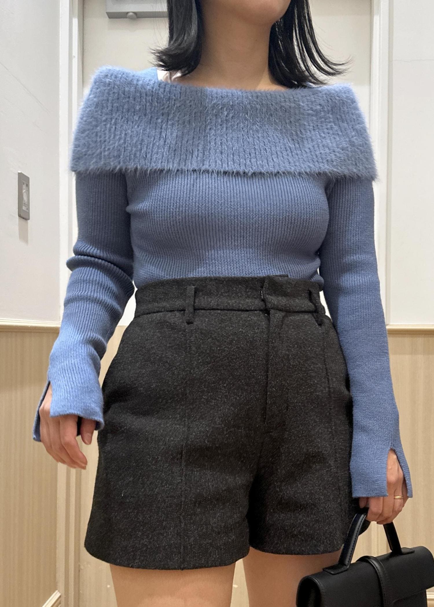 VISフェザーヤーンオフショルもちもちリブニット/イージーケアブルー系 / F¥5,929レビュー柔らかいニット素材です!