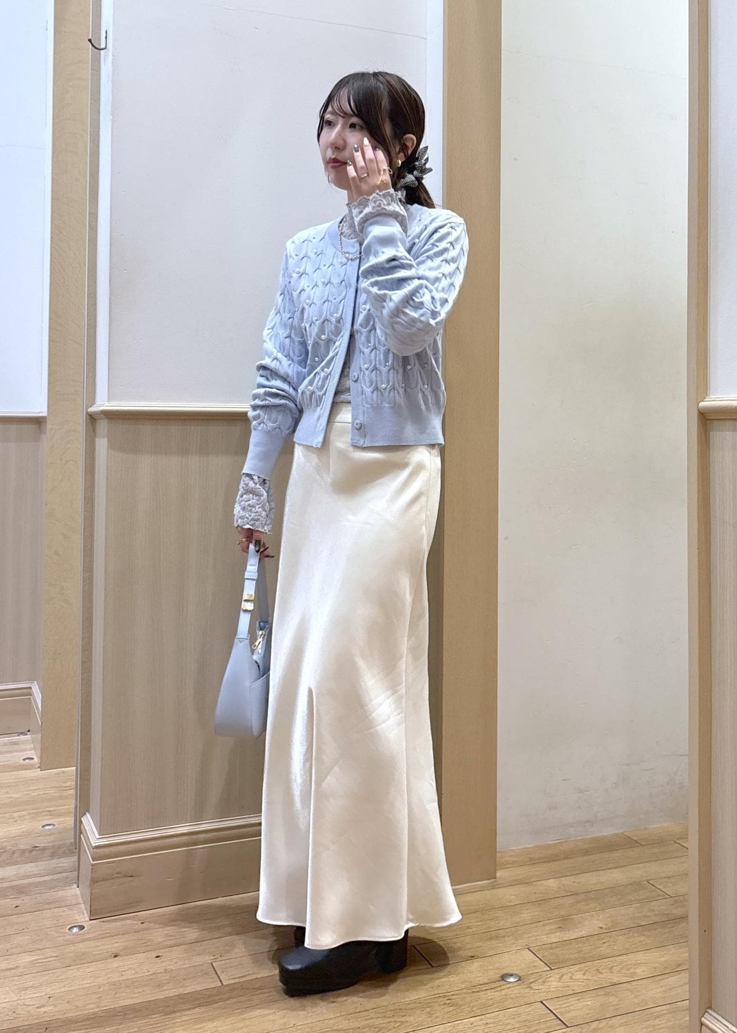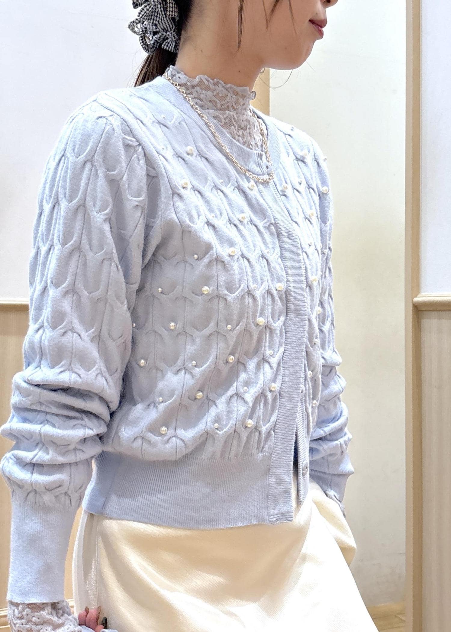 VISパールケーブルカーディガンサックス / F¥6,589レビューパールが散りばめられ、華やかなカーディガンです。