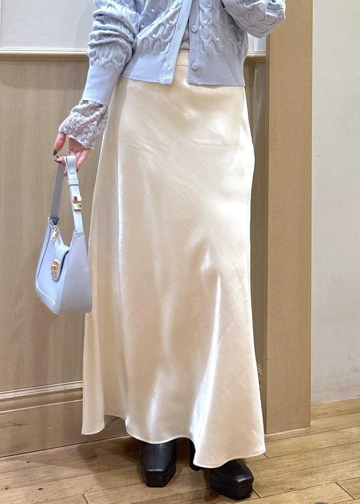 VISシャイニーナローフレアスカートキナリ / F¥6,589レビュー156センチで腰で履いて、踵につくくらいでした。