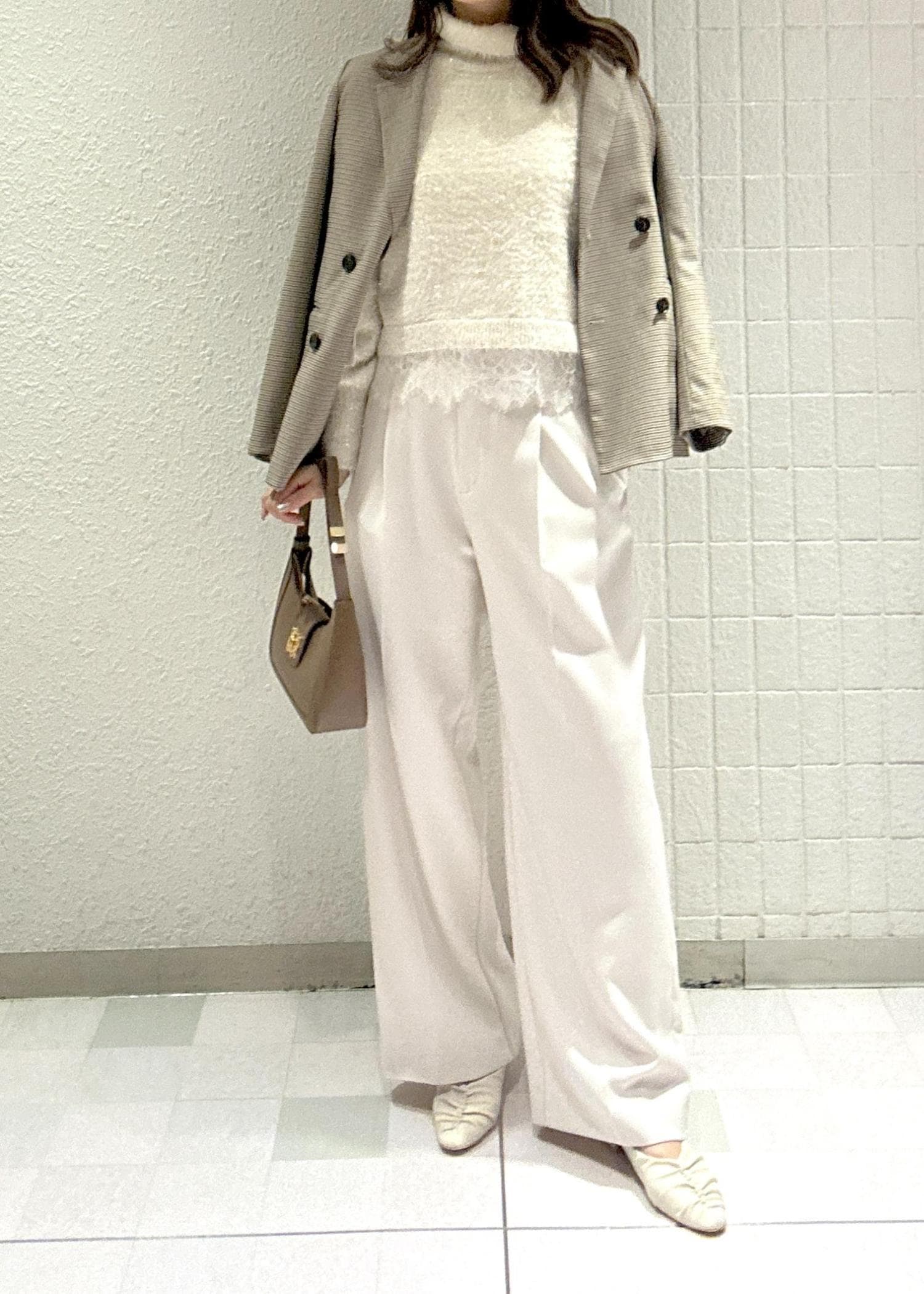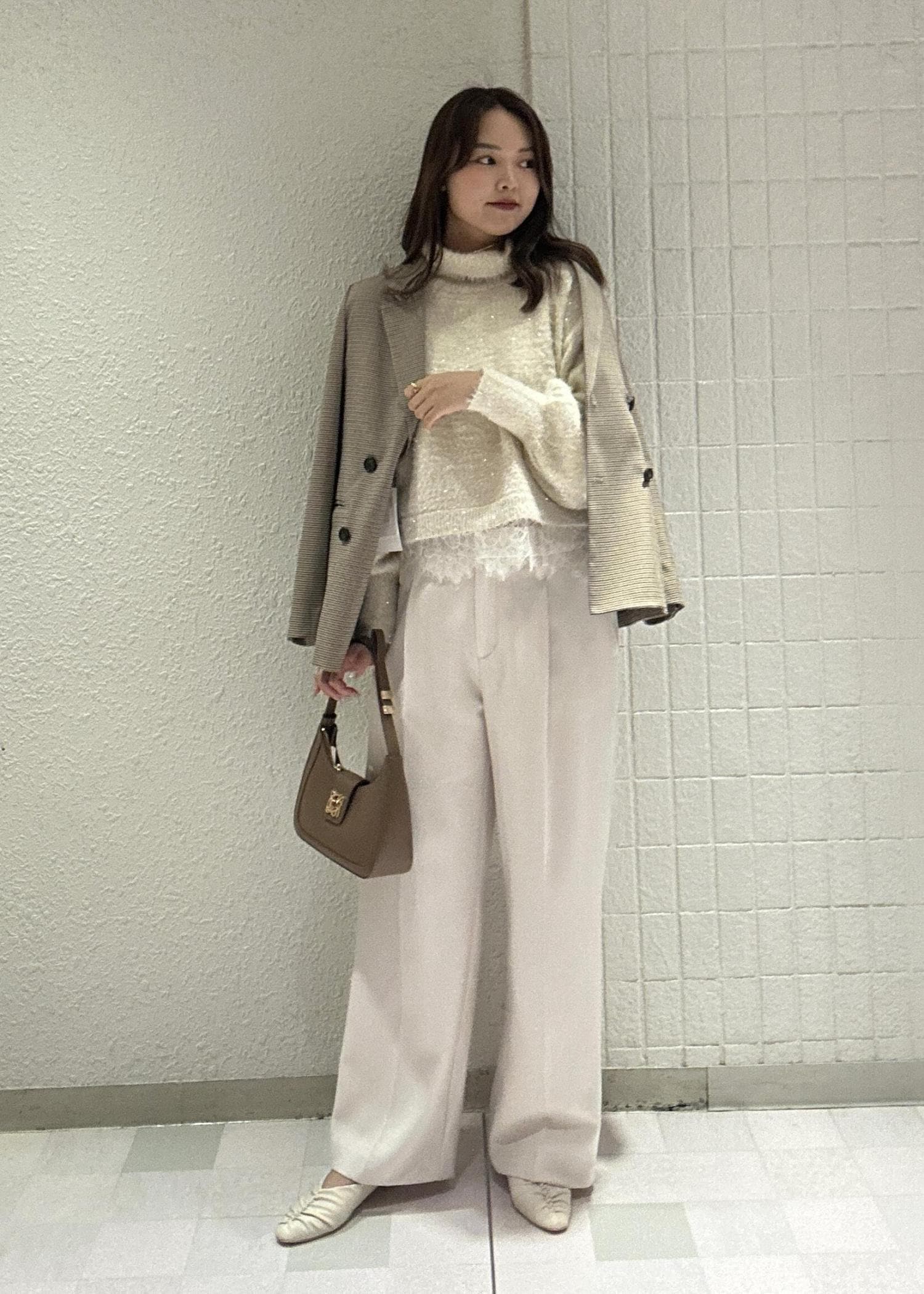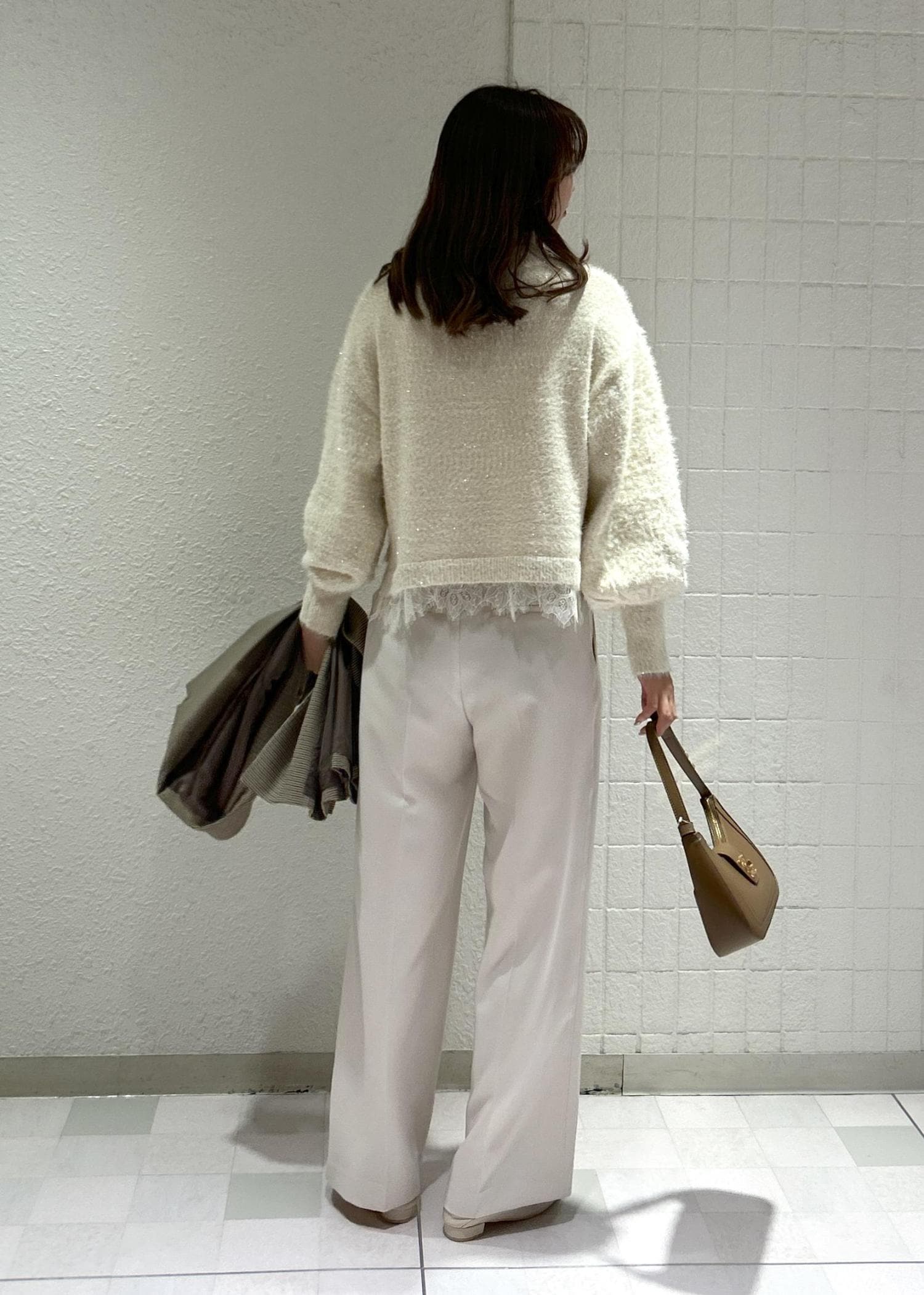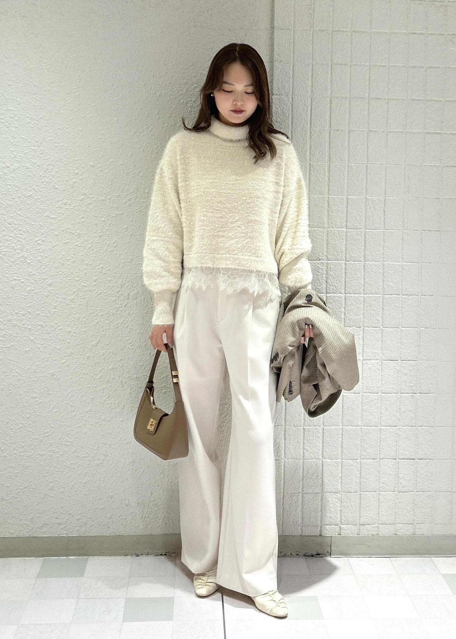 VISラメフェザー裾レースハイネックニットオフホワイト / F¥6,589レビュー一枚でレイヤードスタイルが楽しめるニット!