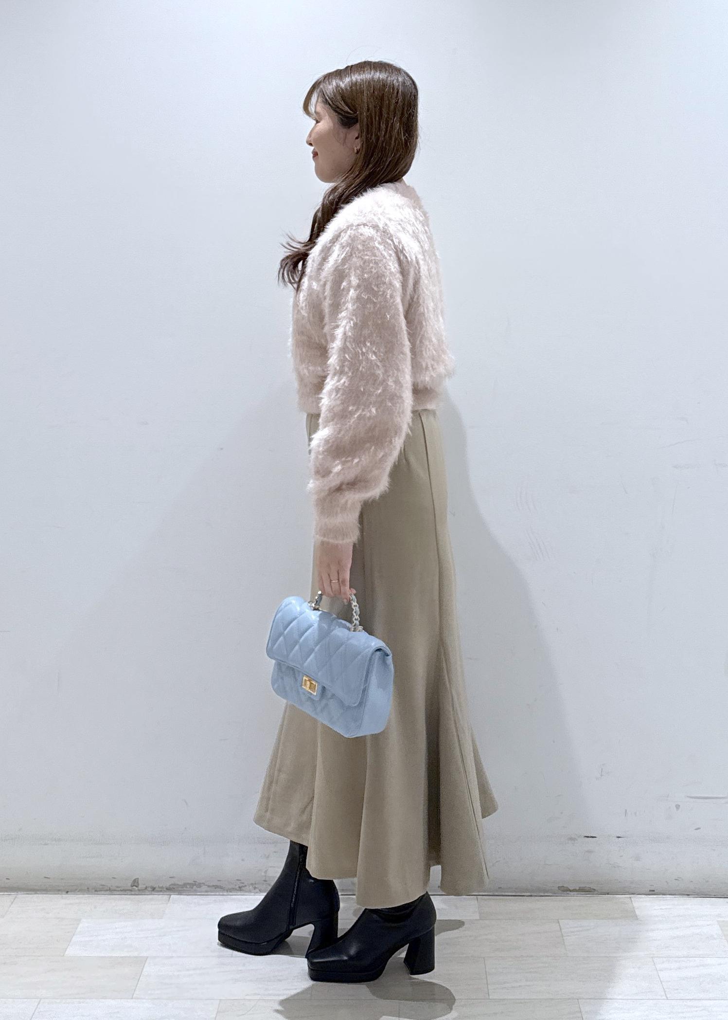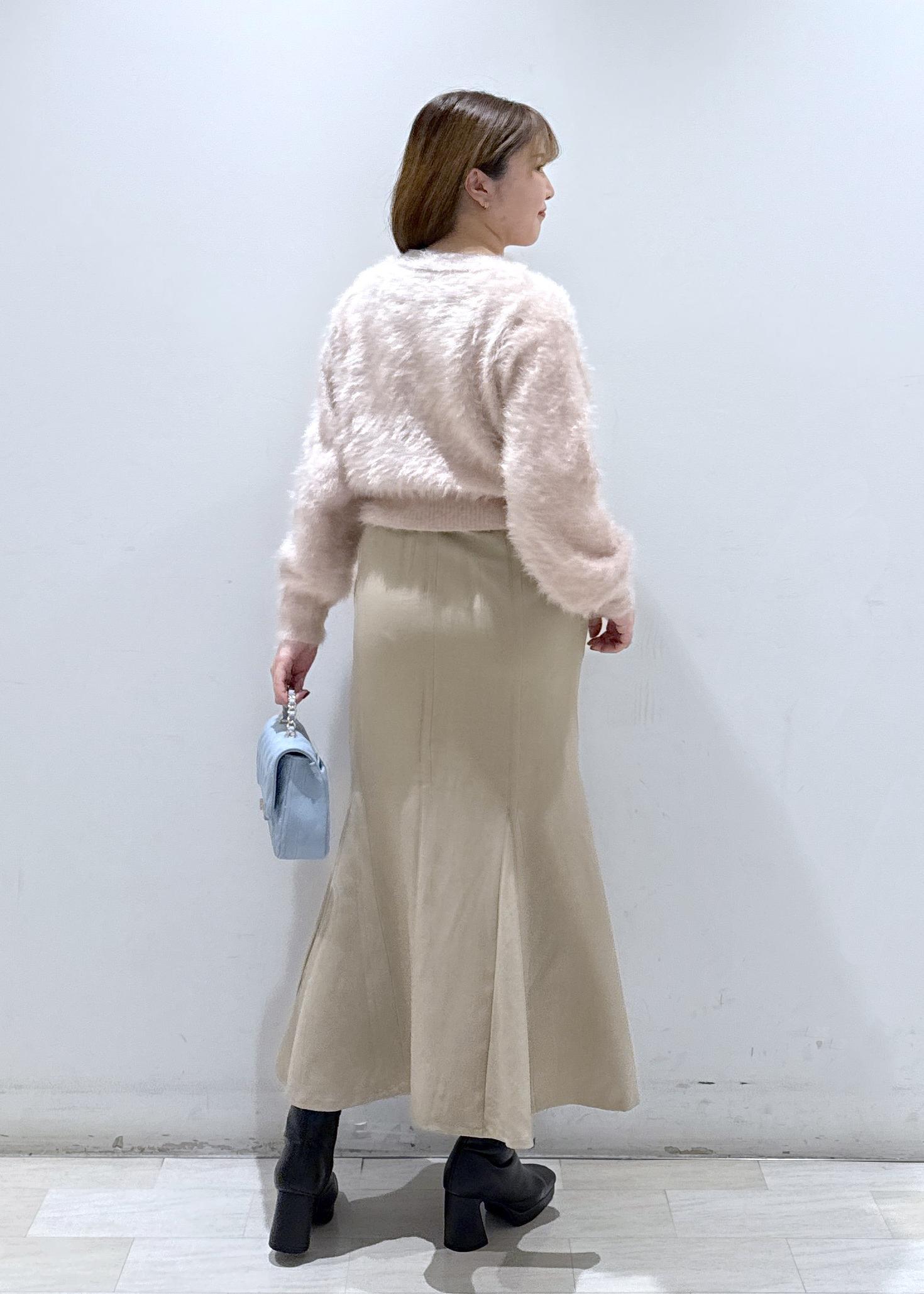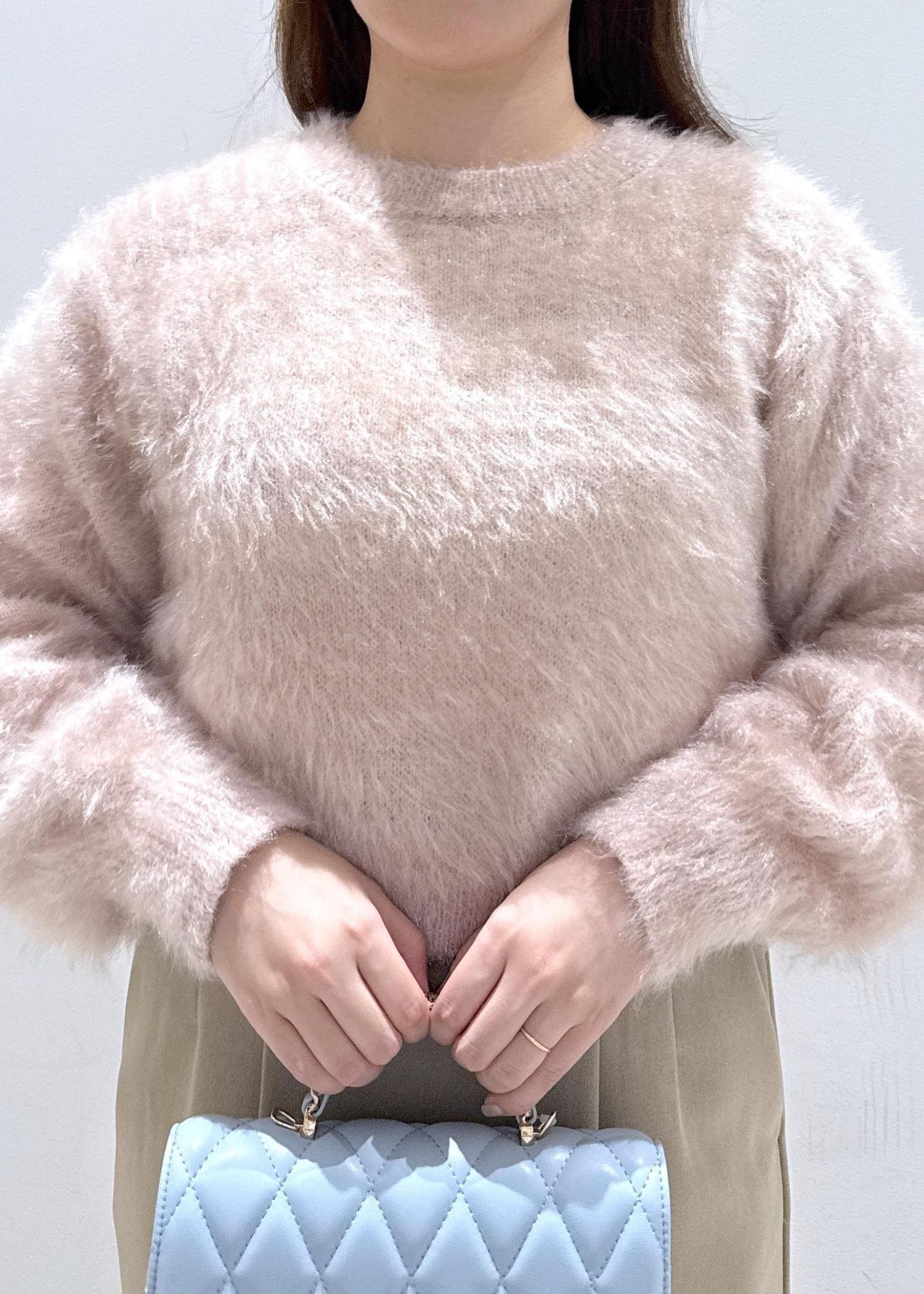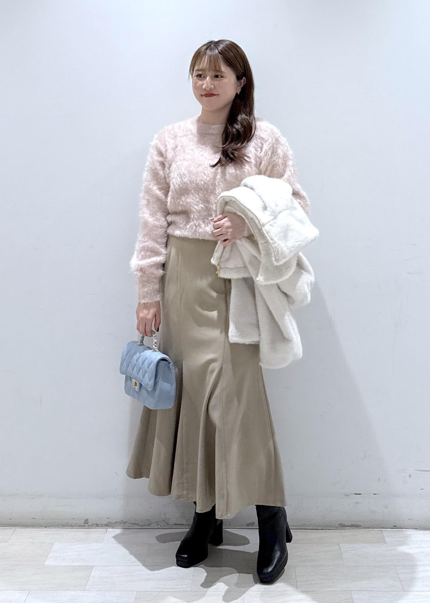 今回は新作で入荷しました柔らかいシャギーのピンクニットに、ウーリッシュのマーメイドスカートと合わせて綺麗めなコーディネートにしてみました。女性らしい淡い色のピンクカラーなので、お仕事にはもちろん、お出かけやデートコーデにもピッタリです!