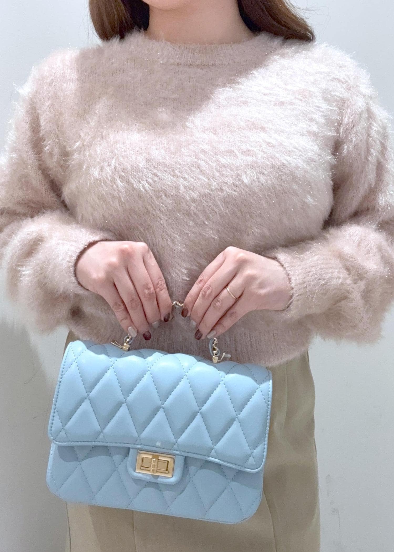 VISチェーンハンドルキルティングショルダーバッグ/2WAY・一部WEB限定カラーサックス / F¥6,919レビュー可愛すぎてリアルバイしてしまいました♡2wayで使えるキルティングデザインバッグ♪見た目は小さめなバッグではありますが、携帯やハンドタオル、AirPods、リップやファンデなどがコンパクトに入ります。チェーンは取り外し可能なので、付けても外してもどちらでも気分に合わせて変えられます。この秋冬にしか使えないキルティングのデザインなのでオススメです。