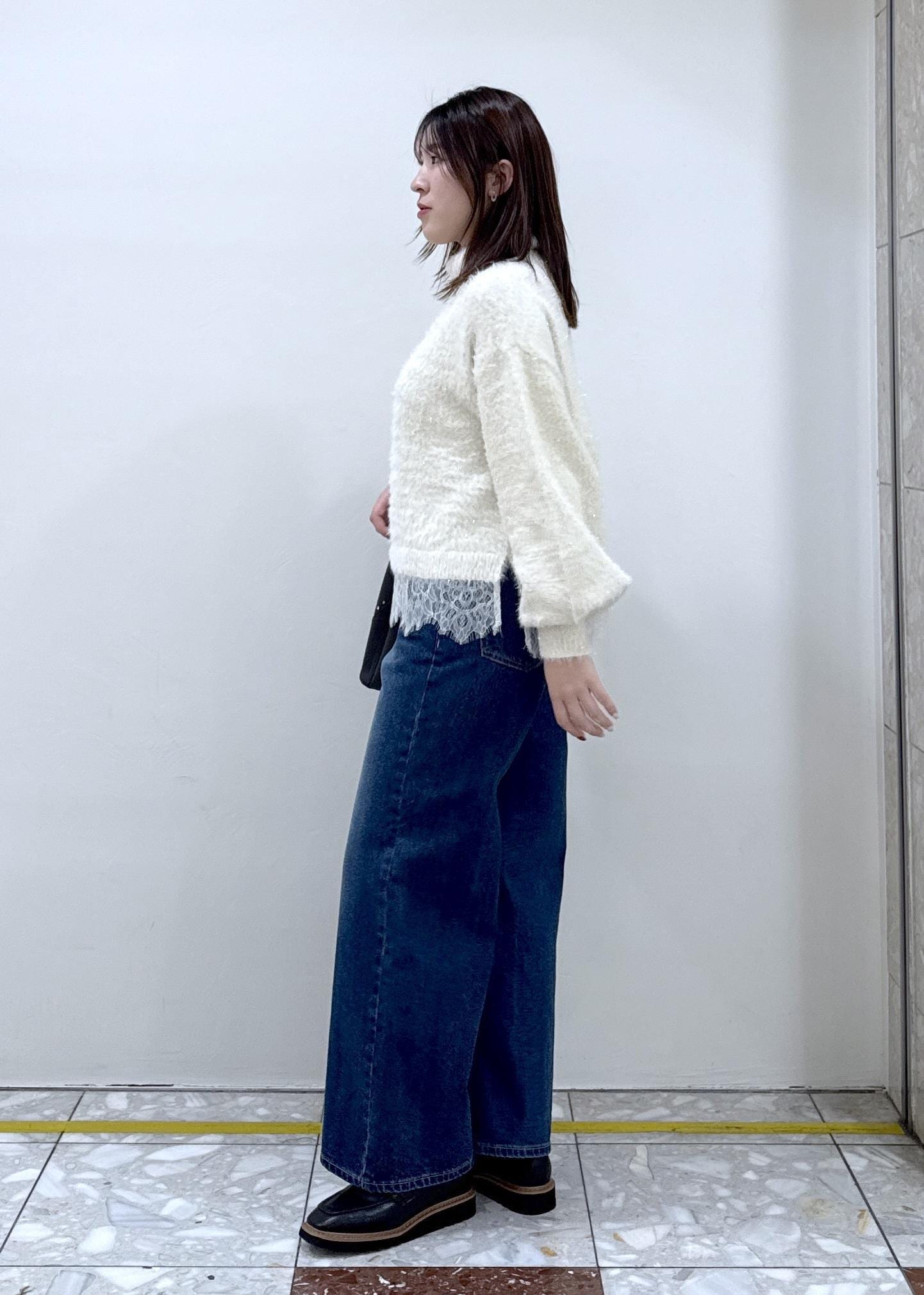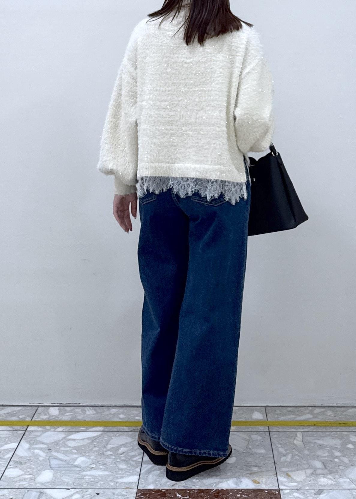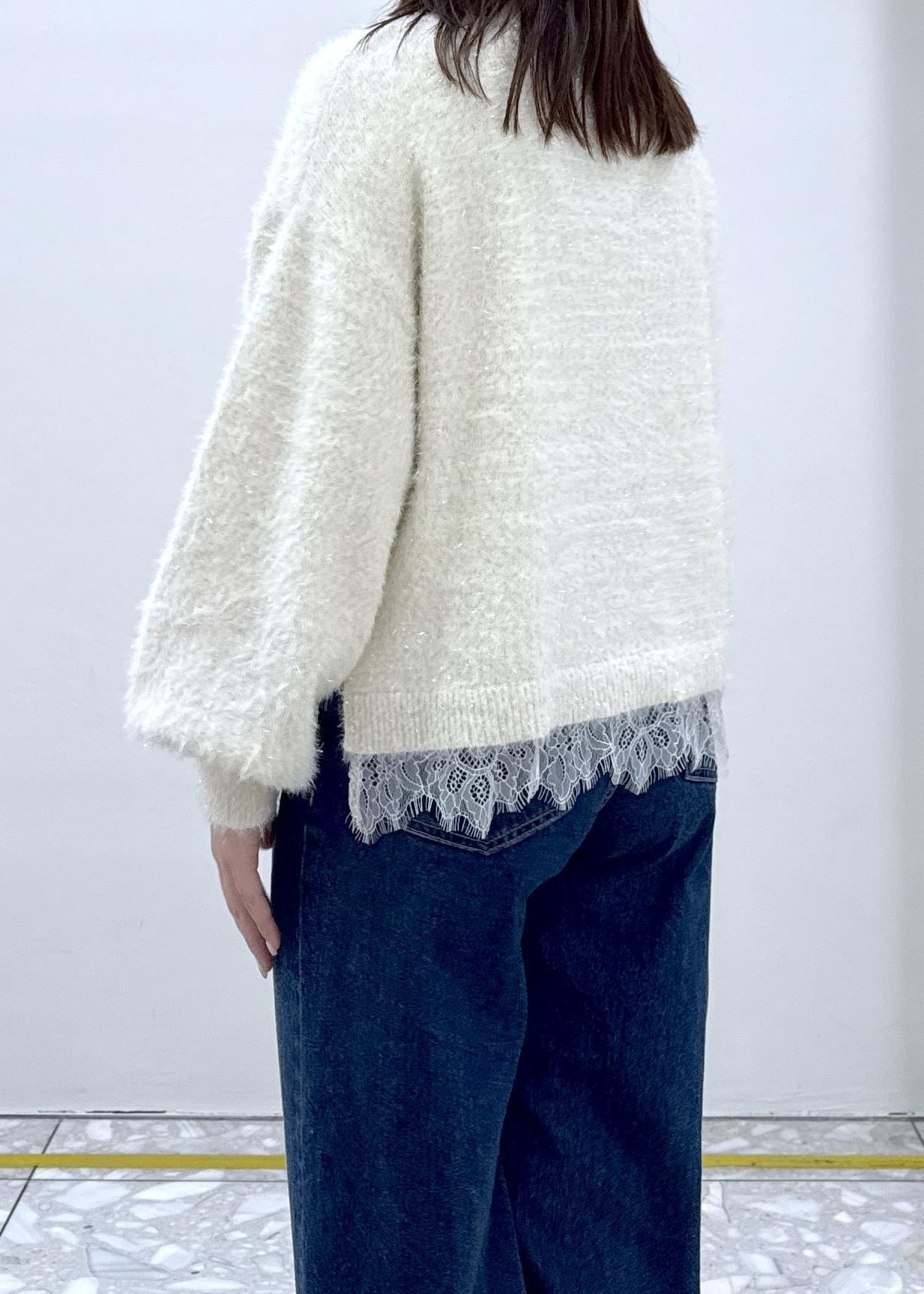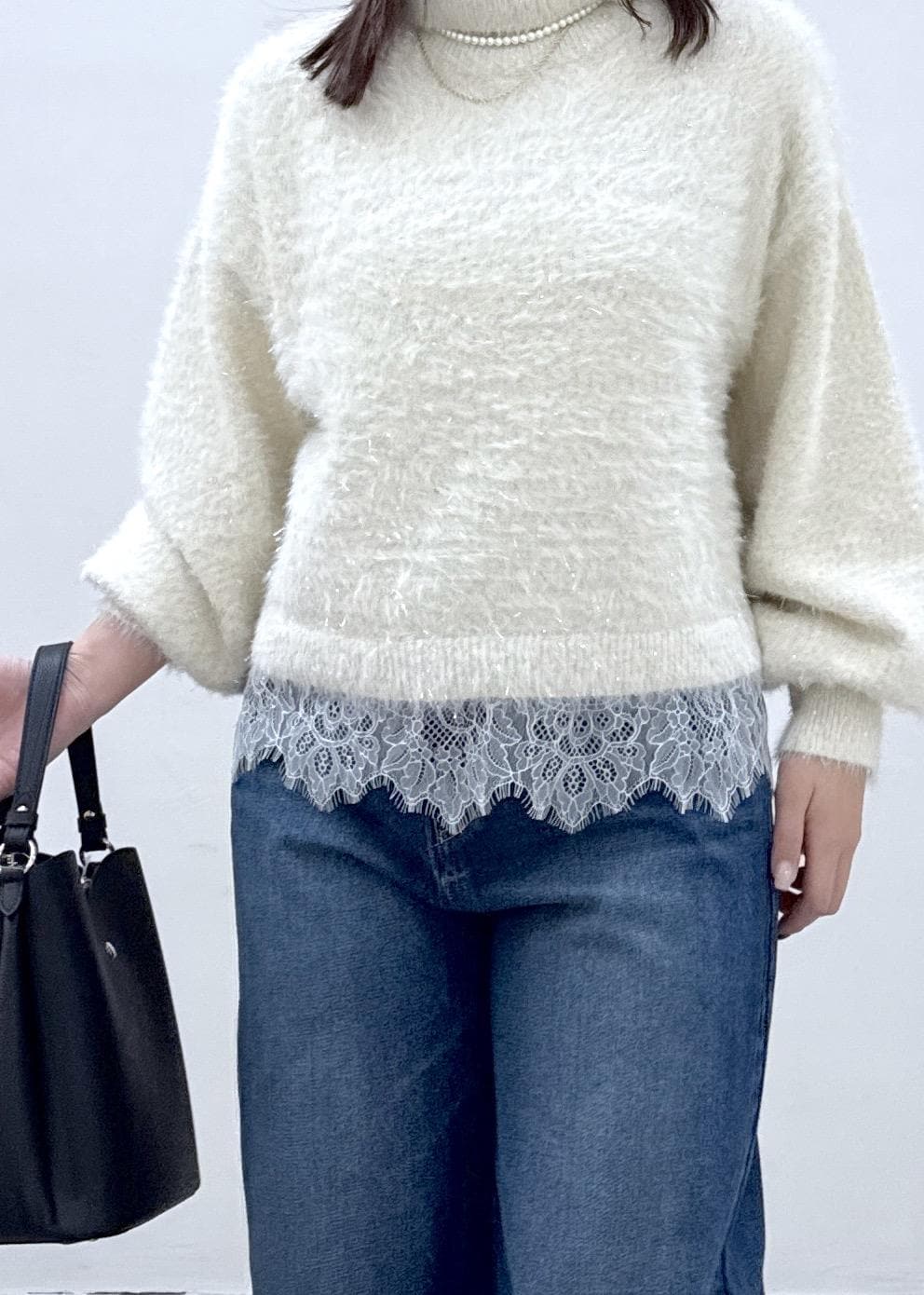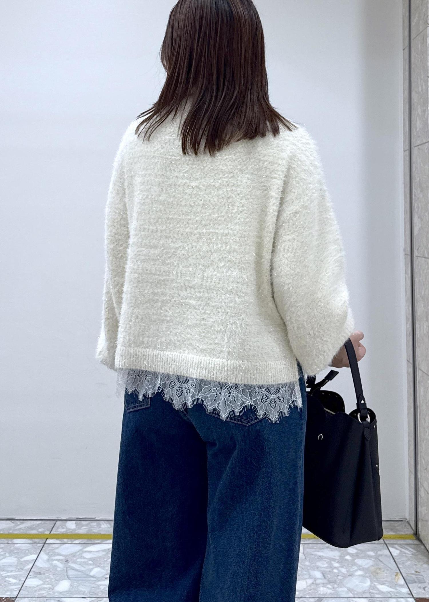 VISラメフェザー裾レースハイネックニットオフホワイト / F¥6,589レビュー裾からチラ見えするレースがかわいい!!