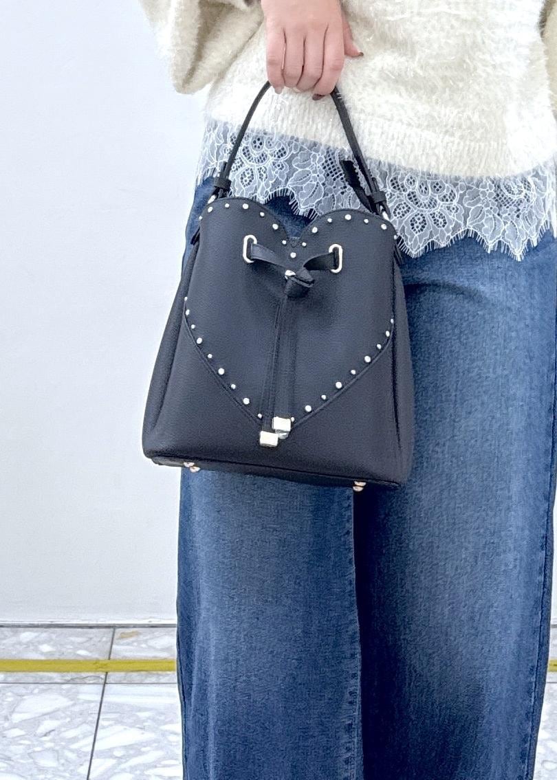 VISラインストーン&スタッズハートカットバッグブラック / F¥7,909レビュー大人気のハートカットバックにスタッズデザイン登場!