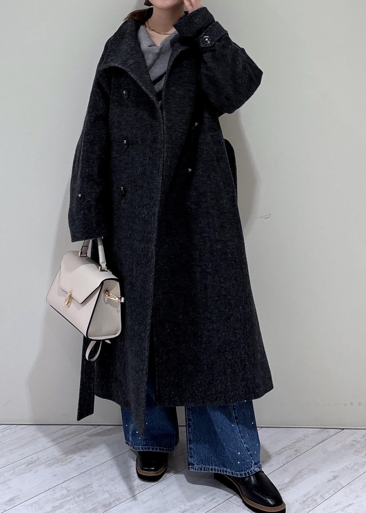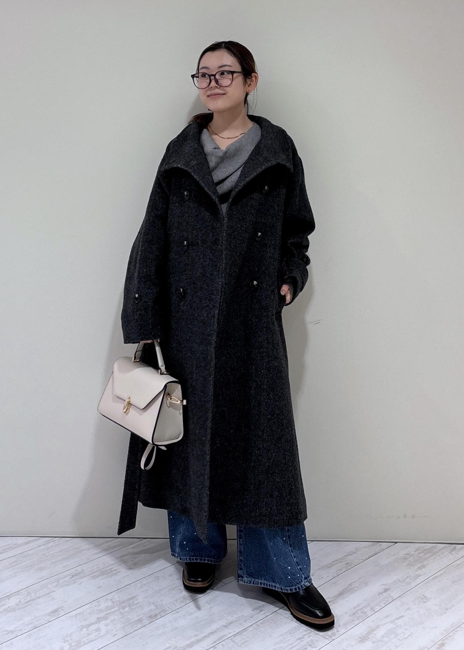 VIS尾州シャギースタンドカラーロングコート/静電気防止・WEB限定PS・TMサイズチャコール / S¥21,890レビュー身長150センチSサイズ着用