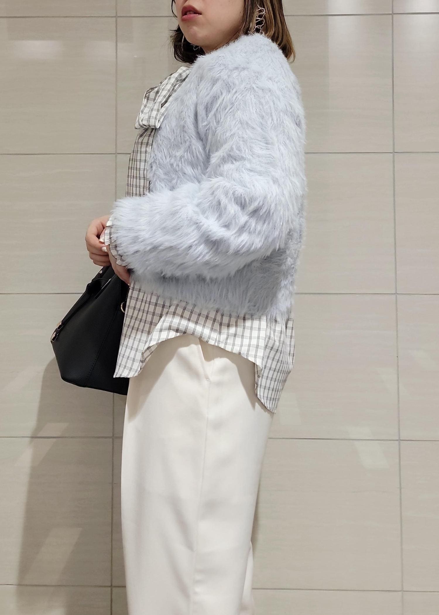 VISラビットファーVネックカーディガン/イージーケア・WEB限定カラーサックス / F¥5,929レビュー長すぎず、短すぎずバランスの取りやすい着丈で、パンツにもスカートにも合わせやすいデザインです。