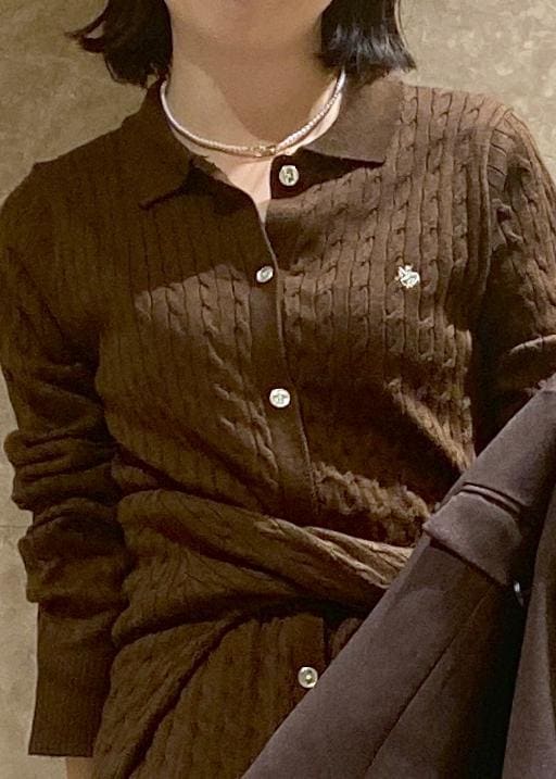 VIS【POLO BCS】VIS別注ミニケーブルノーカラーニットカーディガンダークブラウン / F¥6,930レビュー身長150cmでFサイズを着用し、腰にかかる丈感でした。サラッとしておりチクチク感もなく、とても着やすかったです!