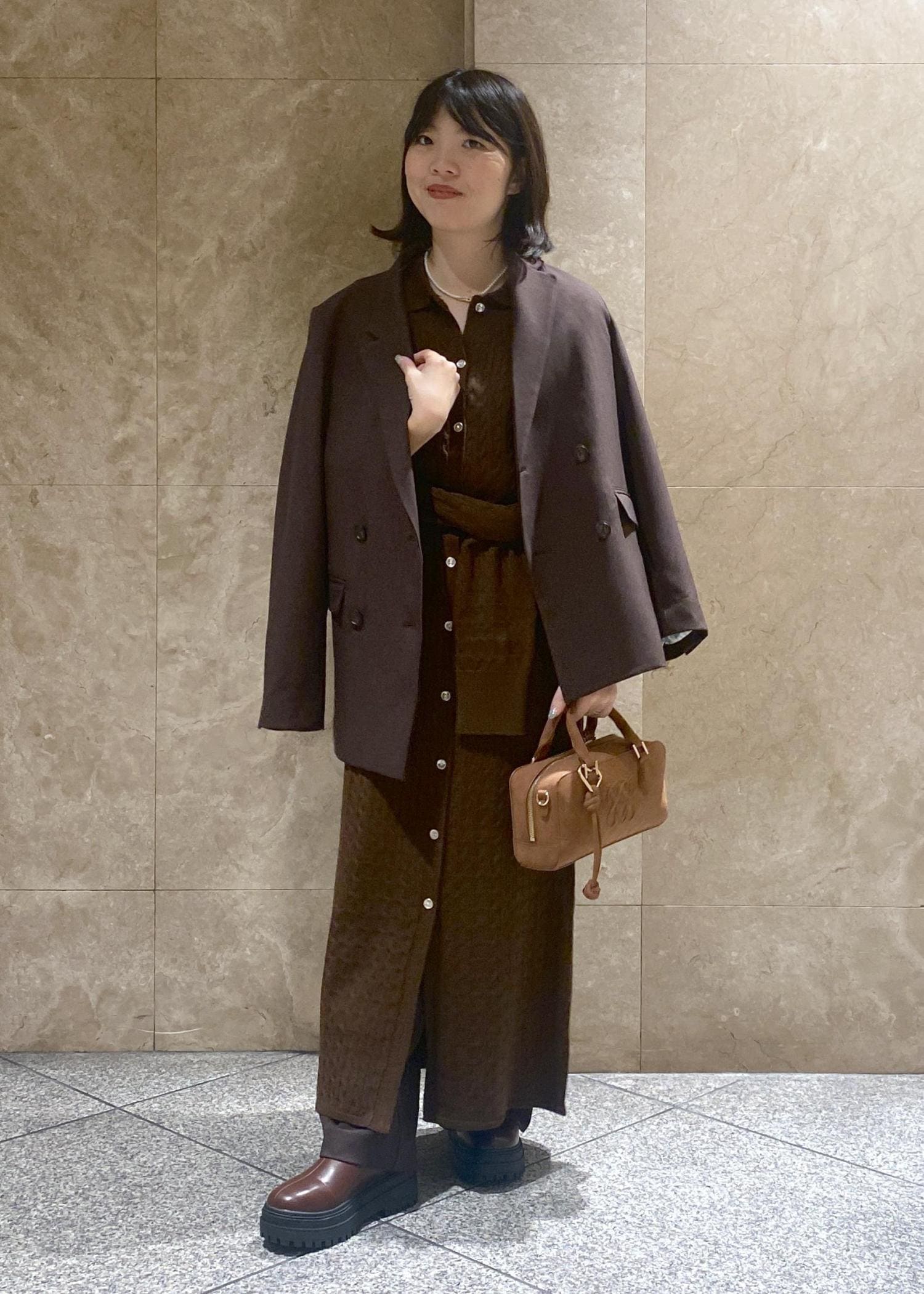 VIS【美easy】ウーリッシュダブルブレストテーラードジャケット【セットアップ対応/洗える】ダークブラウン / S¥8,899レビュー身長150cmでSサイズを着用し、お尻が少し隠れる丈感でした!オーバーサイズかと思いましたが、低身長のわたしでも大きすぎずとてもピッタリで着用出来ました!
