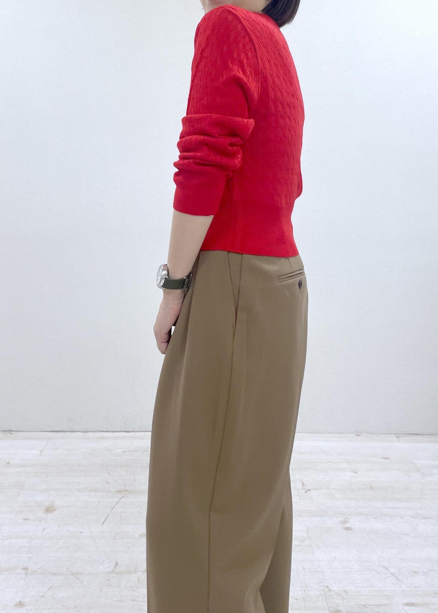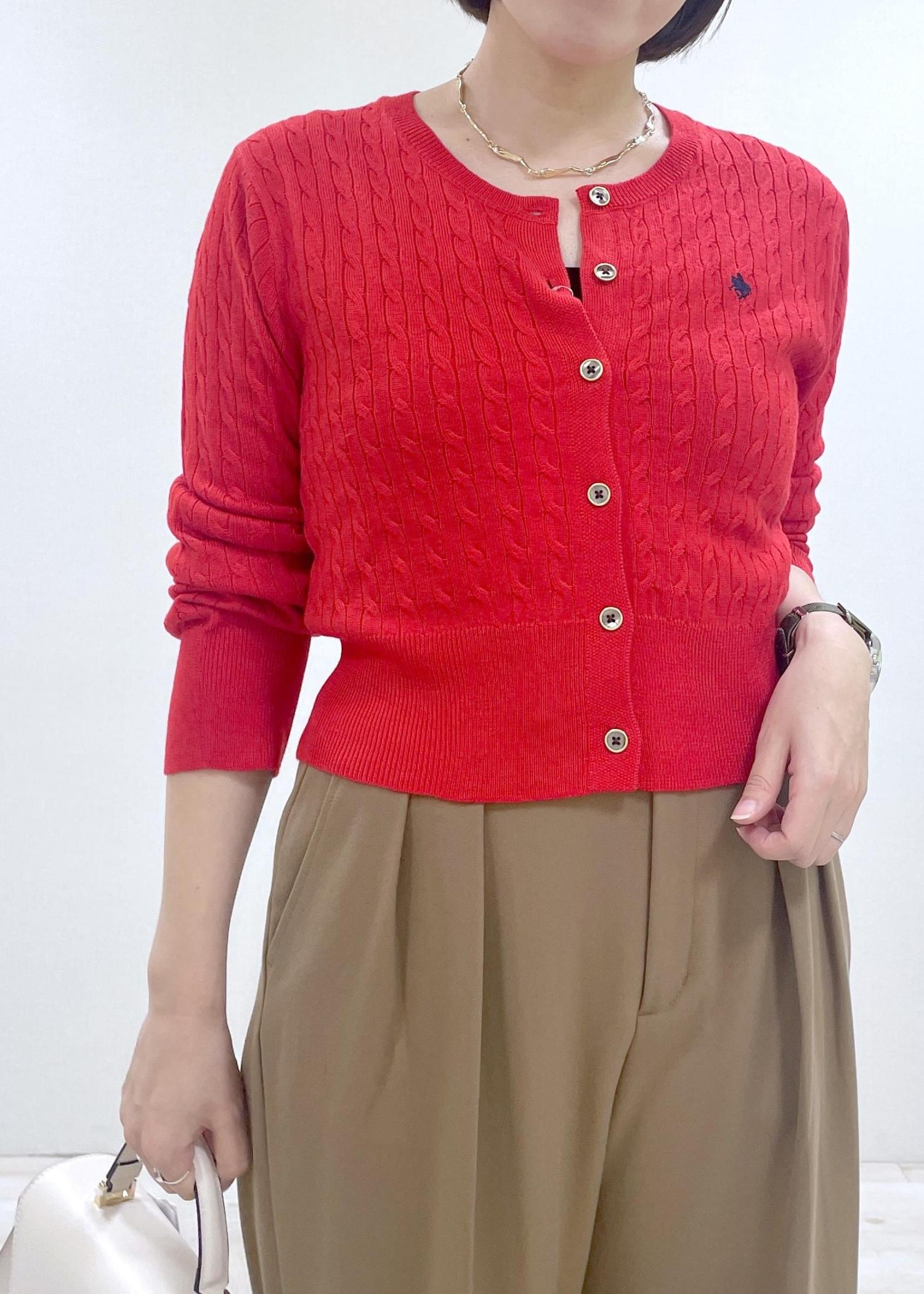 VIS【POLO BCS】VIS別注ミニケーブルノーカラーニットカーディガンレッド / F¥6,930レビュー着丈がコンパクトで、ほどよくフィット感があり、すっきりとしたシルエットのカーディガンです。