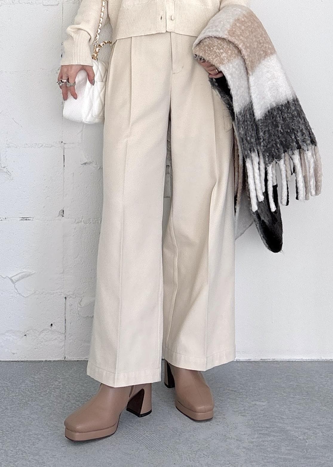 VIS起毛ウールライク版ベルトディテールタックワイドパンツキナリ / SS¥6,589レビュー季節を感じる起毛素材がさりげない、大人可愛いワイドパンツ♪ハイウエストデザインが脚長効果抜群で、スタイルupが叶う優秀パンツです。厚みは強くなく、優しい起毛の素材感が温かみのある印象◎154cmでSSサイズ着用、全体的に程よくフィット感があり、着丈は足首くらいの長さでした。