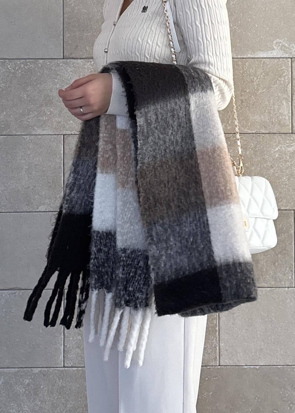 VISふわふわフリンジチェックマフラー/静電気防止チャコール / F¥3,289レビューふわっと柔らかいマフラー
