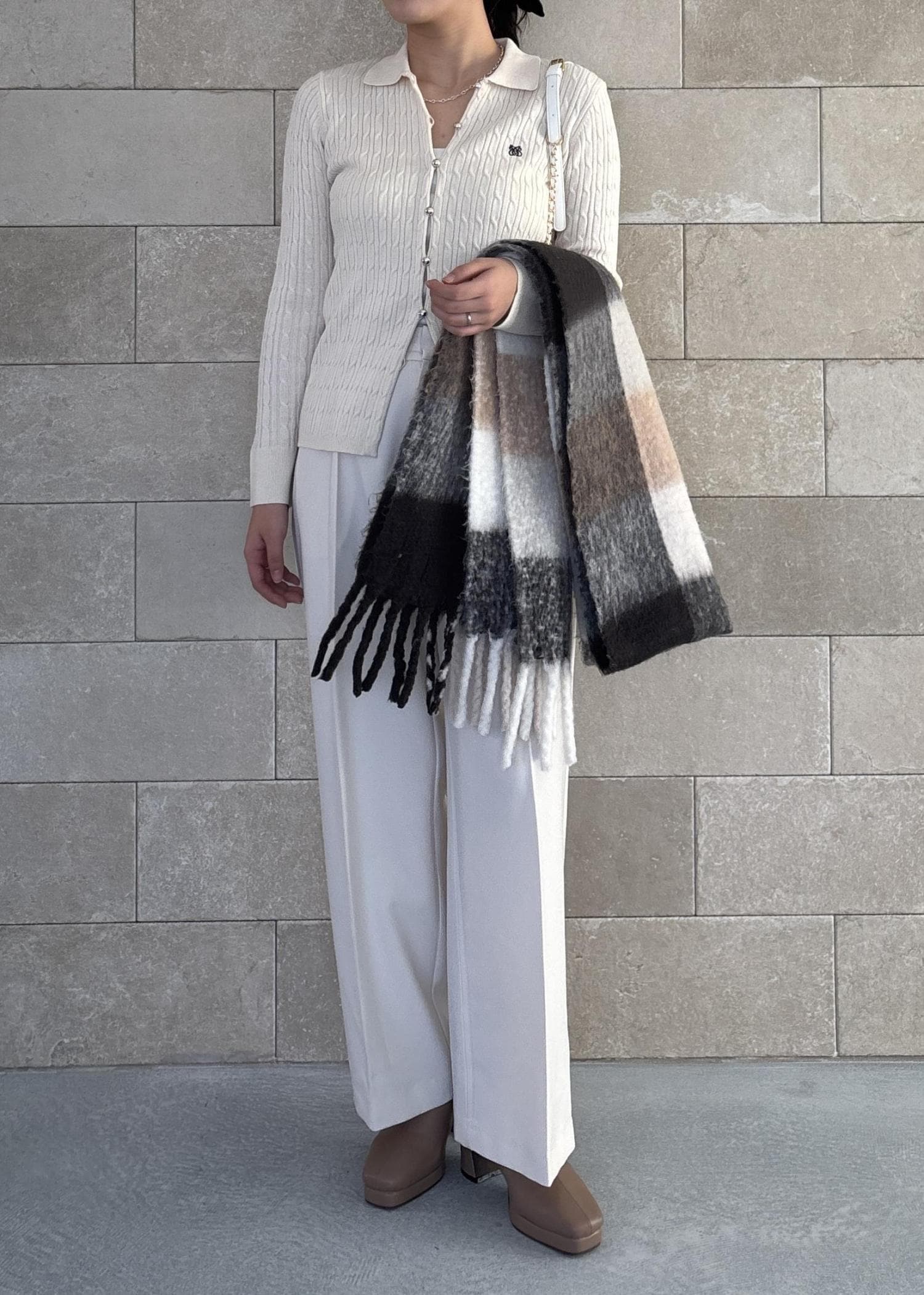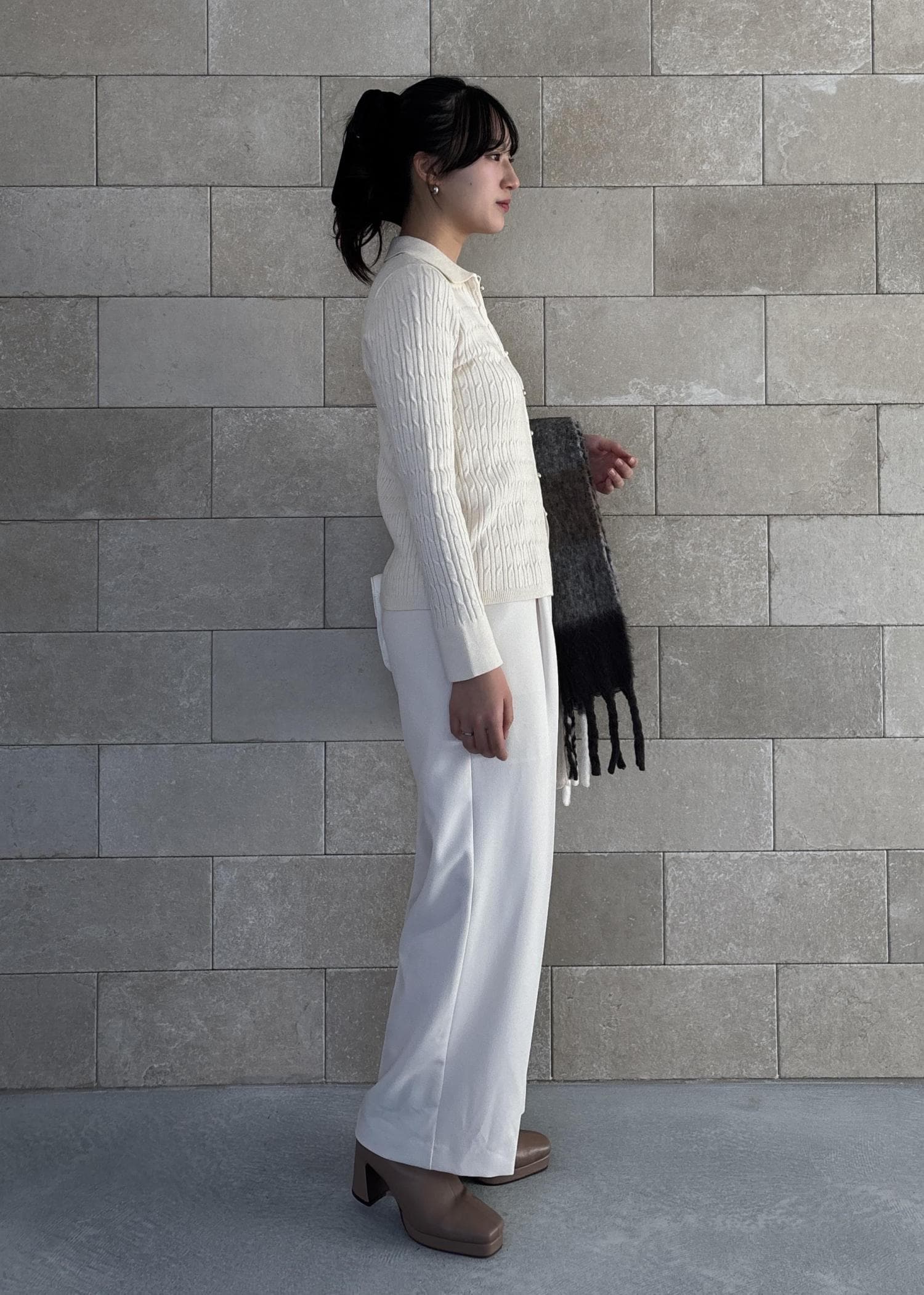 NEW! 予約VISポロ衿ケーブルカーディガンキナリ / F¥5,929レビューケーブル編みが可愛いカーディガン!