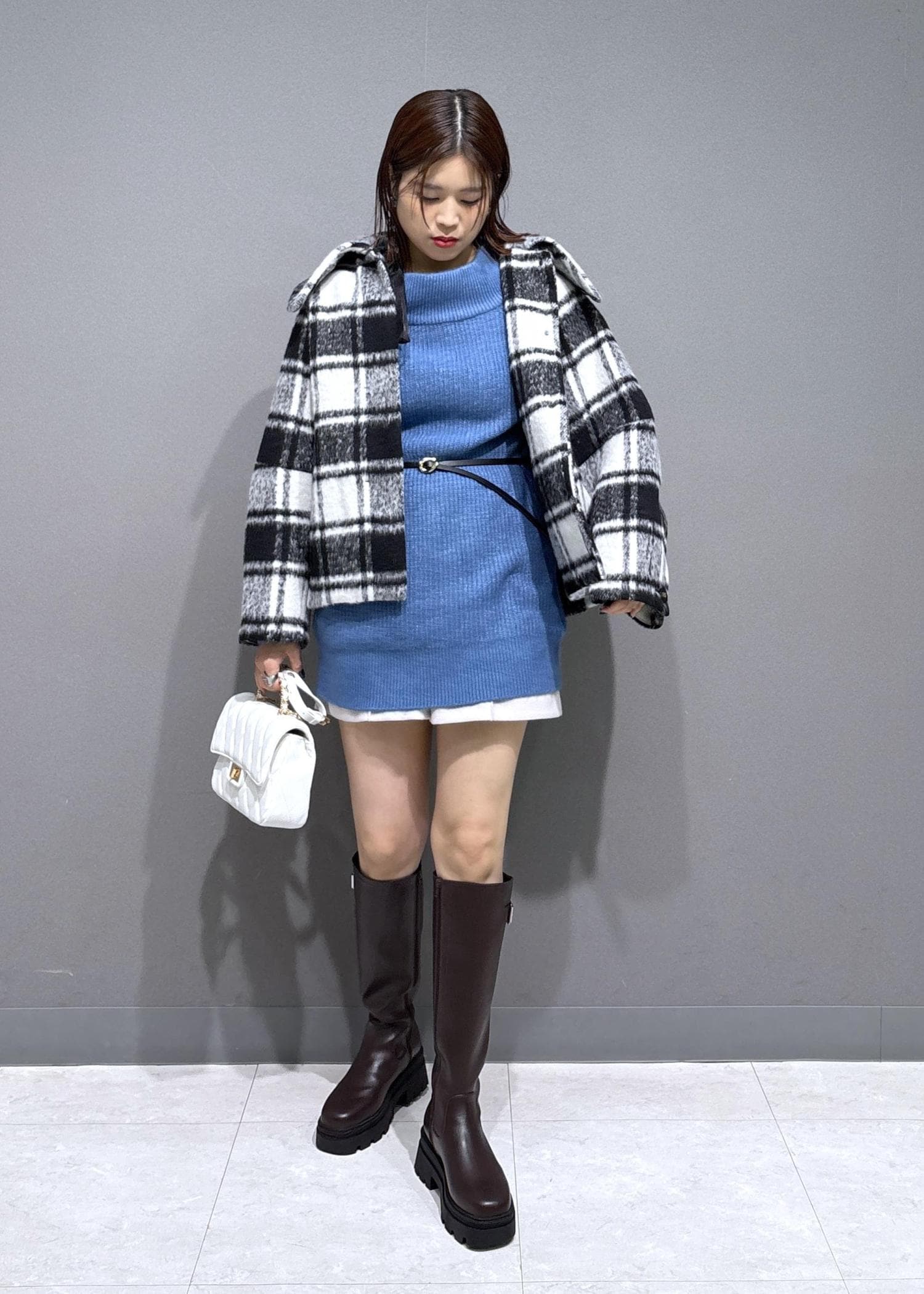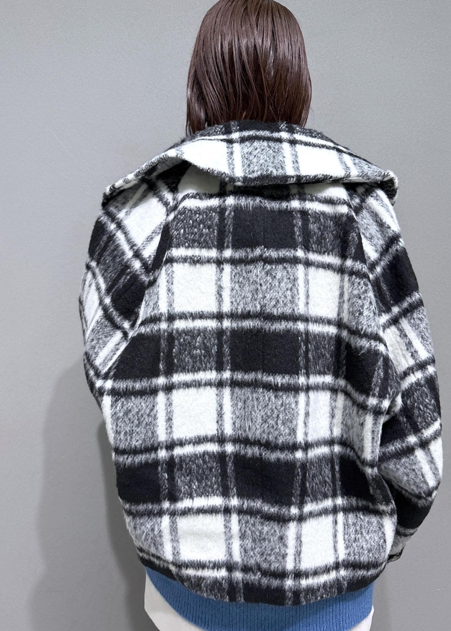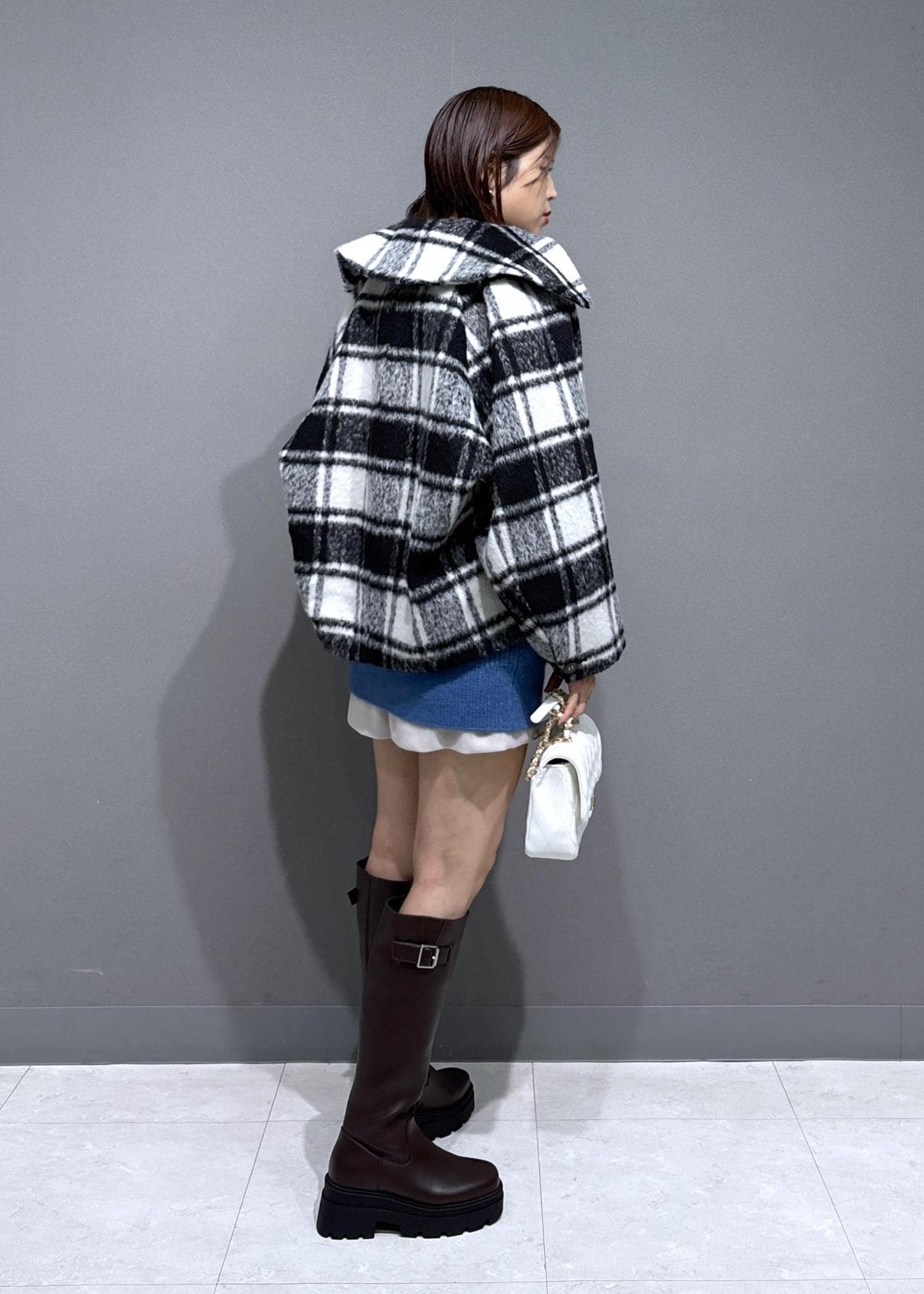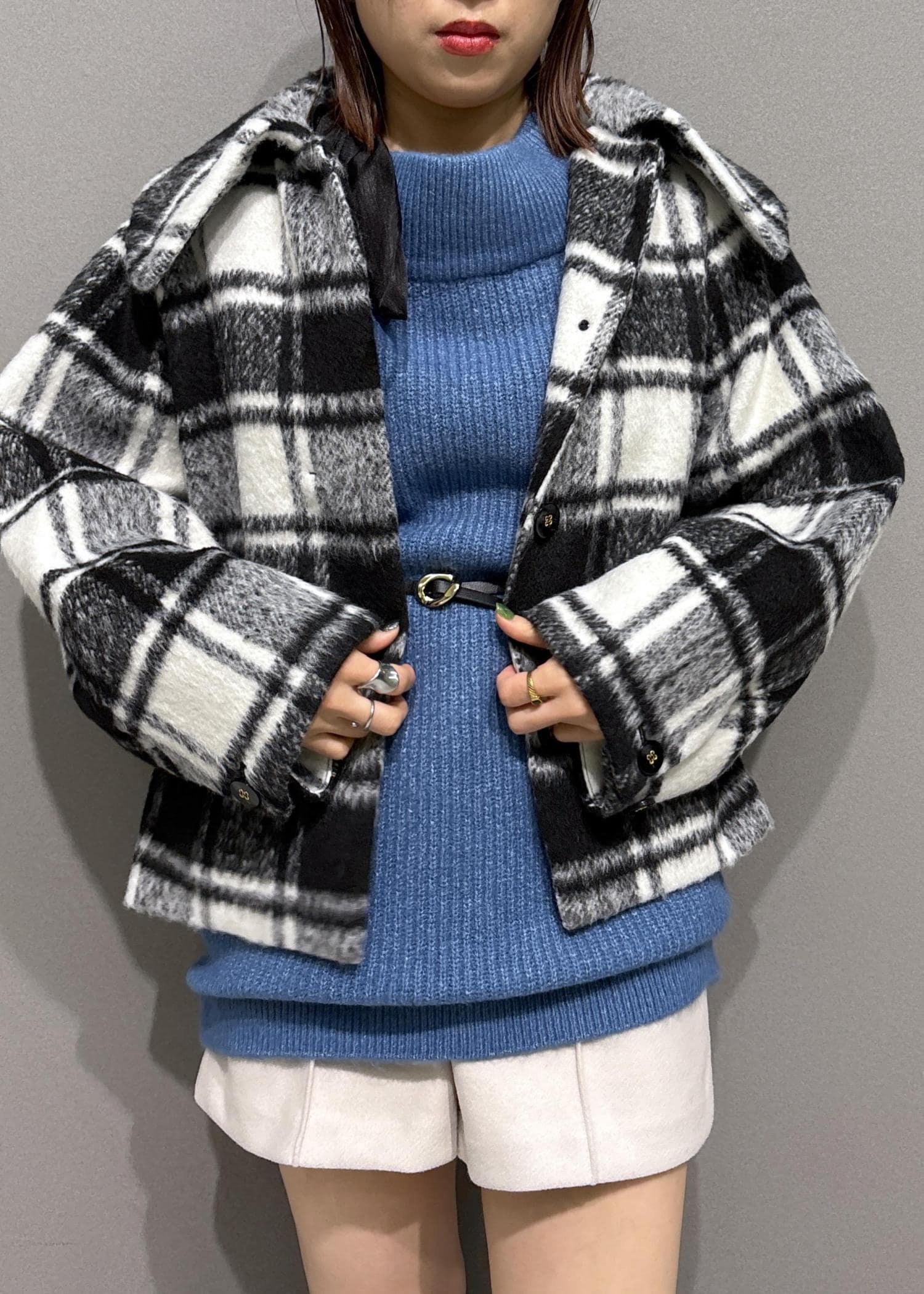 アウターは大判チェックで存在感◎