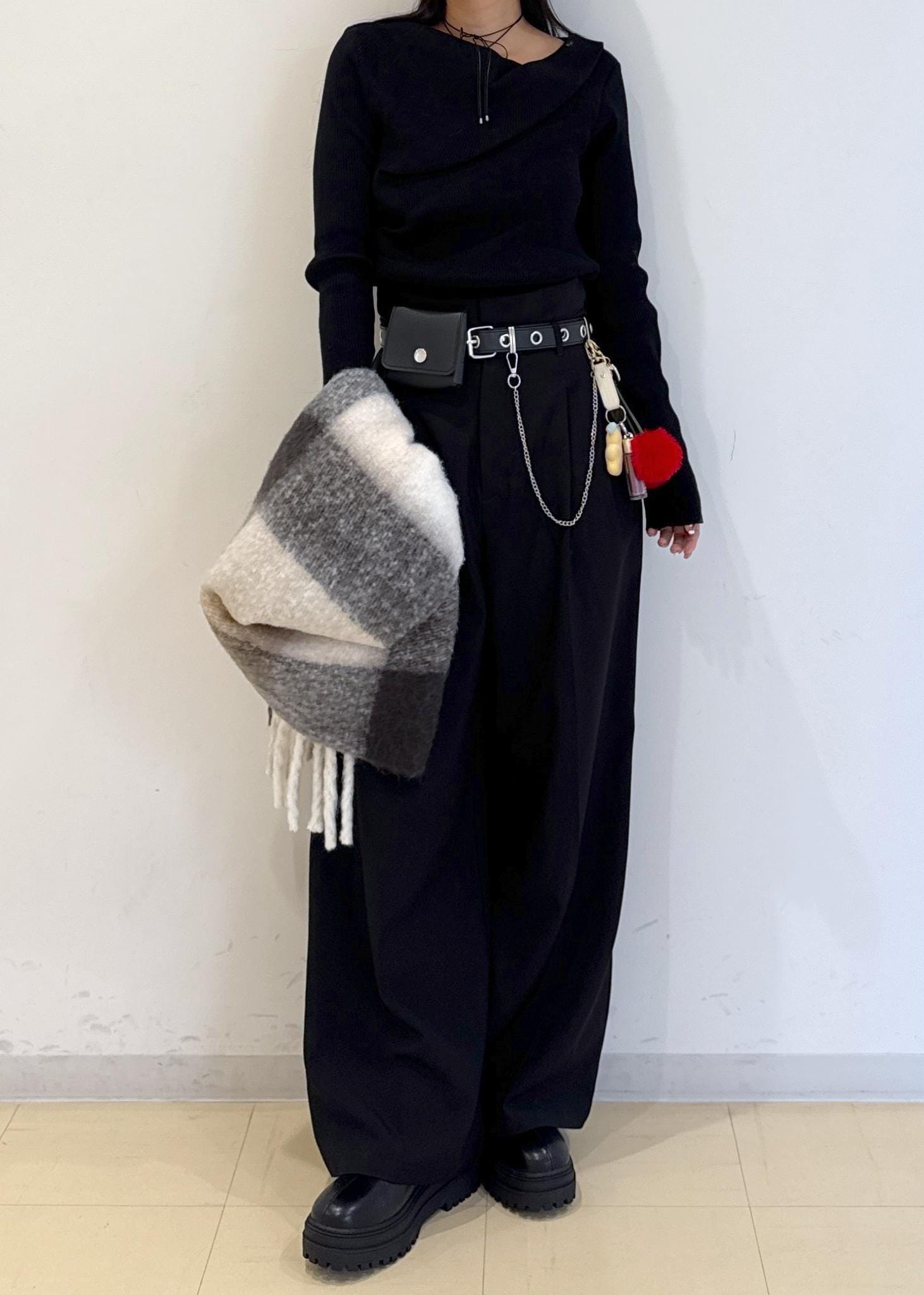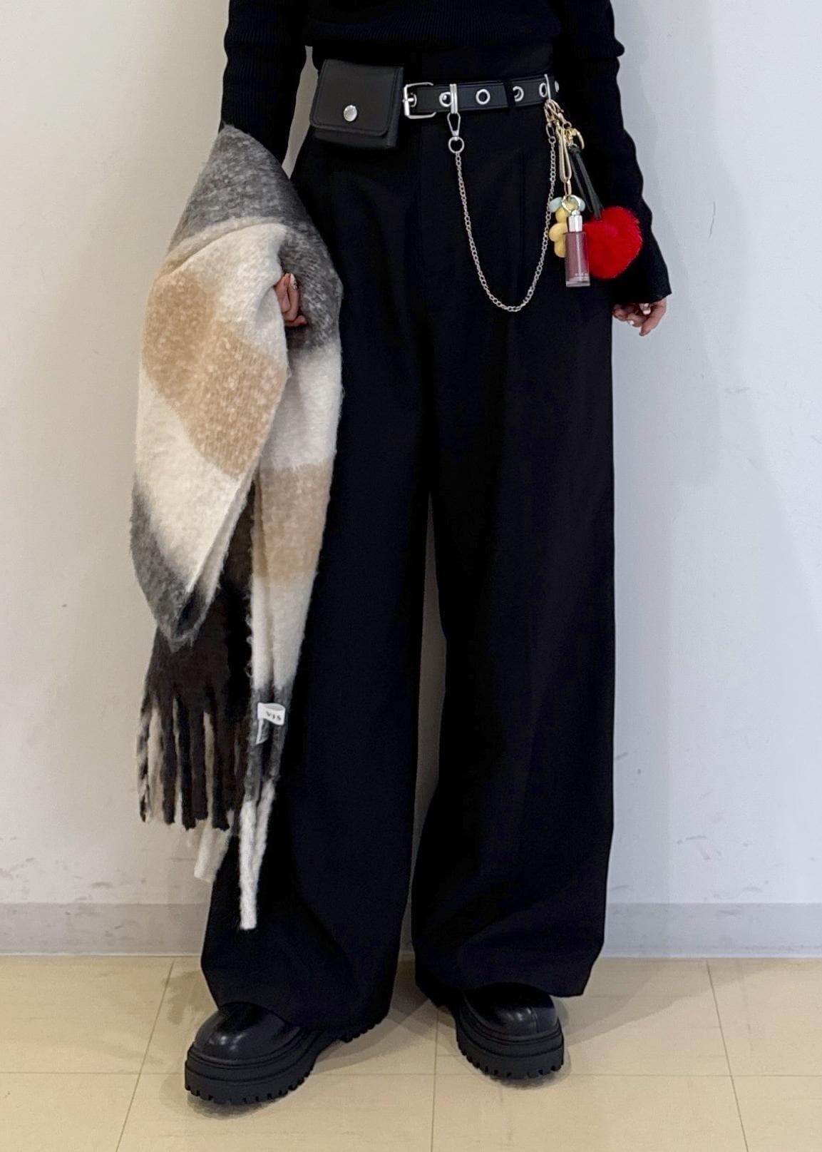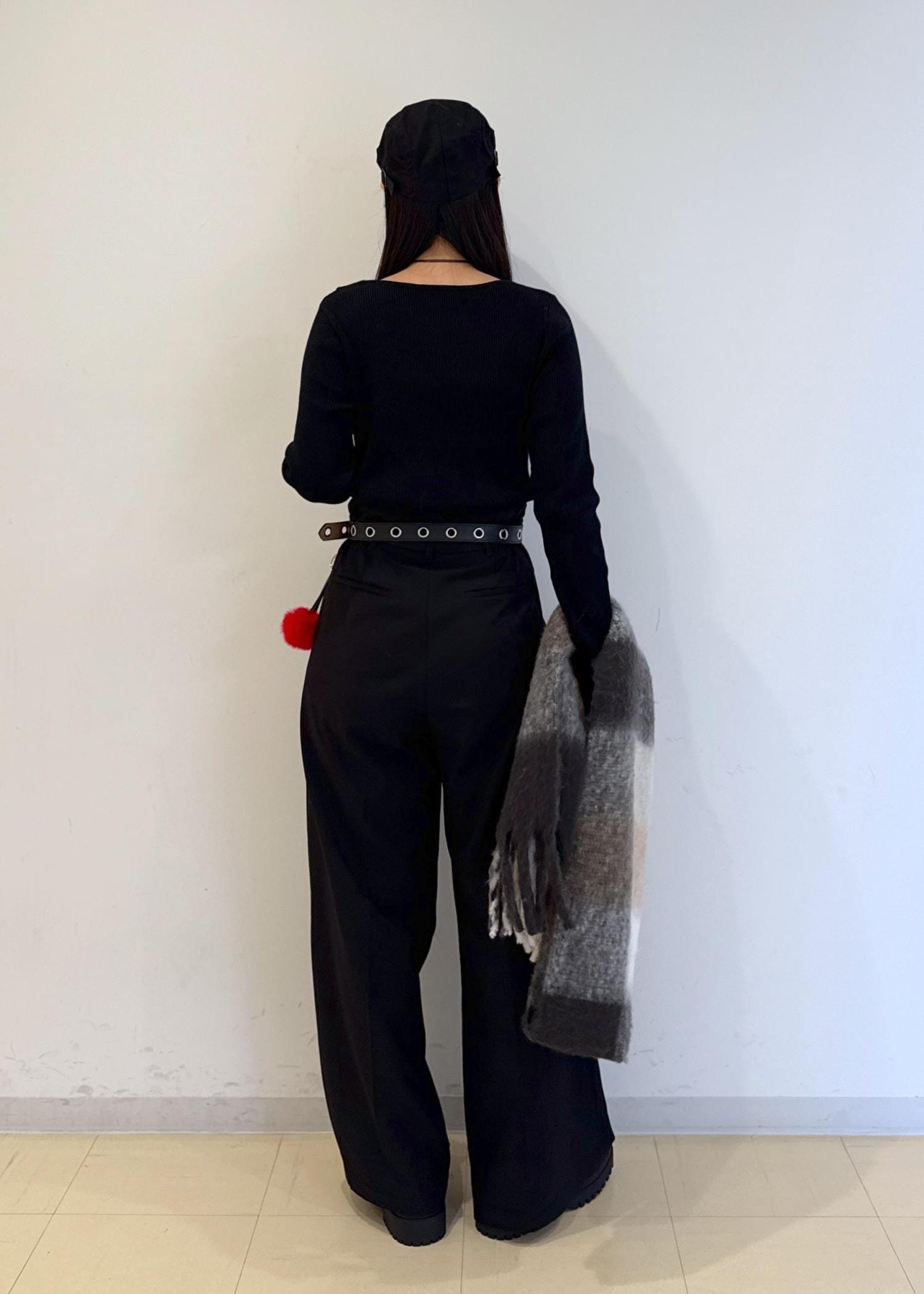 VISベルトディテールタックワイドパンツ/イージーケアブラック / M¥6,589レビュー下にストンと落ちる生地なので、足が真っ直ぐ見えます。更にハイウエストで、脚長効果もしっかり◎とにかく動きやすくて履きやすくてシルエットが綺麗な神パンツです。ハイウエストでインをすると、バランス調整が少し難しいので、コンパクトめなトップスと合わせることをオススメします