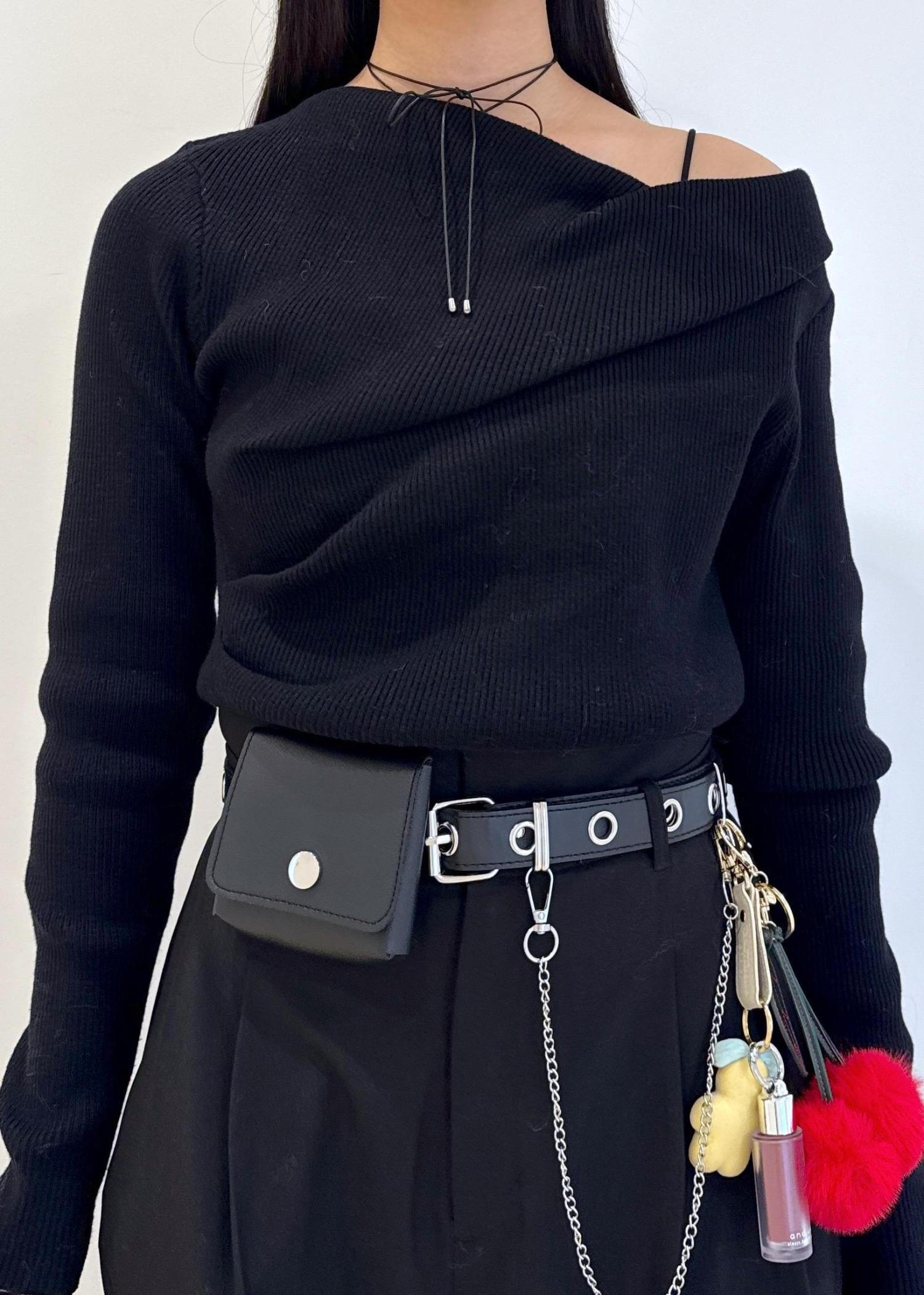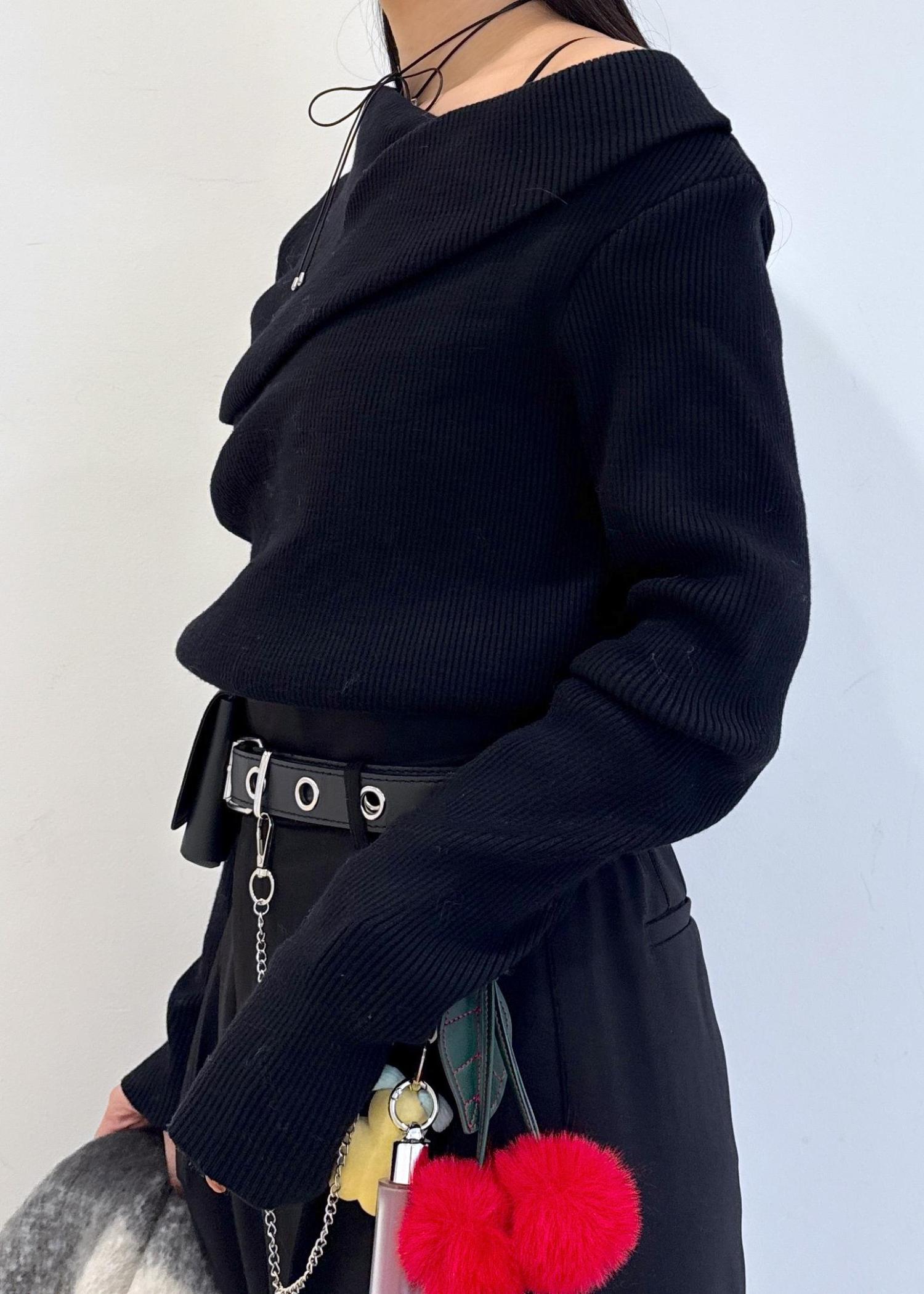 VISもちもちドレープリブニットトップス/イージーケアブラック / F¥4,389レビュー片方オフショルにしても着れるリブニット生地のトップスです。モチモチの生地なので肌触り◎