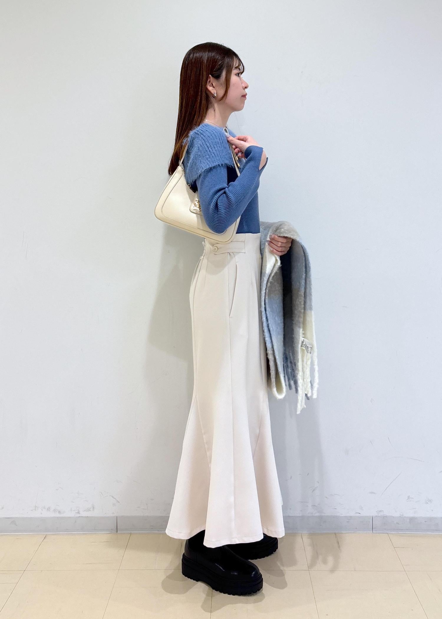 VIS美easyウーリッシュマーメイドスカート/セットアップ対応・イージーケアオフホワイト / M¥6,589レビュー163cmでMサイズ着用。ウエストに少し余裕がありますが、サイドのボタンで調節が可能です!