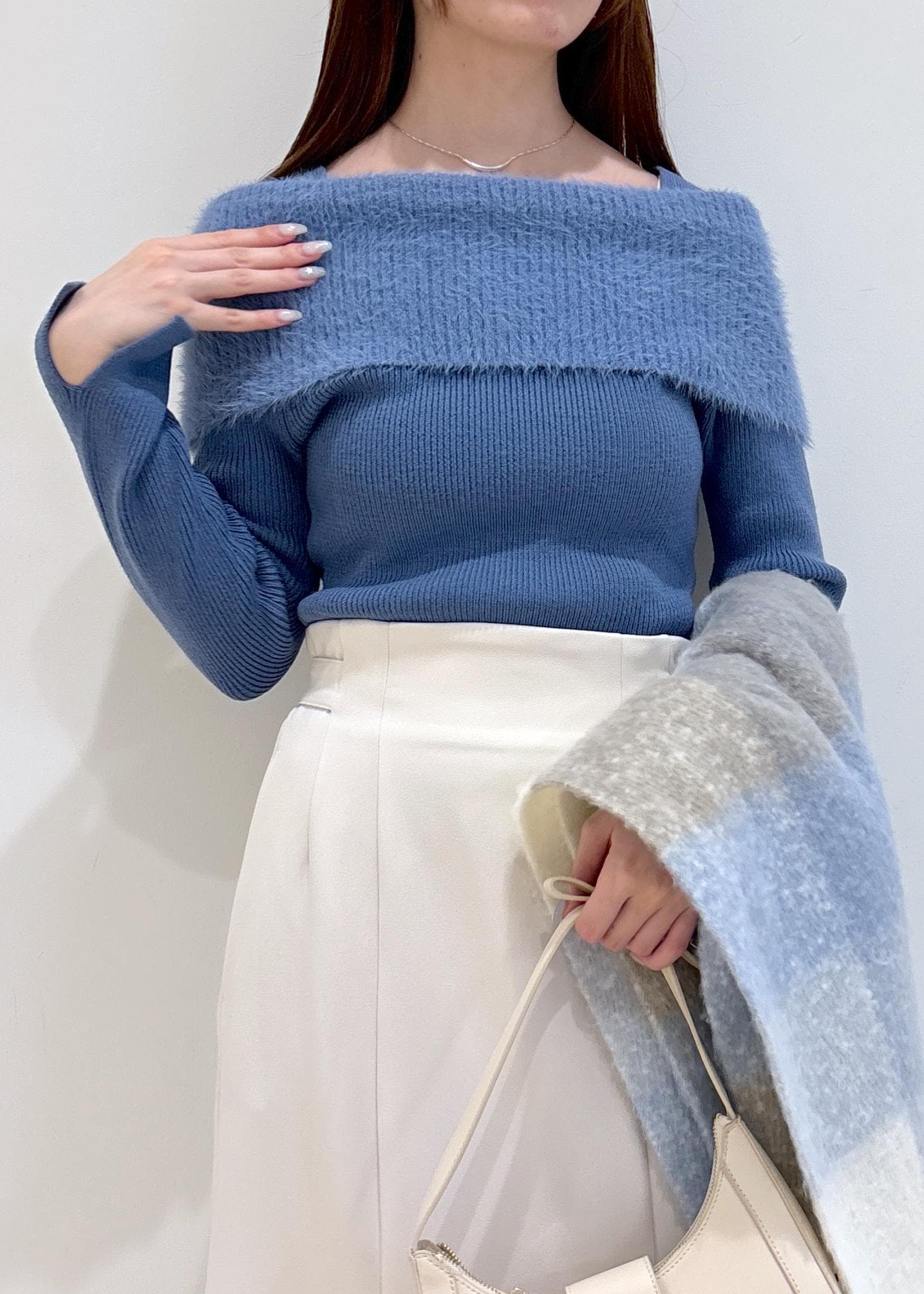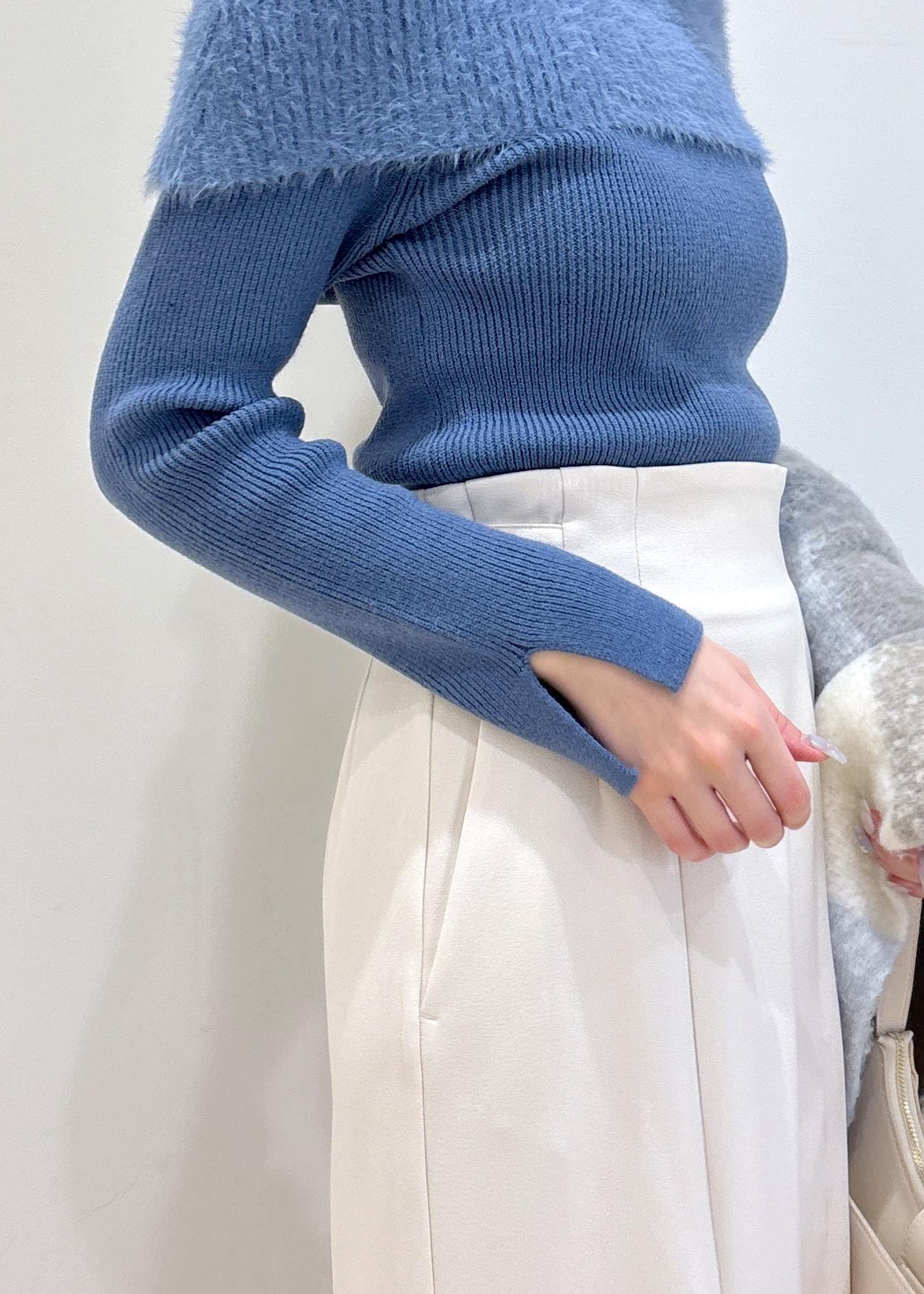 VISフェザーヤーンオフショルもちもちリブニット/イージーケアブルー系 / F¥5,929レビューふんわり柔らかく着心地の良い素材感です。