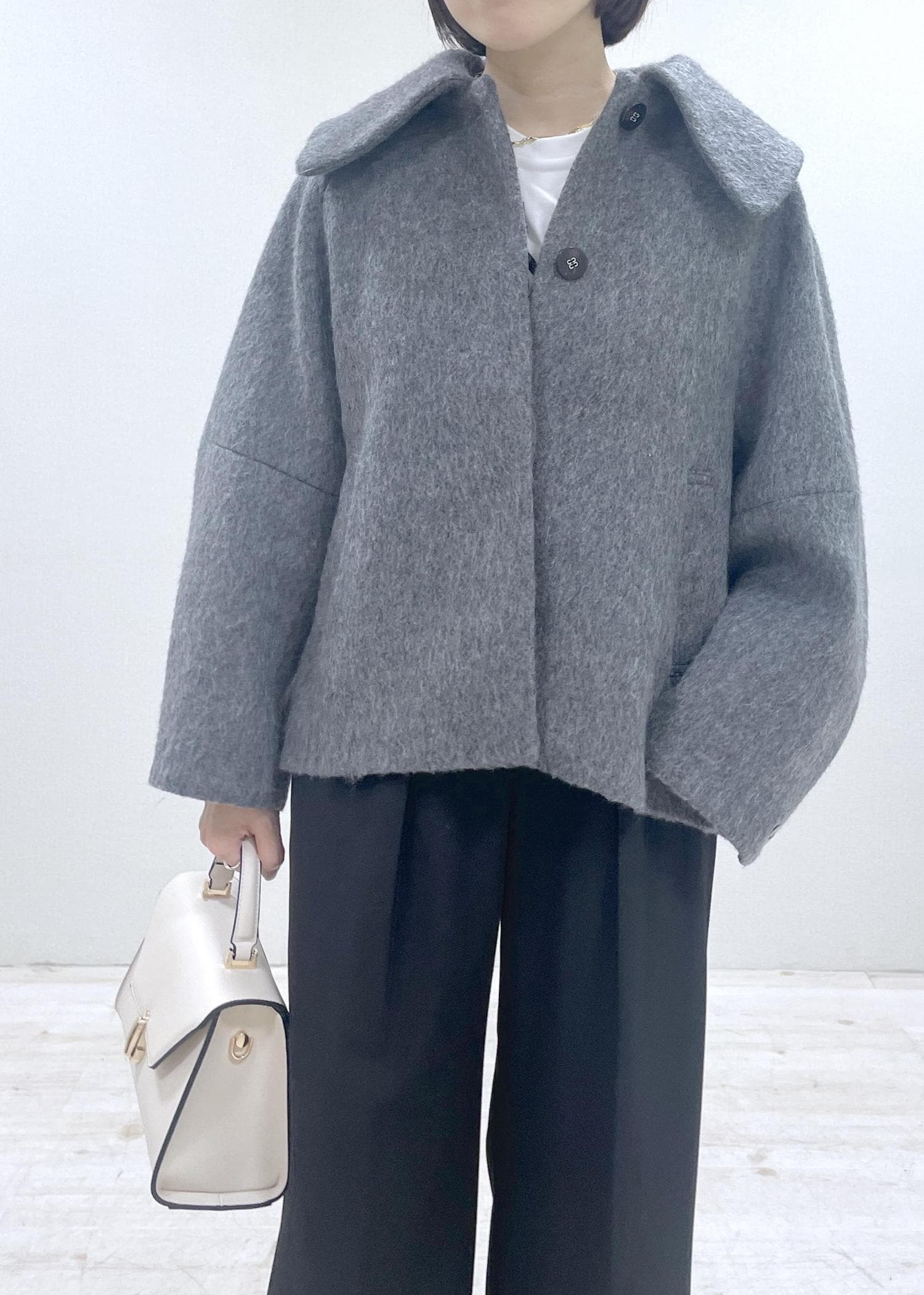 予約VIS【アウター総選挙1位】ビッグカラーモモンガシャギーショートコートグレー / M¥10,989レビュー全体的にオーバーサイズで、アームもかなりゆとりがあるので厚手のニットやスウェットの上からでも楽々着られます。