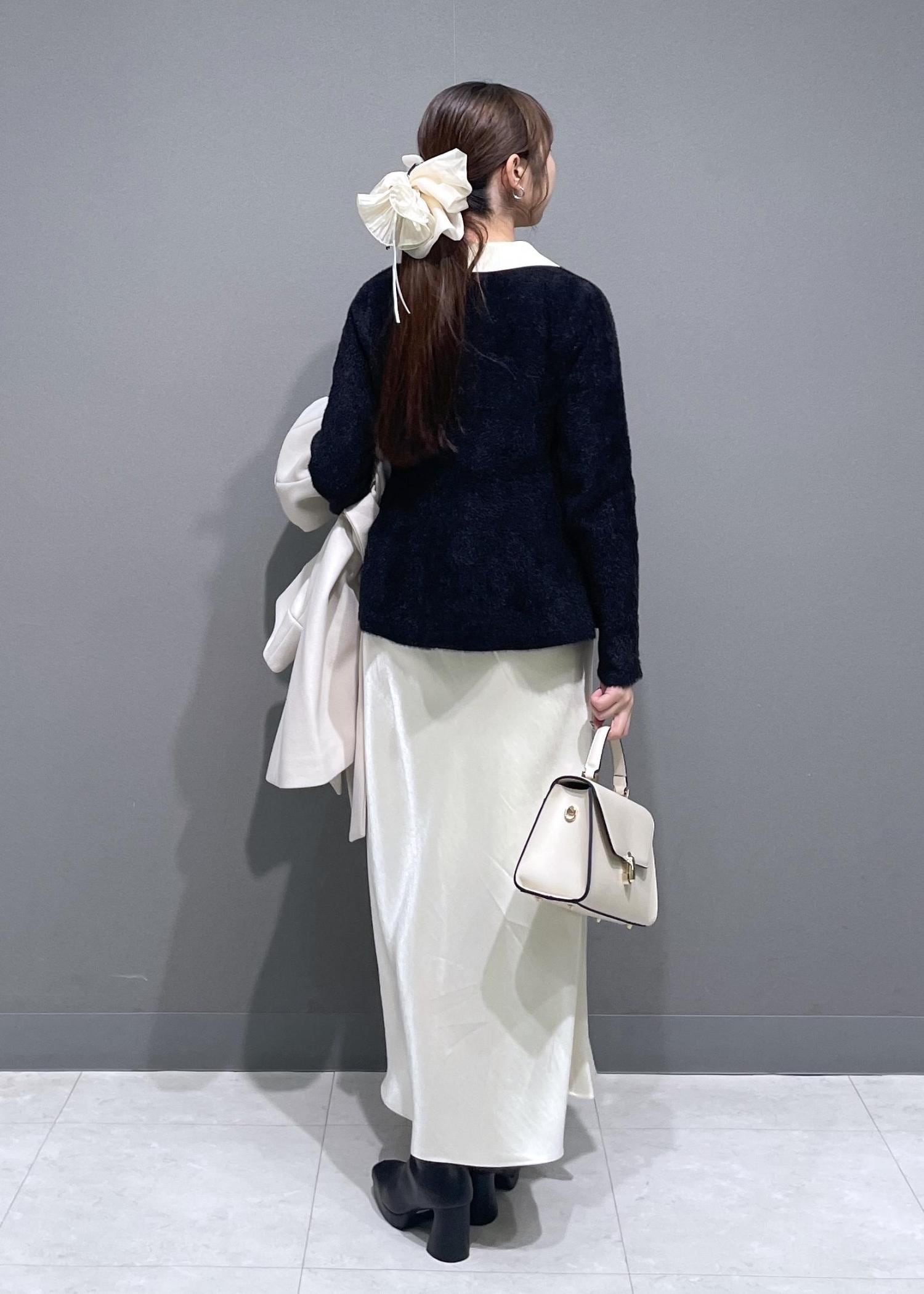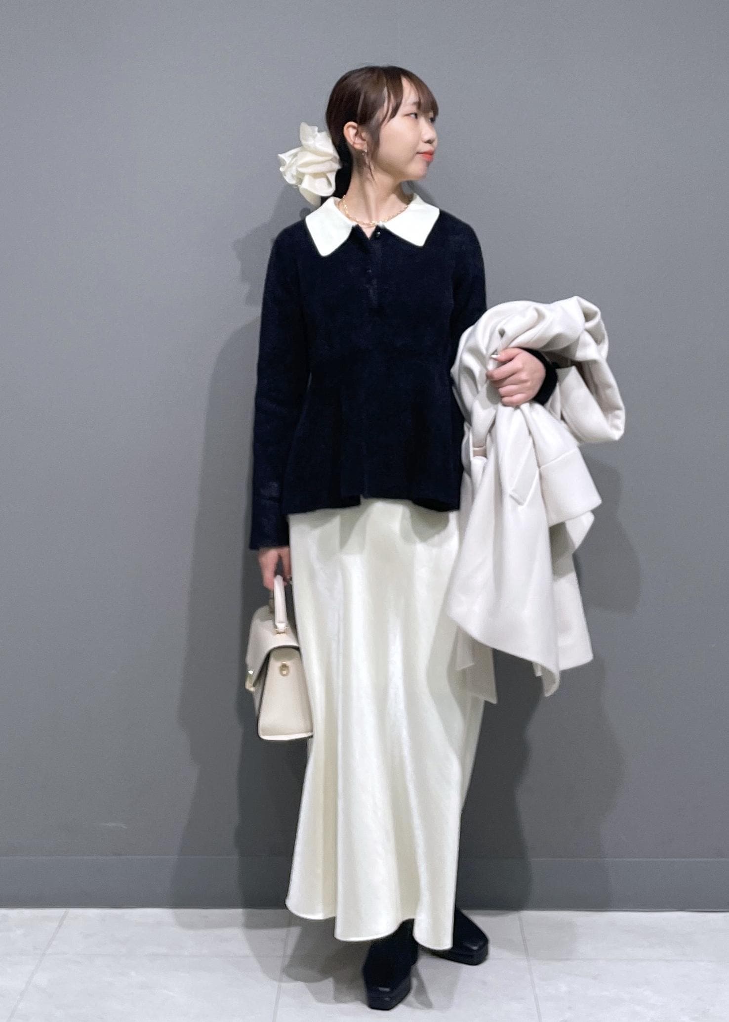 スッキリとしたデザインのフレアスカートなので、広がりすぎず、ニットなど大きめのトップスと合わせてもバランスが取りやすいです -