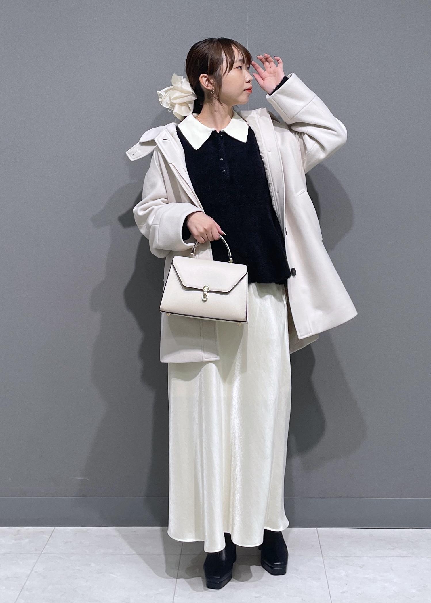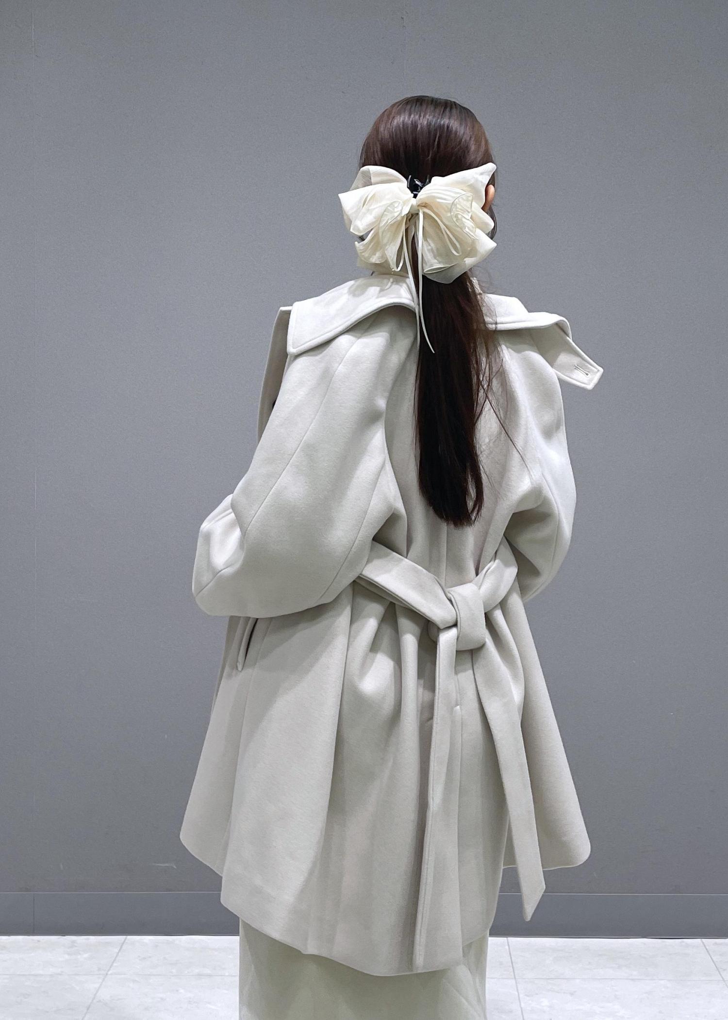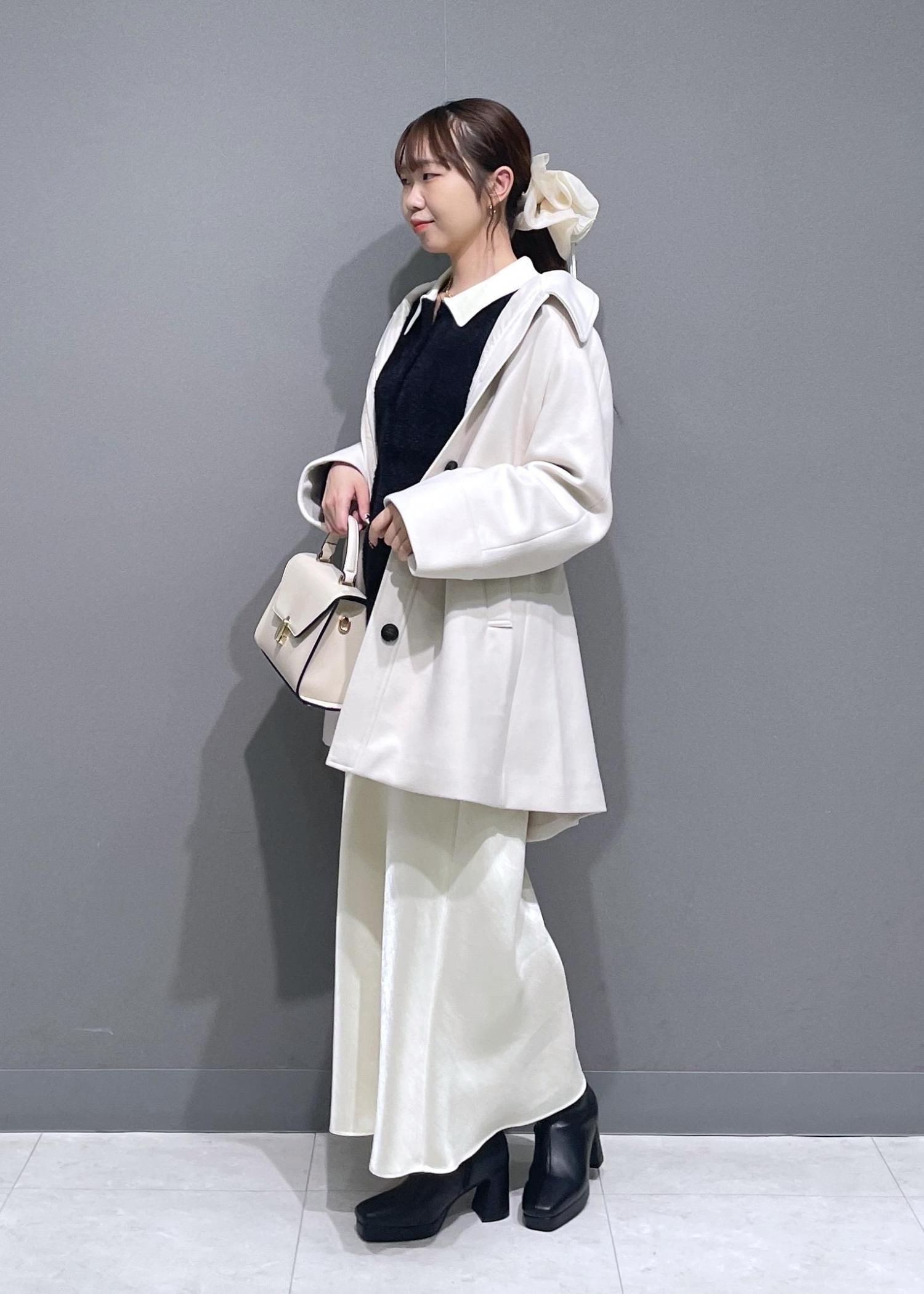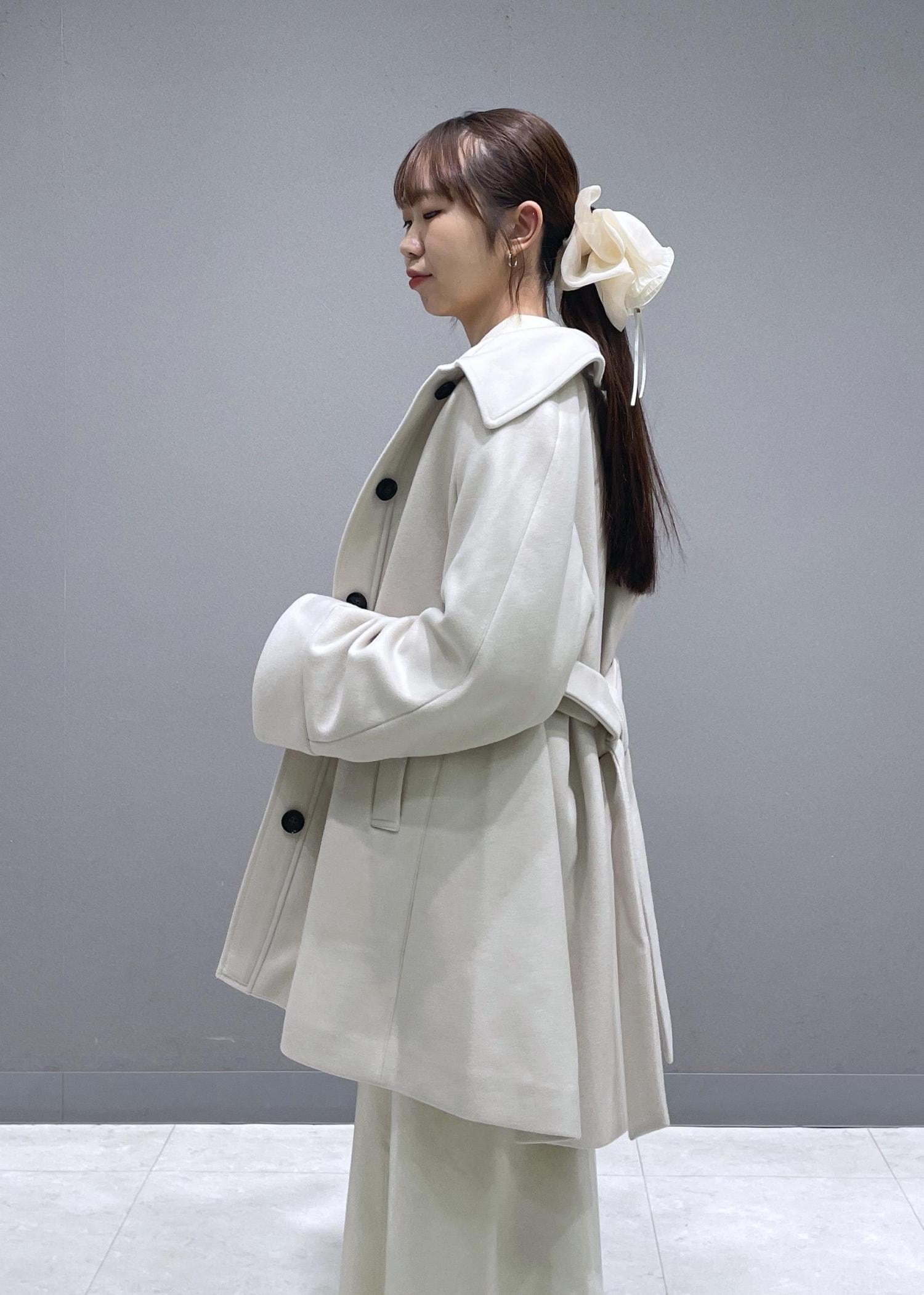 女性らしいシルエットで、スタンドカラーにして使っていただくことも可能です。
