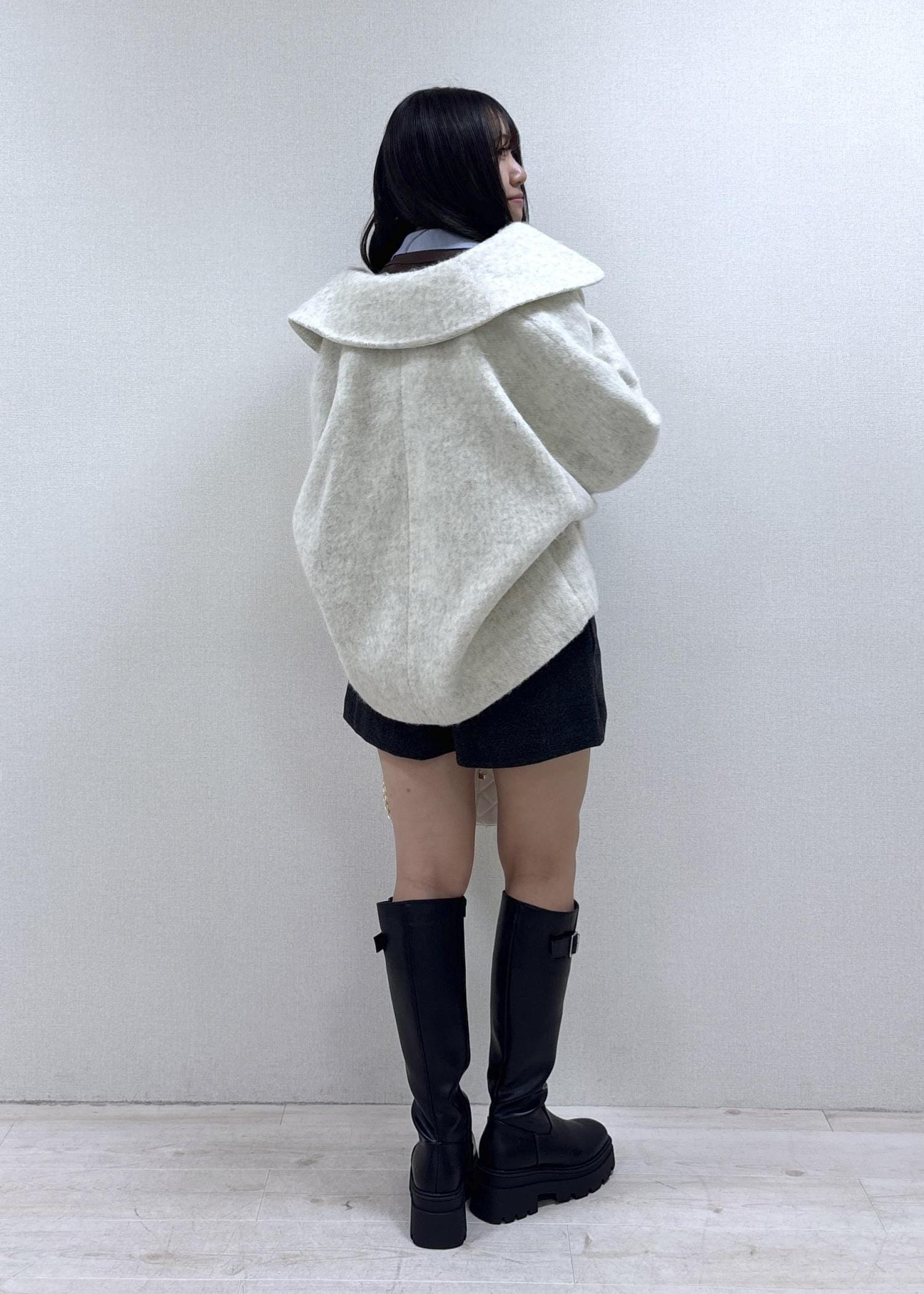 予約VIS【アウター総選挙1位】ビッグカラーモモンガシャギーショートコートオフホワイト / M¥10,989レビューアウター総選挙No.1のアイテムです!ビックカラーがポイントで、着用したときのシルエットも可愛らしいです!ゆったりしているので中にニットなどを着ていても羽織っていただけます!