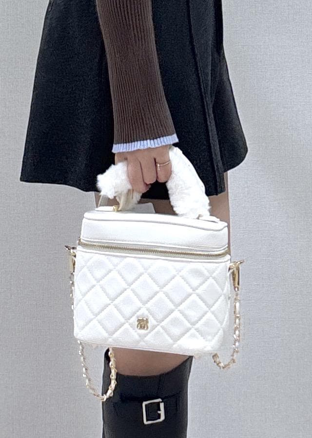 VISファーハンドルキルティング&ツイードバニティバッグ/2WAYオフホワイト / F¥7,909レビューファスナーで取り外しができるファーハンドルが冬らしさ全開のアイテムです!ショルダーと手持ちの2way仕様になっています!