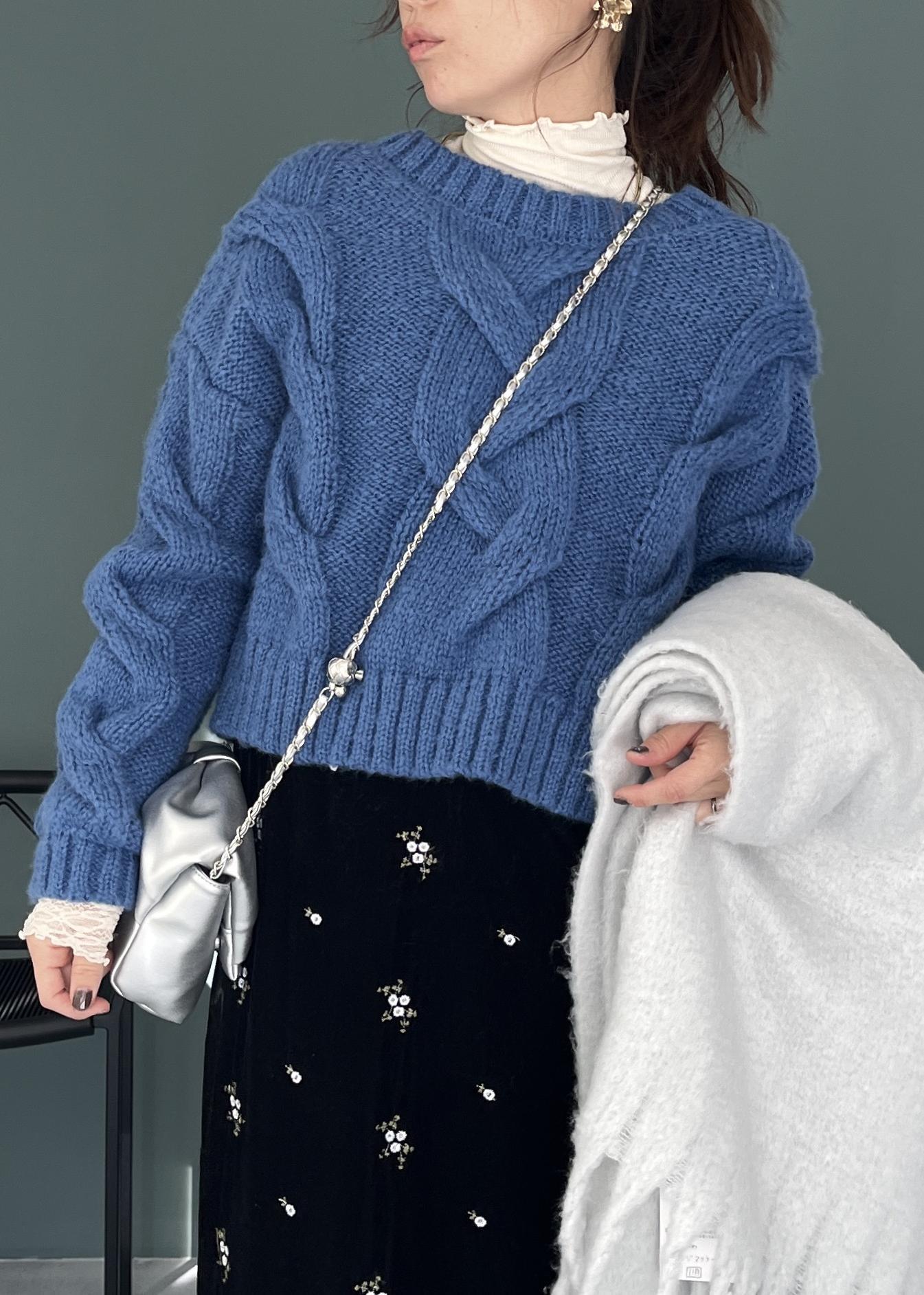 VISケーブルコンパクトニットブルー / F¥5,929レビュー152cmでFサイズ着用し、着丈は腰に少しかかるくらいの丈。ケーブル編みのニットはほっこりしてしまうので苦手でしたが、長すぎないコンパクト丈とサイズ感が◎首周りも詰まりすぎることなくすっきり見えしてくれました。鮮やかなカラーに一目惚れです。とっても柔らかい素材感で着心地よく、肌がチクチクすることもありませんでした。