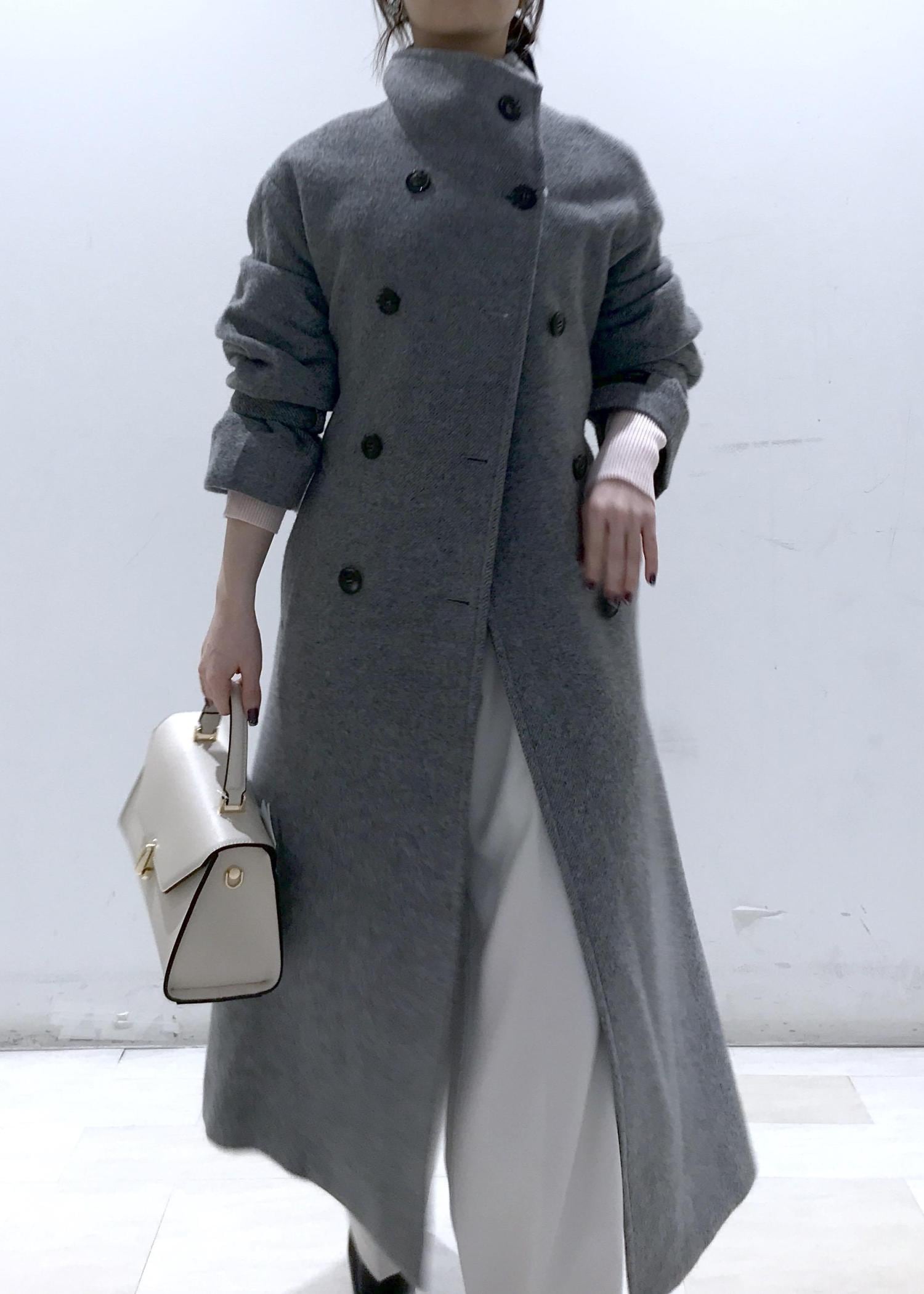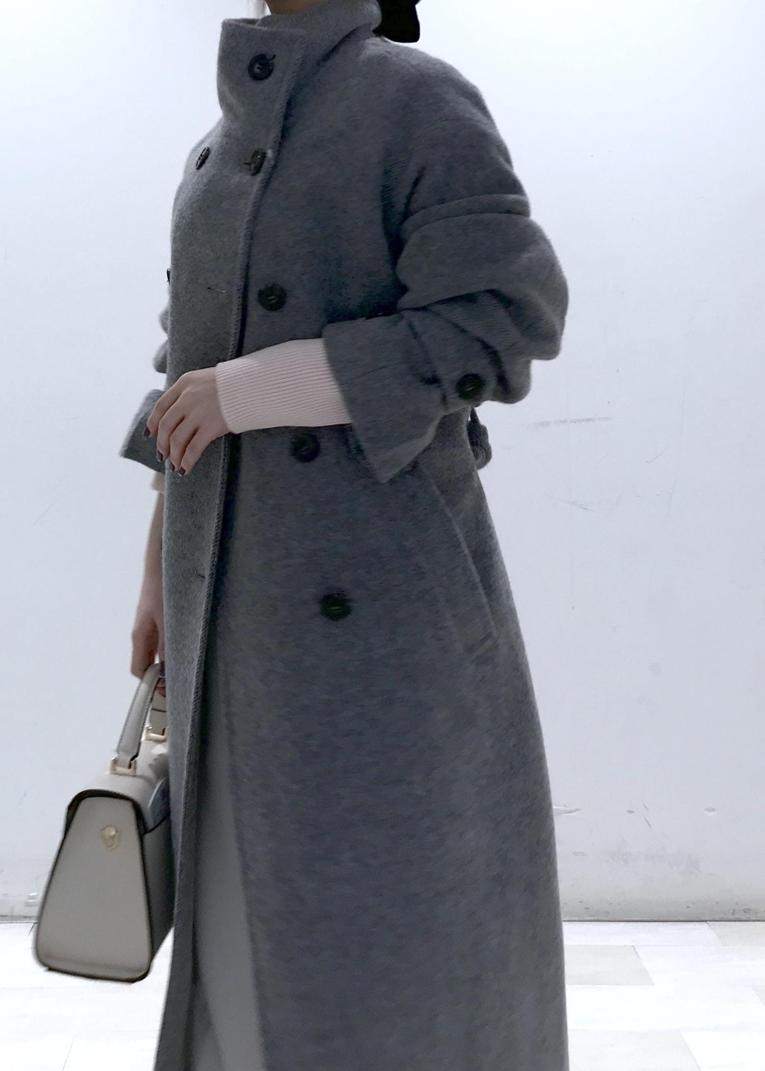 VIS尾州シャギースタンドカラーロングコート/静電気防止・WEB限定PS・TMサイズグレー系 / S¥21,890レビュー150cmでSサイズを着用して、ふくらはぎが半分隠れる丈でした。