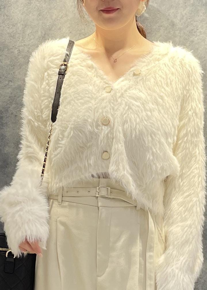 VISラビットファーVネックカーディガン/イージーケア・WEB限定カラーオフホワイト / F¥5,929レビューオフホワイトをリアルバイしました!