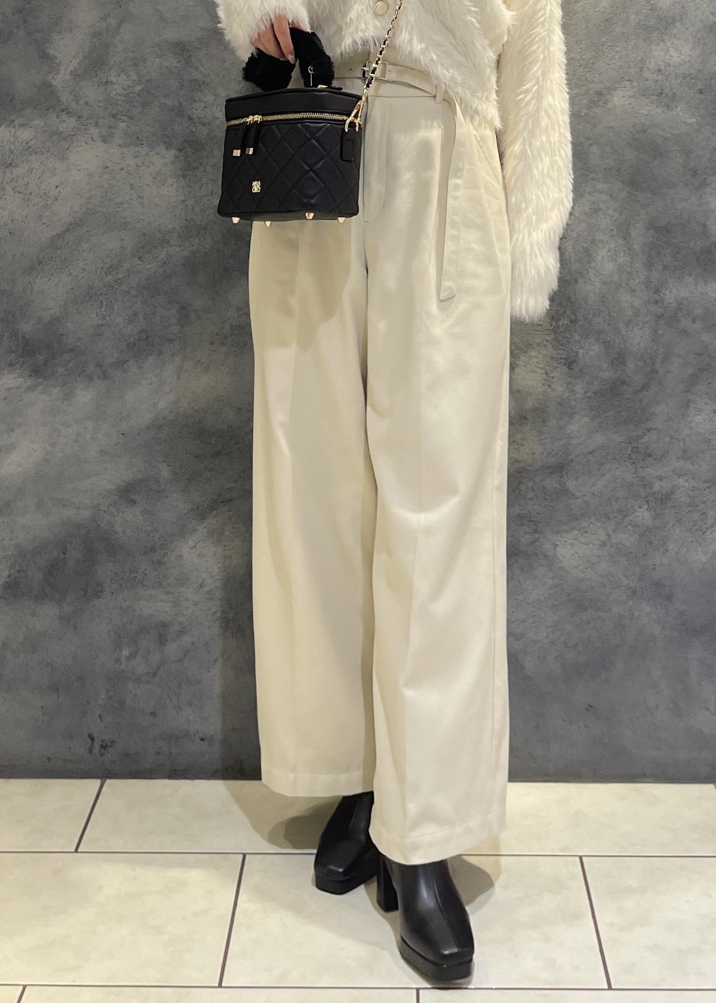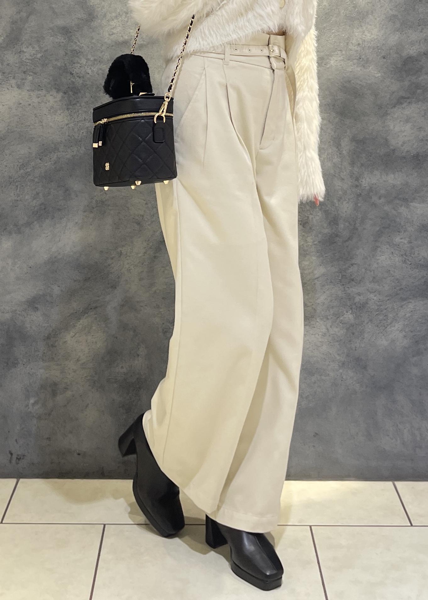VIS起毛ウールライク版ベルトディテールタックワイドパンツキナリ / M¥6,589レビュー166センチMサイズ着用で、