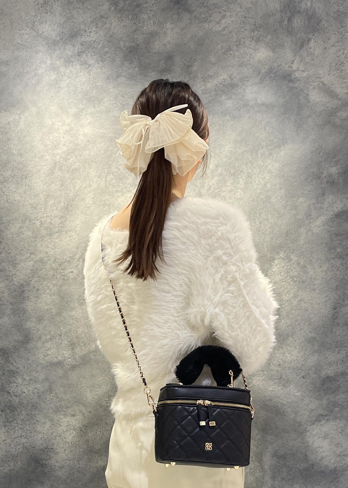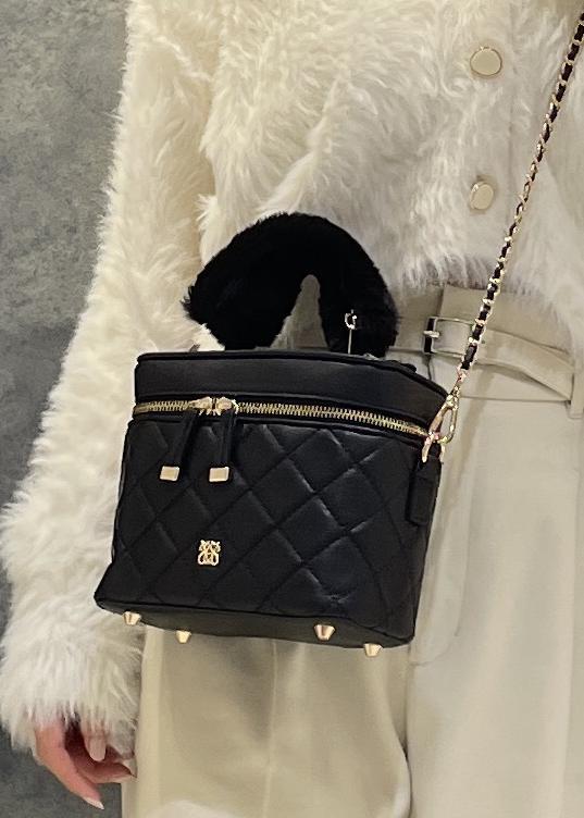 VISファーハンドルキルティング&ツイードバニティバッグ/2WAYブラック / F¥7,909レビューしっかりとした生地で型崩れしにくく