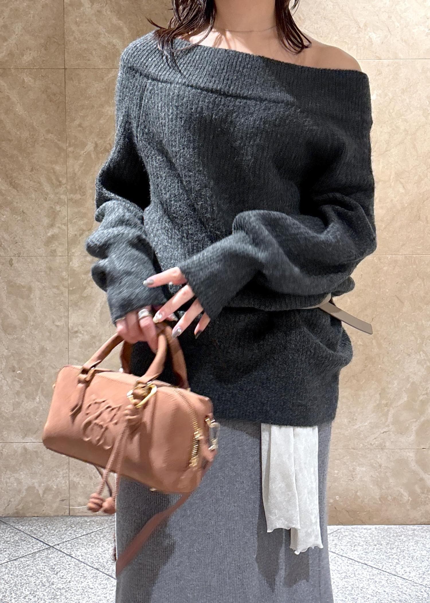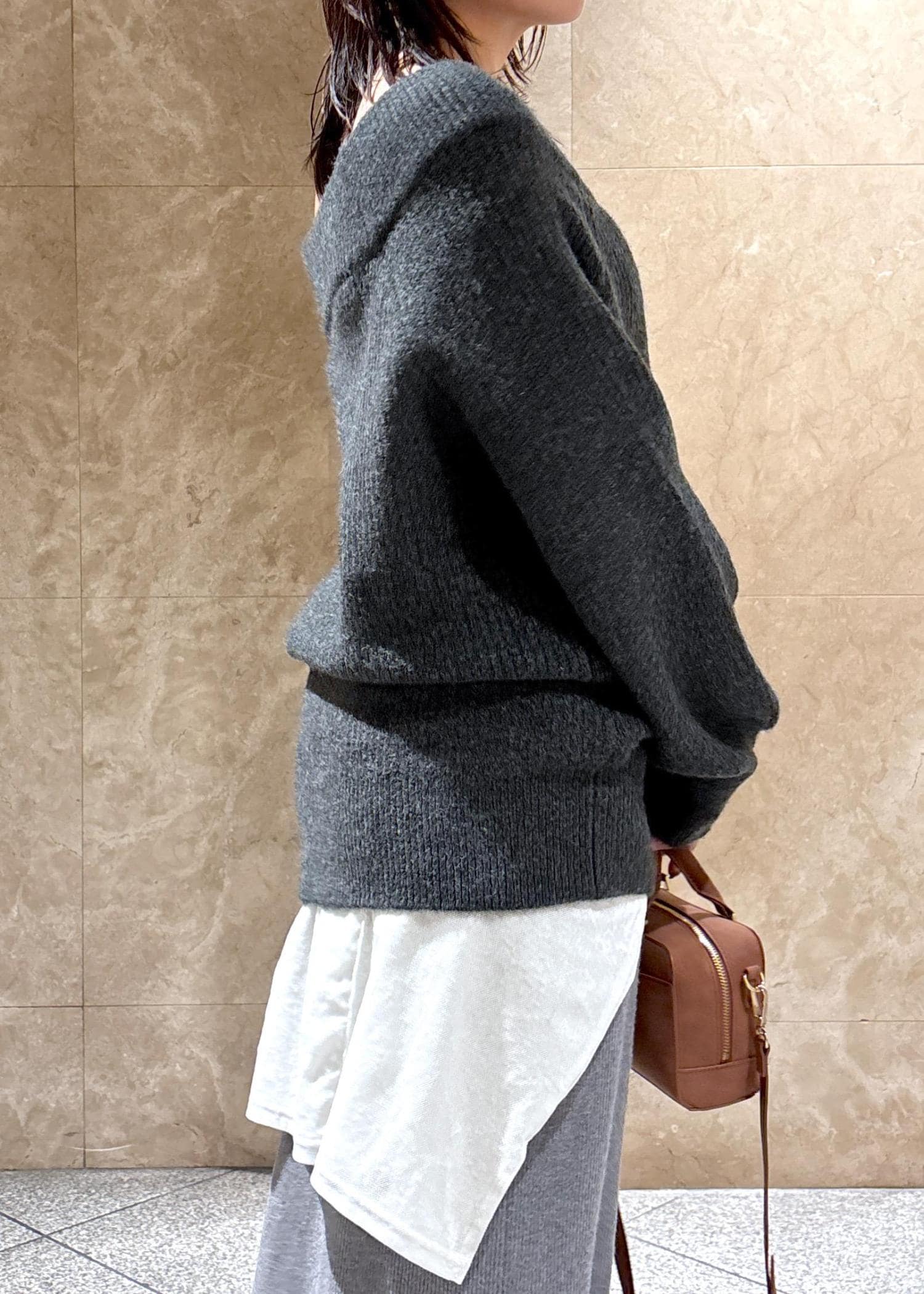 VIS肩リボンミニ丈ニットワンピース/2WAYグレー / F¥7,909レビューワンピースとして着ても短すぎず、袖丈もみじかくならずにゆるっと着用できるのが嬉しい✨