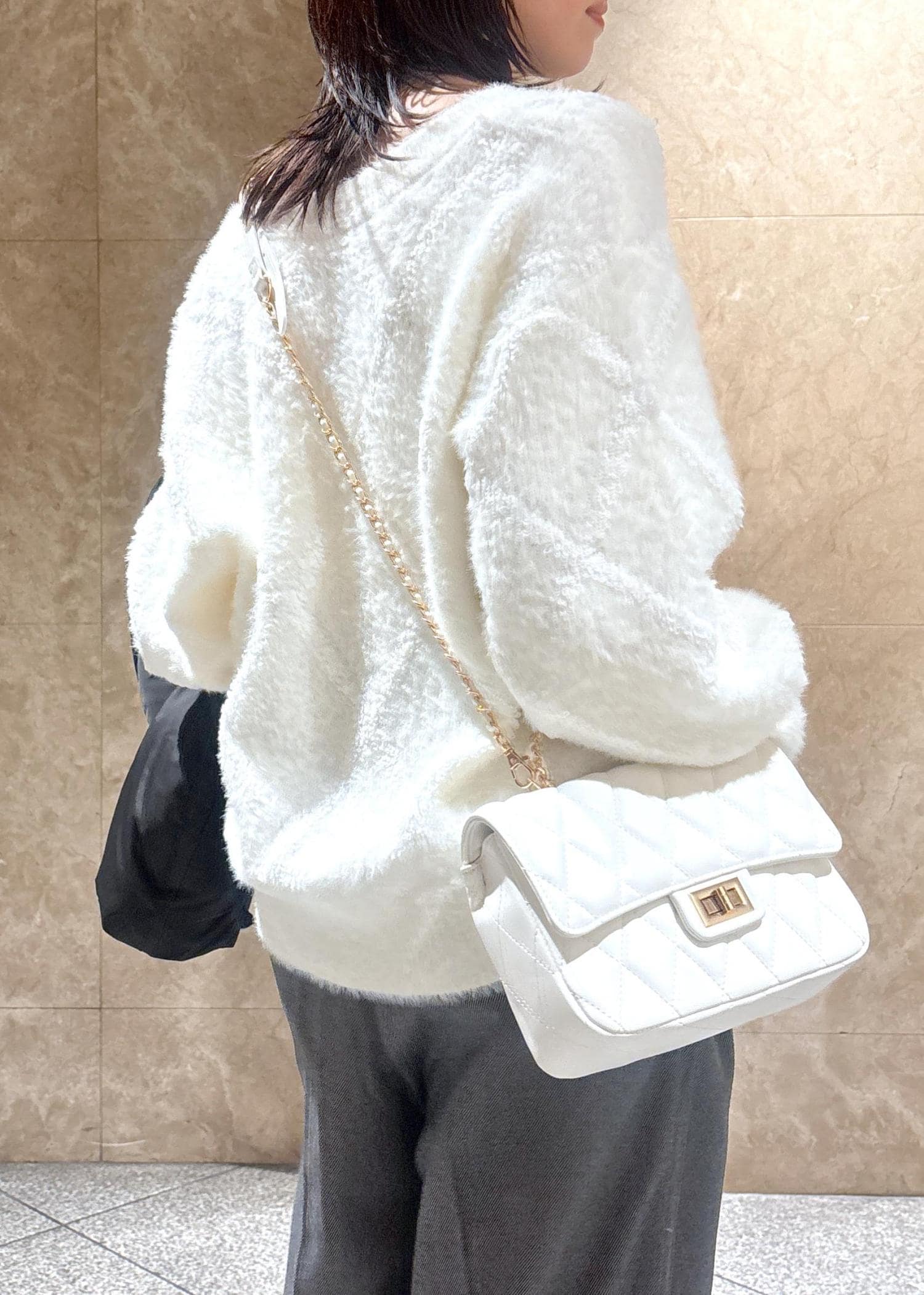 VISチェーンハンドルキルティングショルダーバッグ/2WAY・一部WEB限定カラーオフホワイト / F¥6,919レビューショルダーチェーンの肩にあたる部分だけフラットな合皮素材なので、肩掛けした時も痛くないのがとても親切なデザインのバッグです✨
