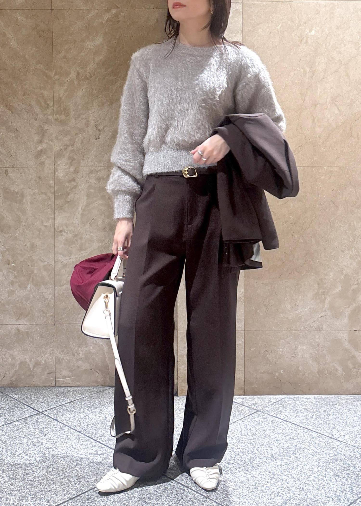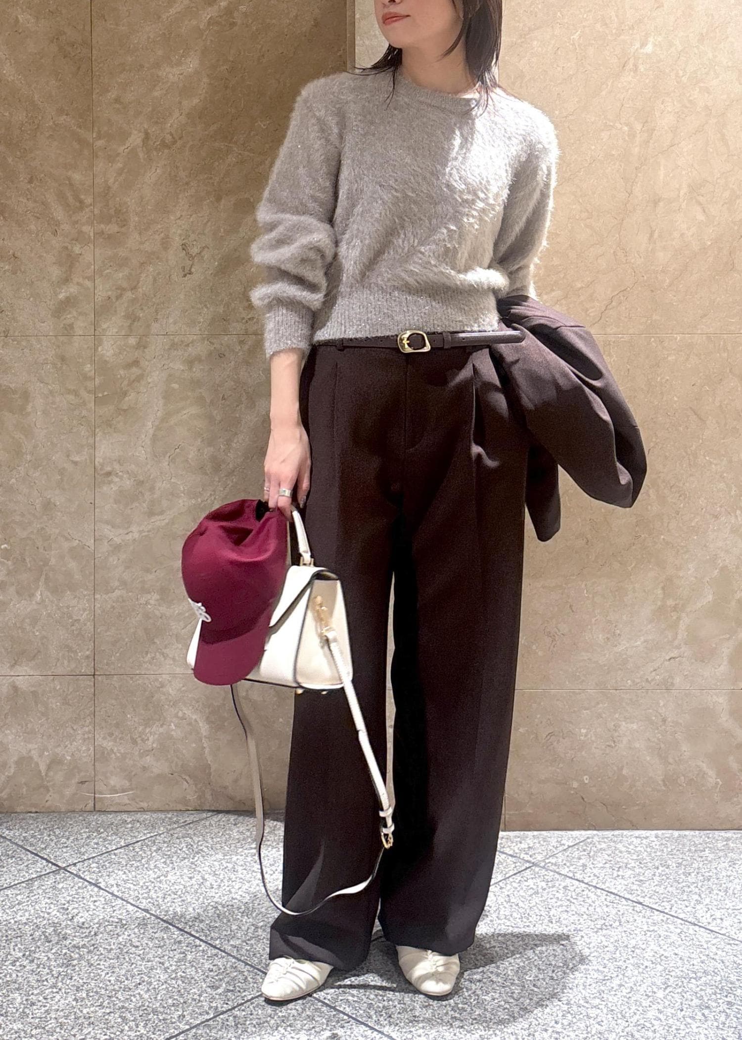 シルバーのキラキラした素材が混ざっていて、ベージュのくすみカラーも顔まわりがパッと明るく見えてチャレンジしやすかったです。 -