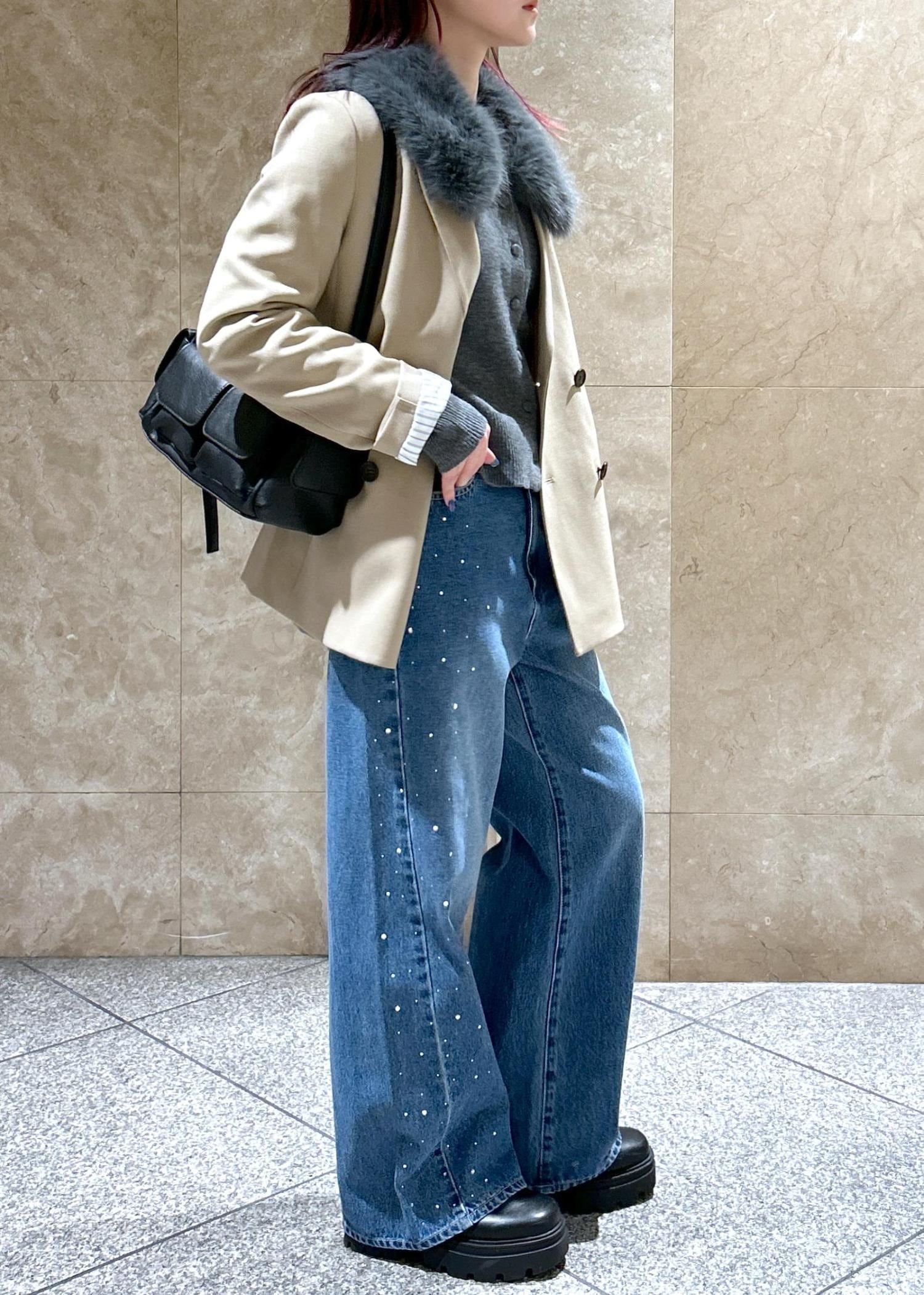 ストレートシルエットで、デニムですがカジュアルになりすぎずキレイ見えも◎ -