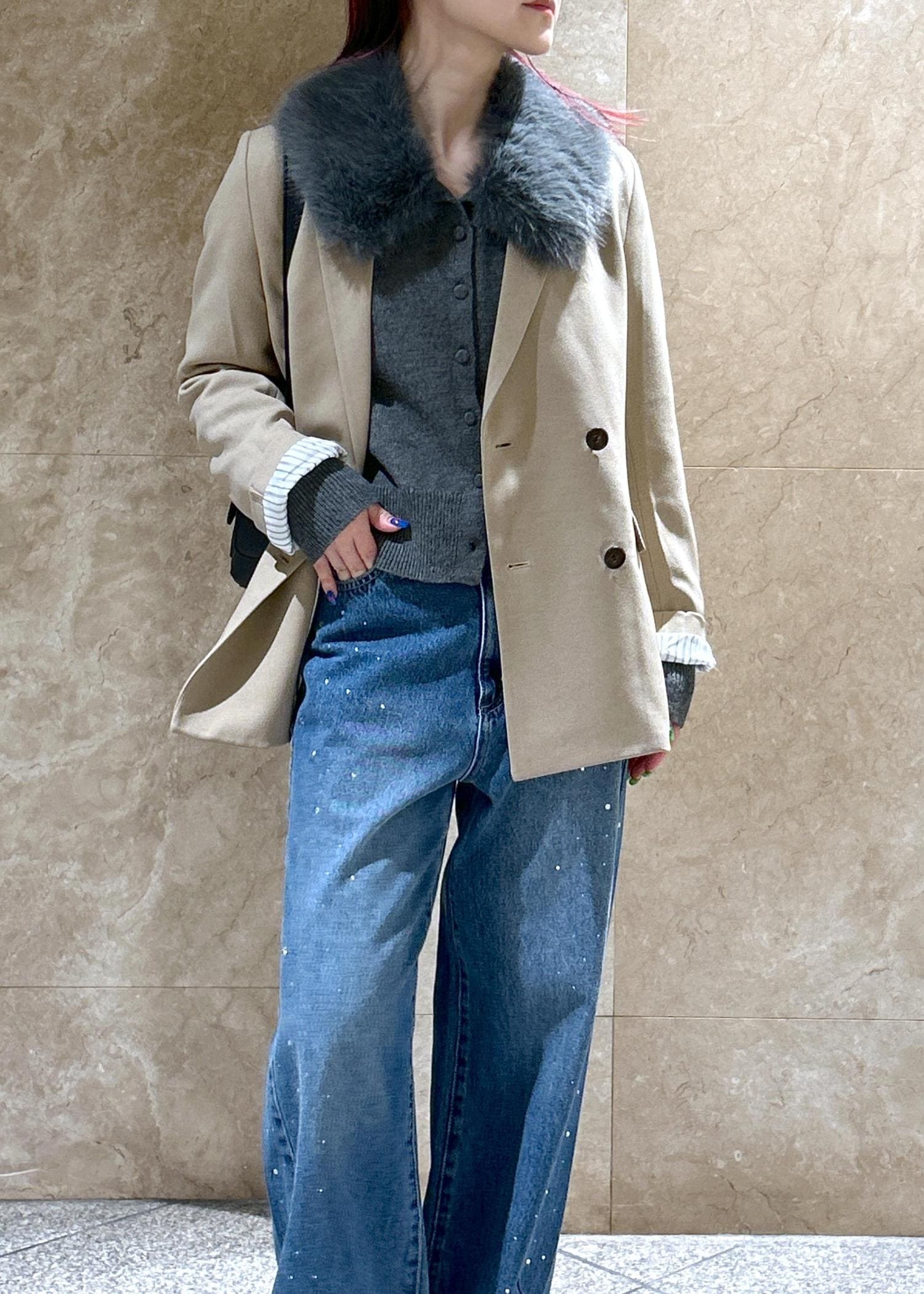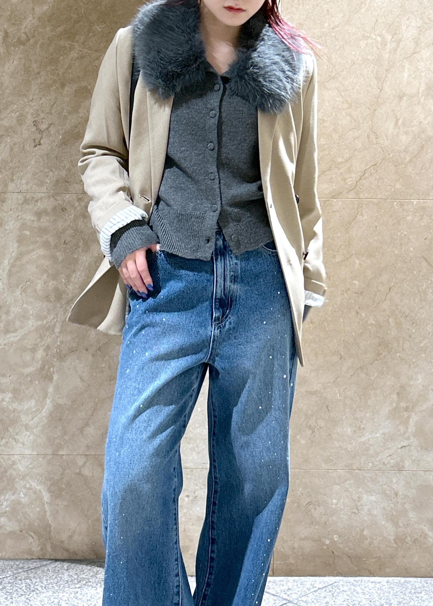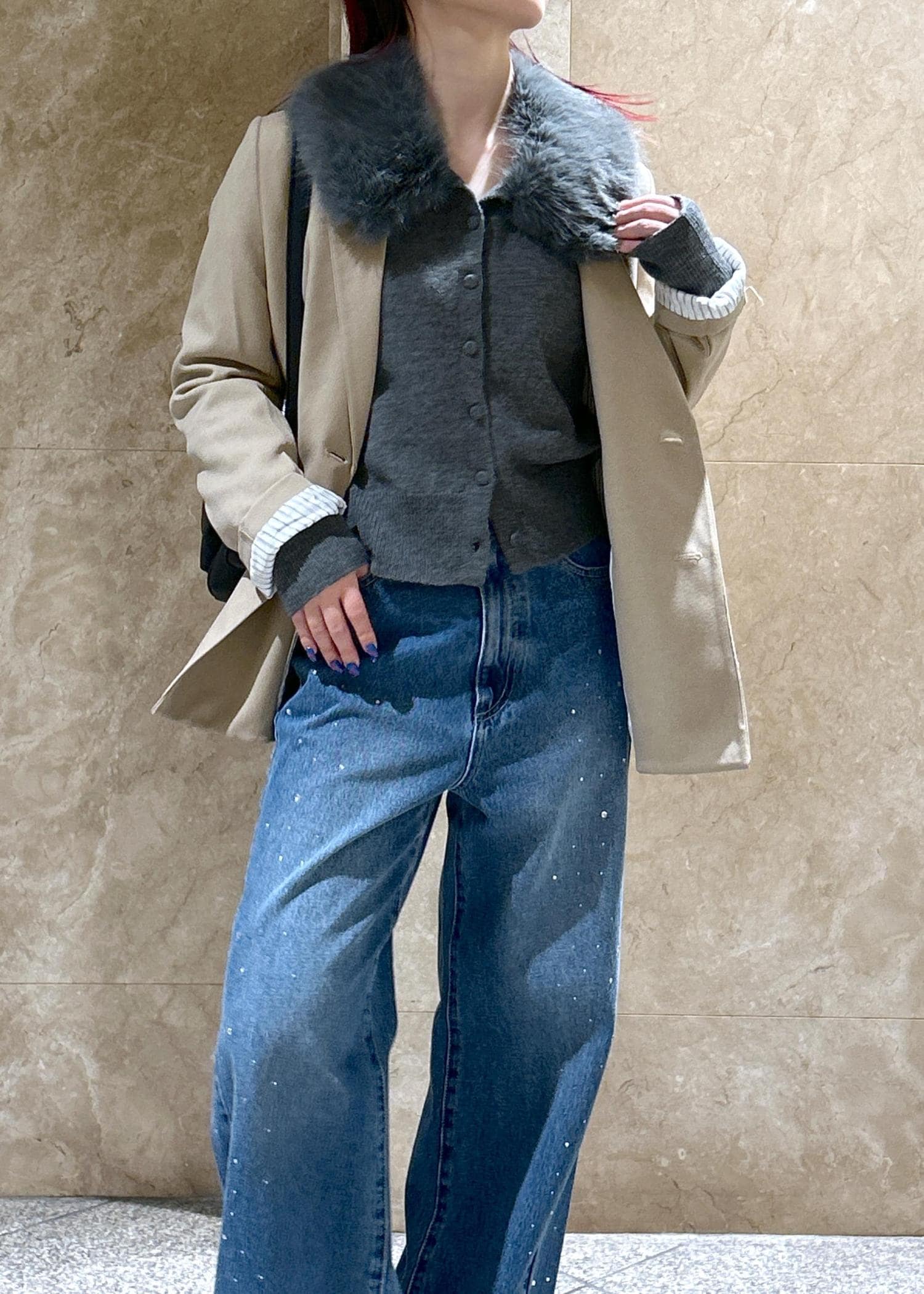 VIS衿ファー取り外しカーディガングレー / F¥6,589レビュー襟のフワフワが気持ち良くて暖かいカーディガンです!