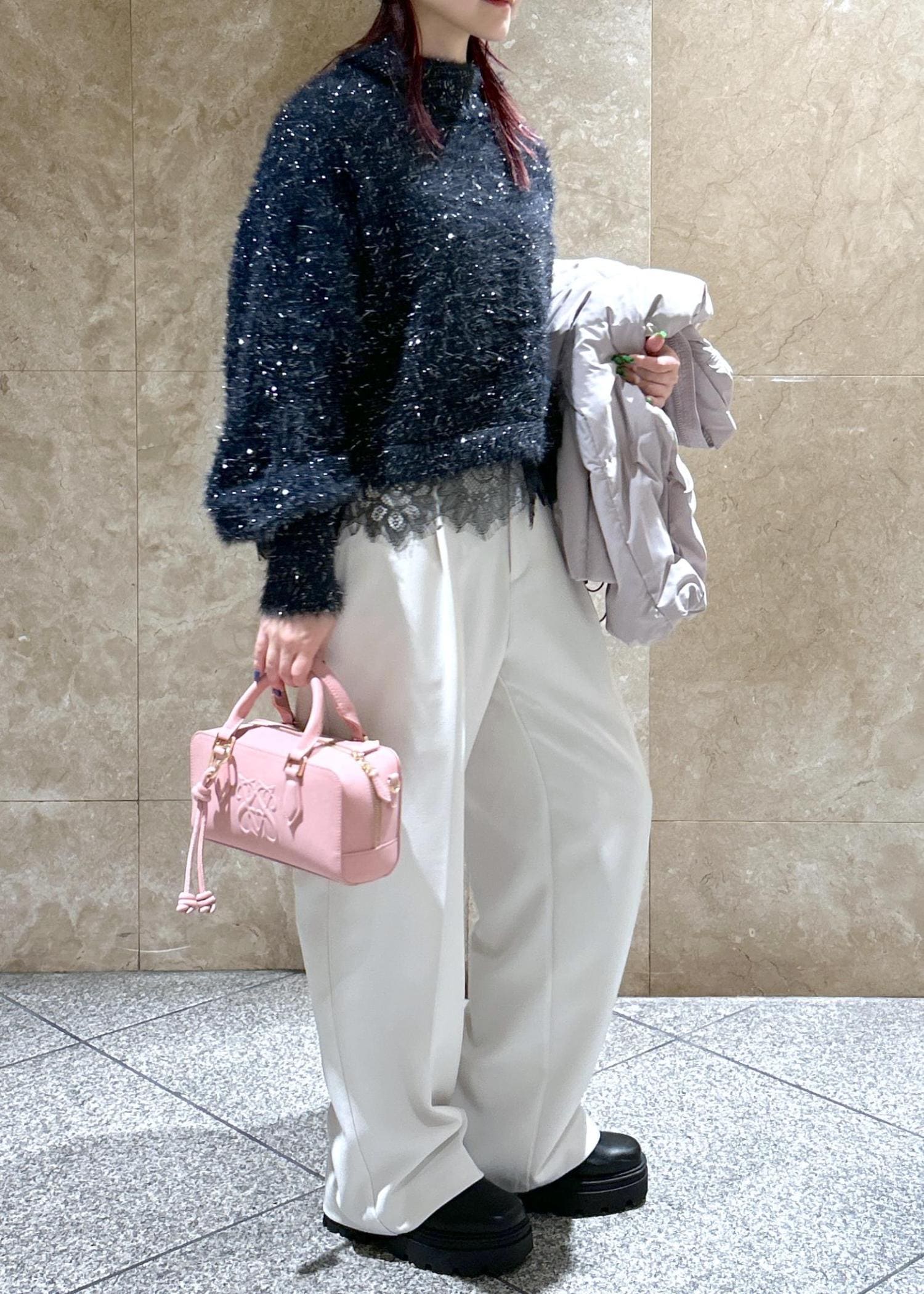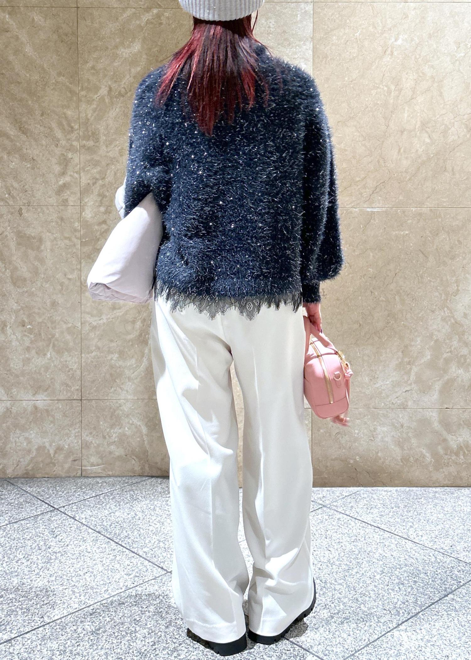 NEW!VISラメフェザー裾レースハイネックニットネイビー / F¥6,589レビューキラキラで華やかなハイネックニットです。