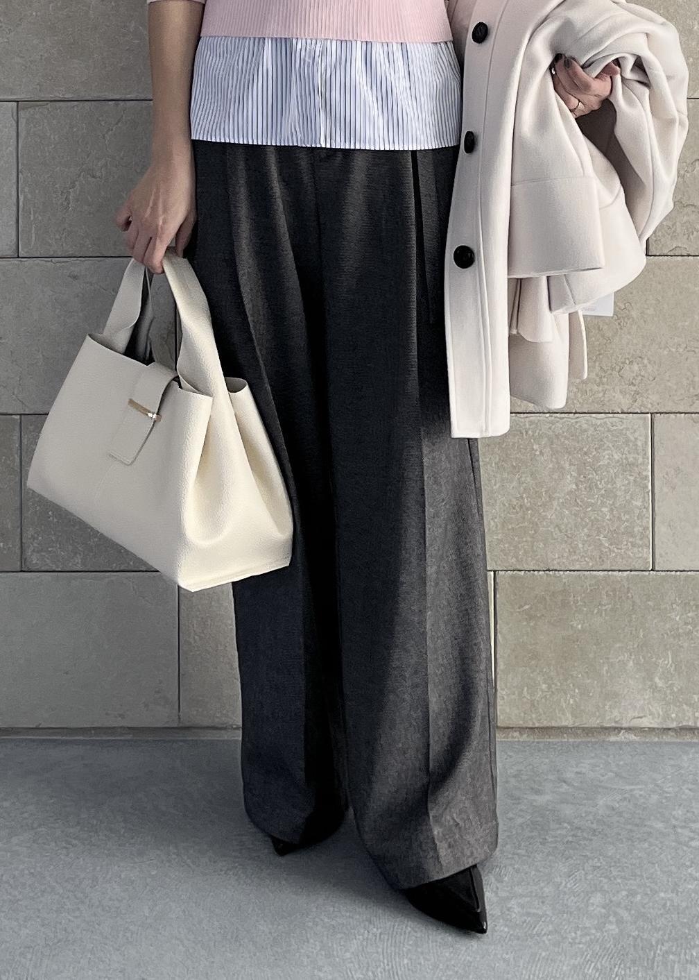 甘さを控えめにしてくれるグレーワイドとの合わせで、きれいめの中に抜け感もしっかり。