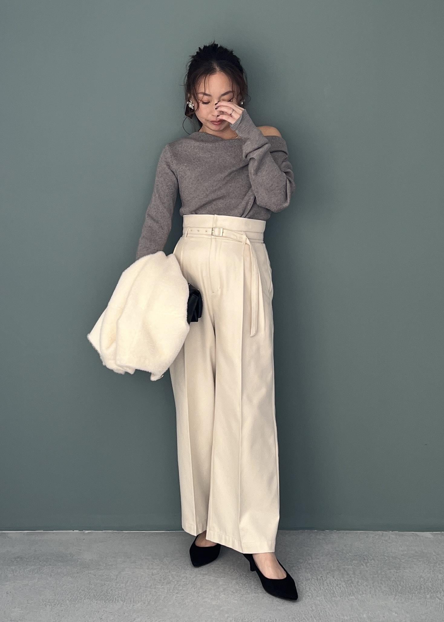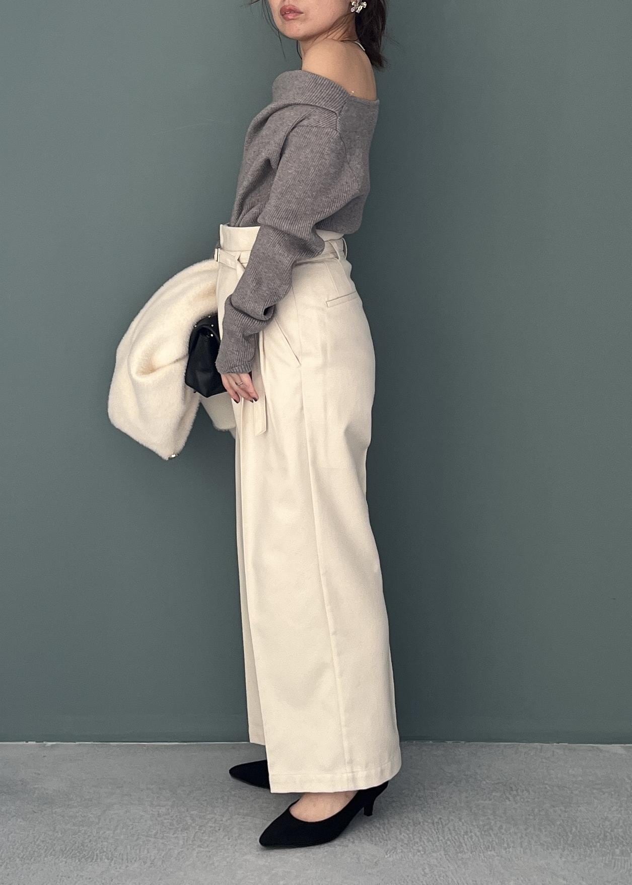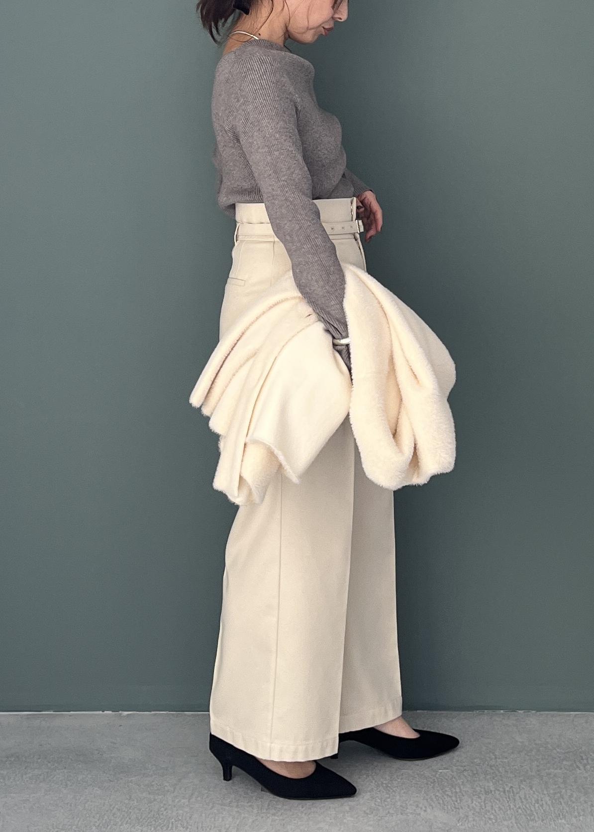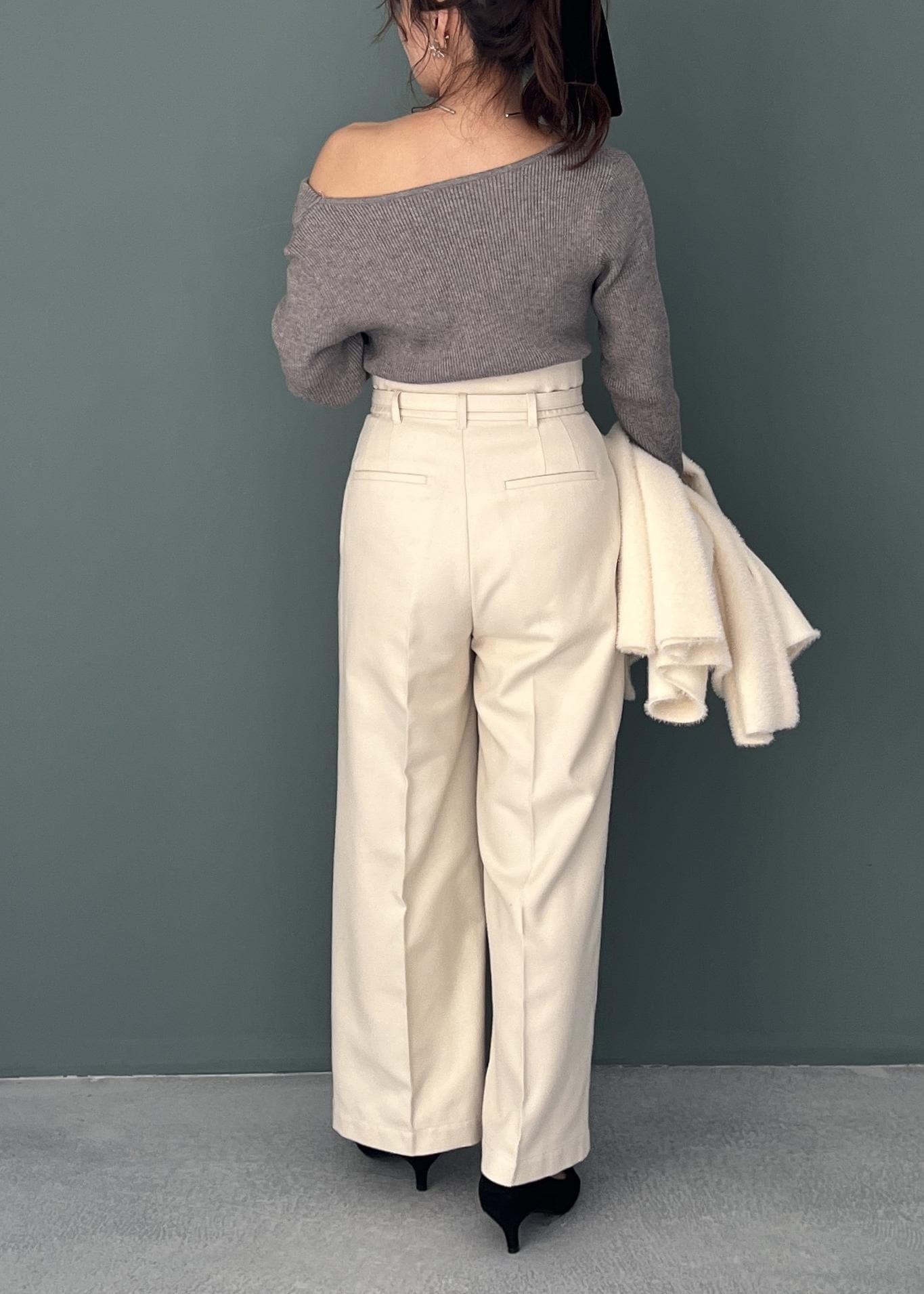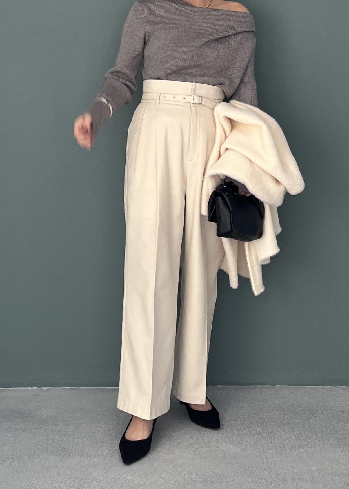 起毛ウールライク版ベルトディテールタックワイドパンツ
